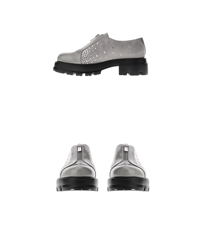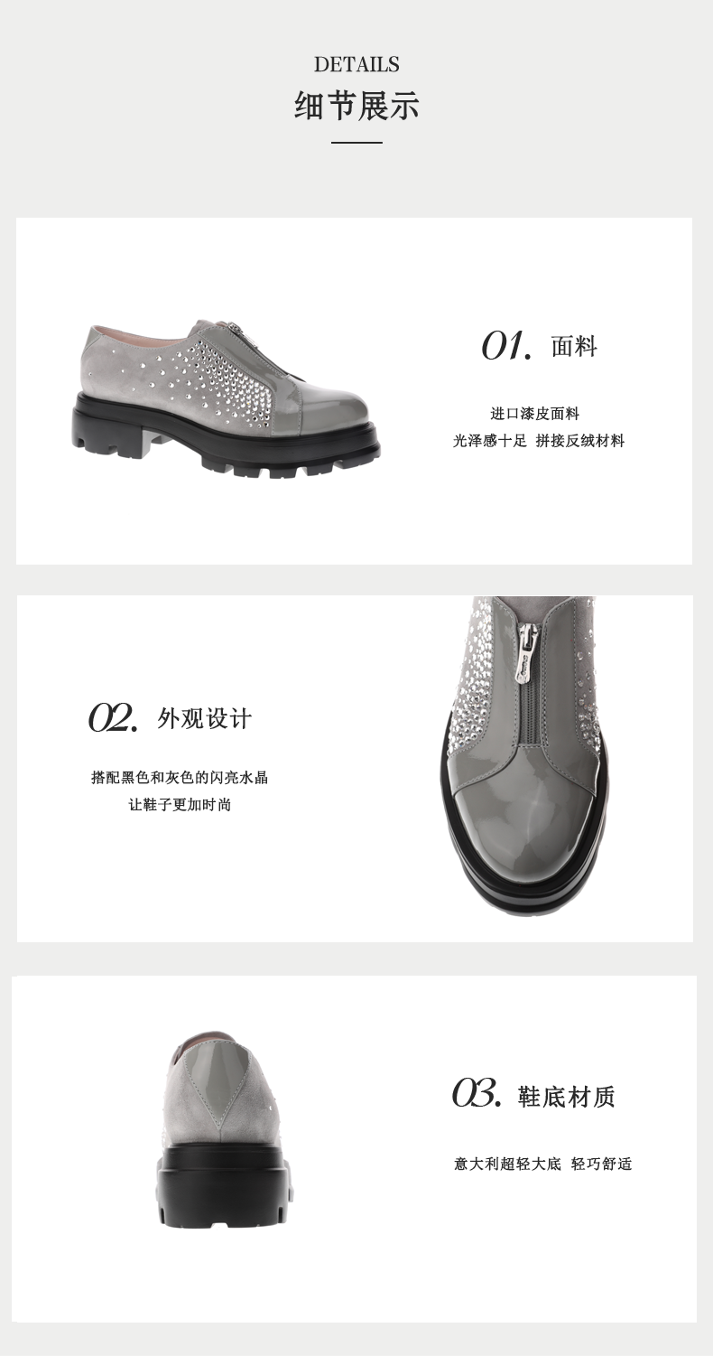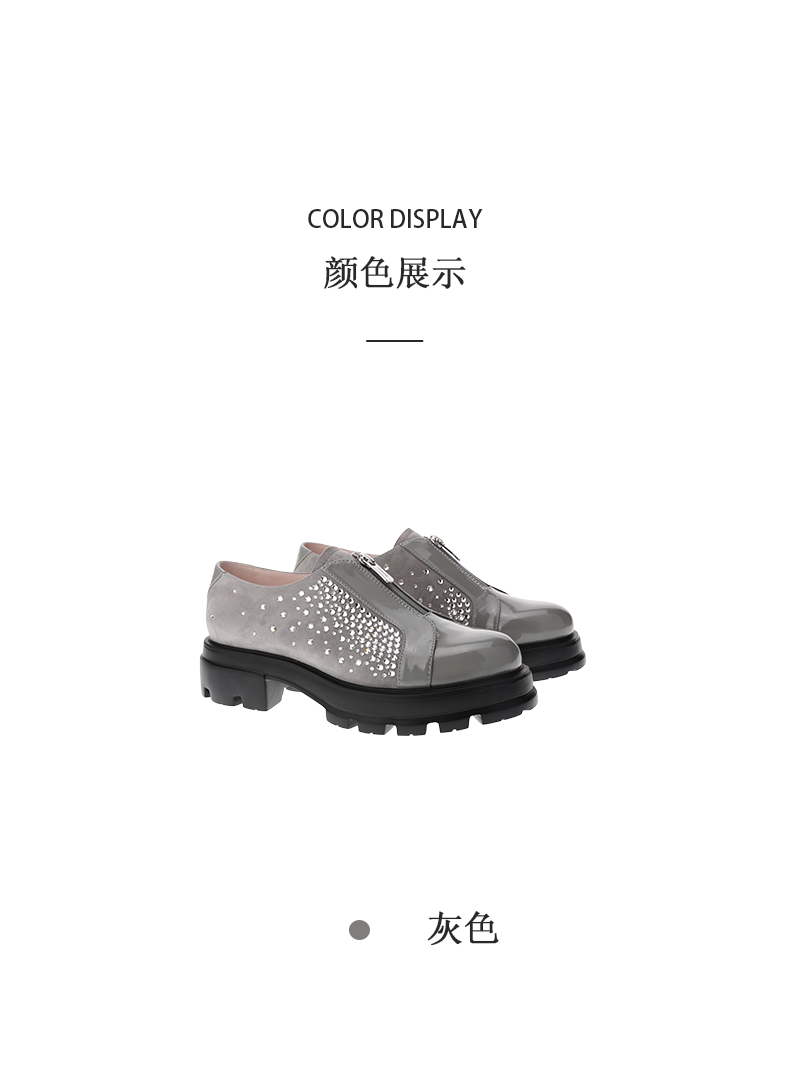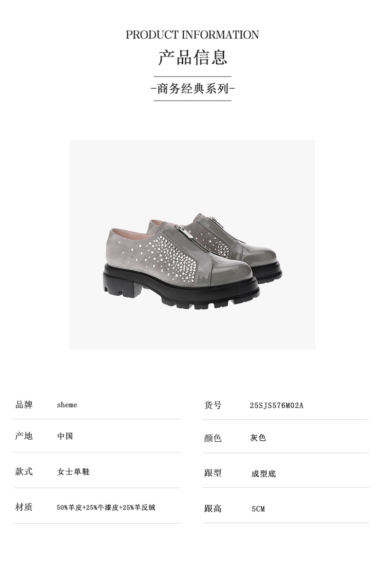 sheme漆皮反绒拼接水晶点缀时尚帅气女士深口鞋可定制