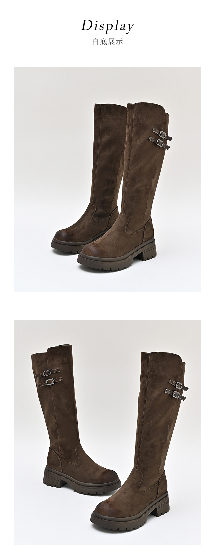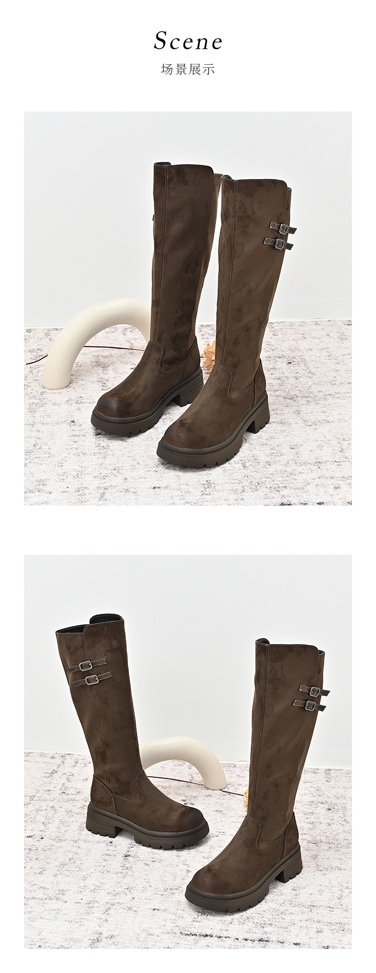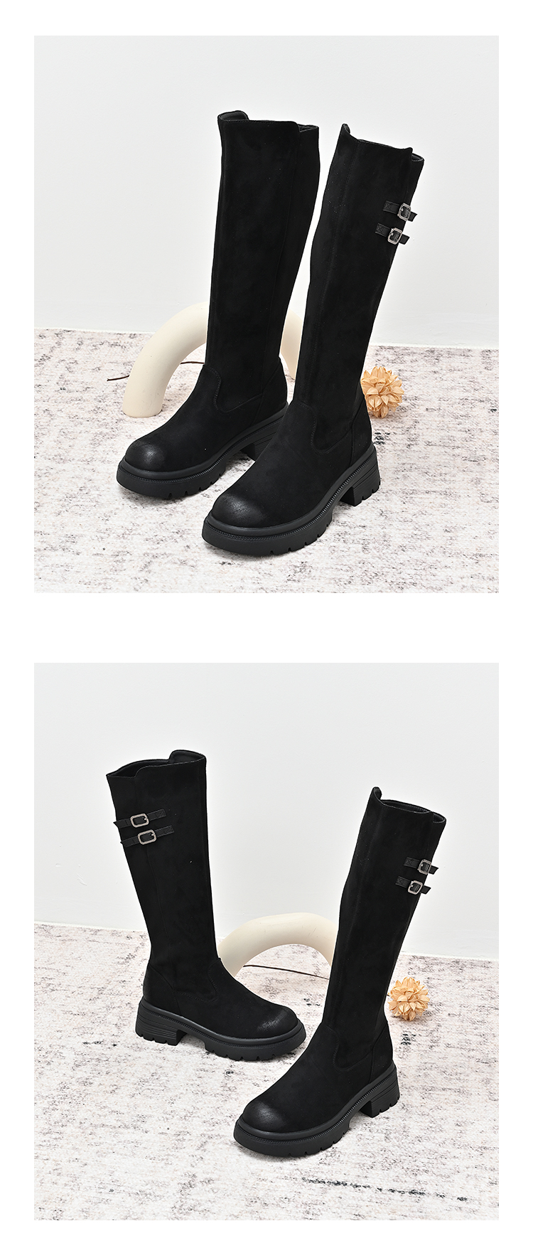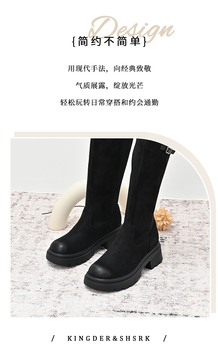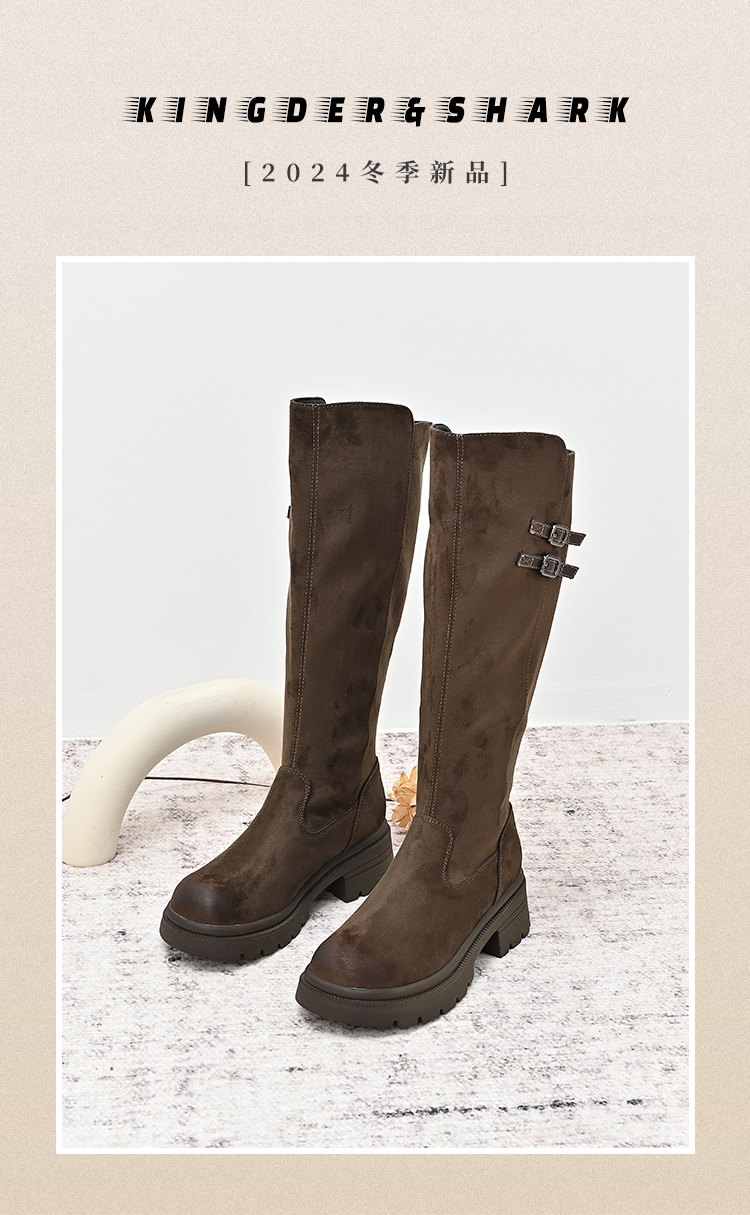 经典鲨2024年冬季款百搭圆头平底加绒气质显瘦时装长筒靴女KW310-D58061