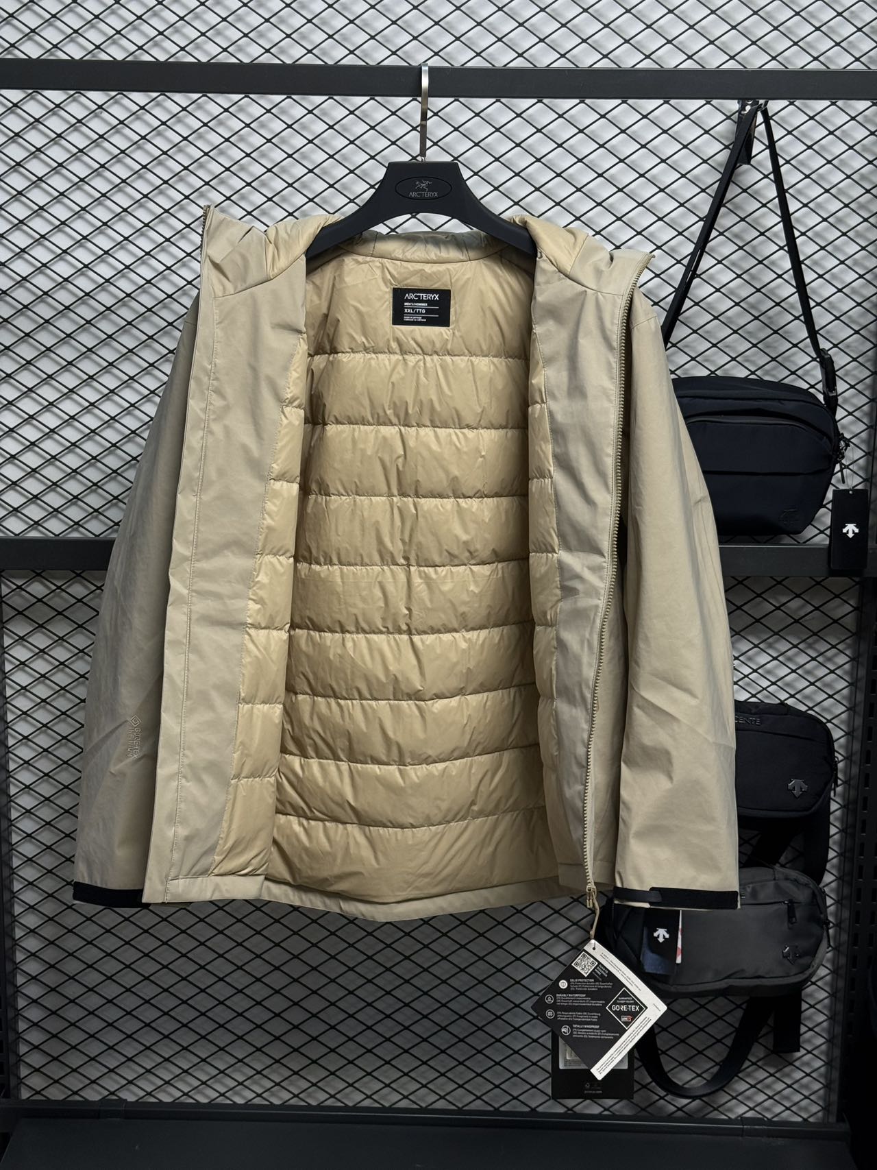 外套采用高性能面料,集防水、防风、防油污、耐磨抗撕裂于一身,无惧风雨侵袭。内里严选高品质90白鸭绒,洁净无异味,以120-140克的科学填充量,在极致轻量化,锁住澎湃暖意,实现出色的保暖效果。