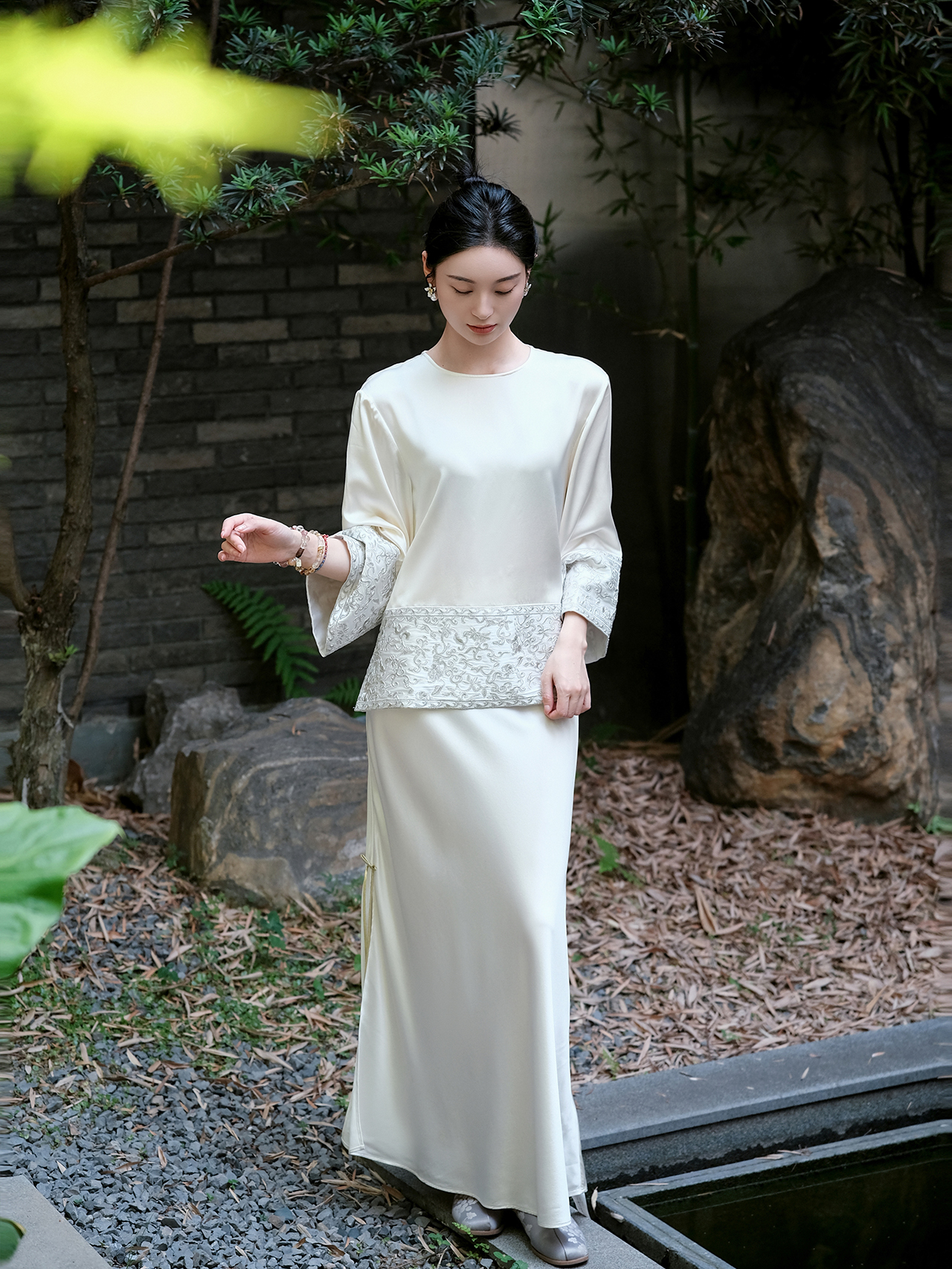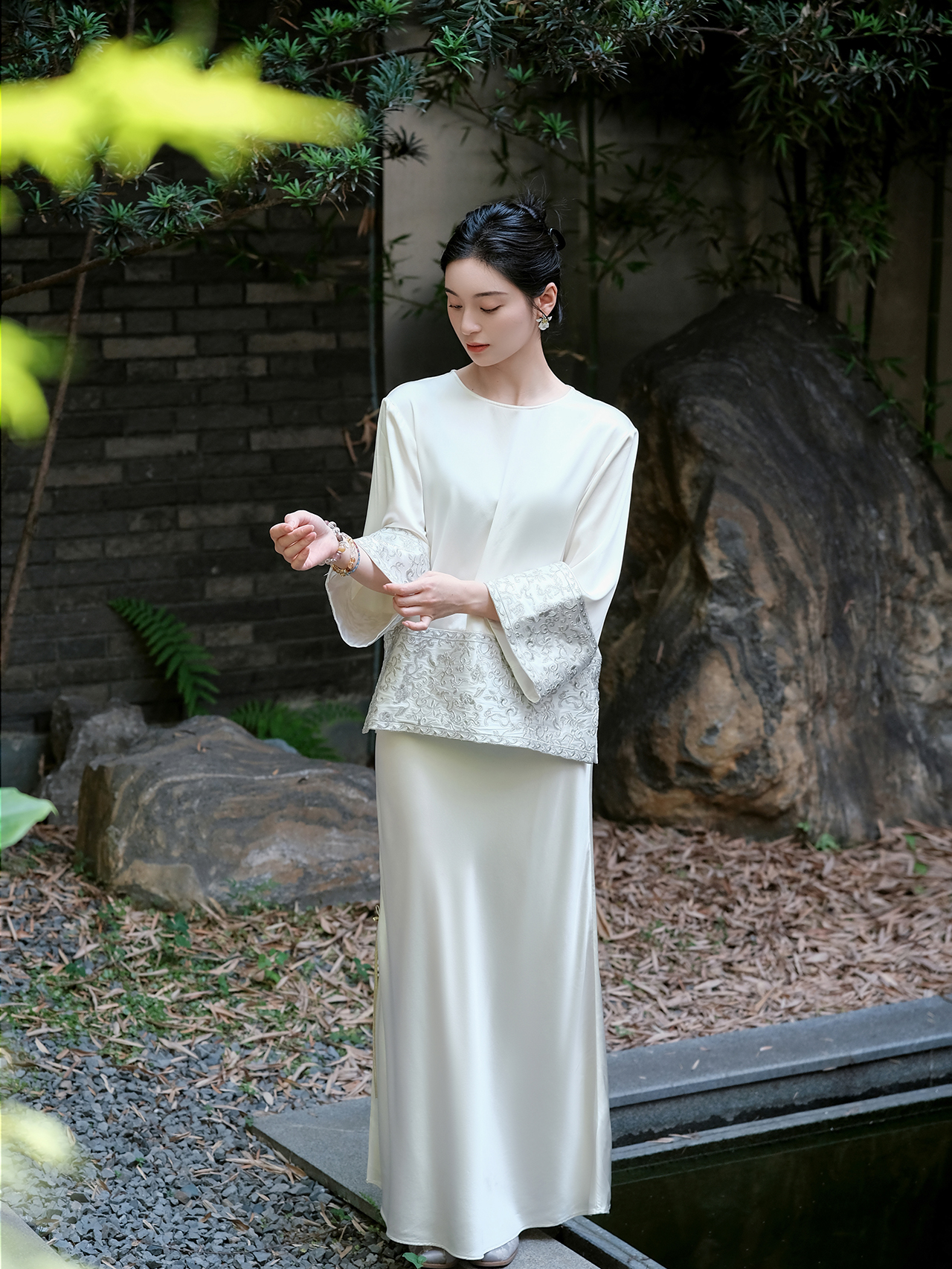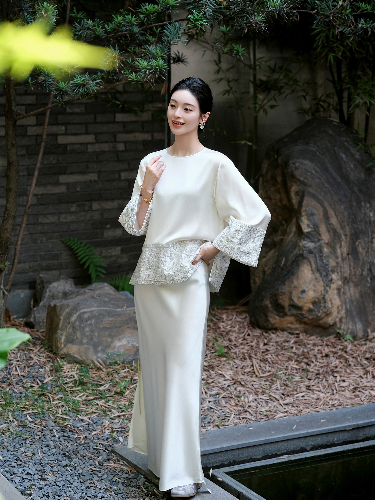 盛唐牡丹 |梅兰竹菊真丝冠乐皱斜襟旗袍裙
