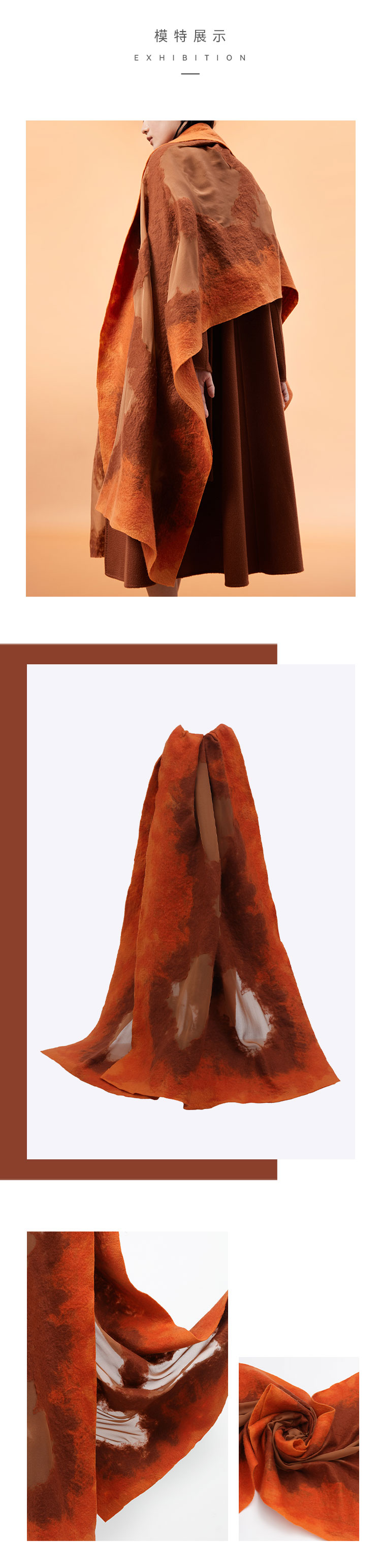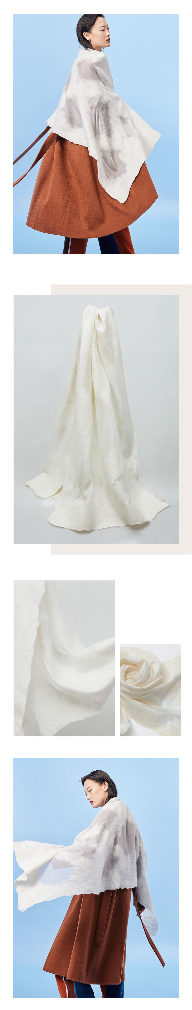 真丝羊绒相拼手工毛毡披肩 SJF93P336N