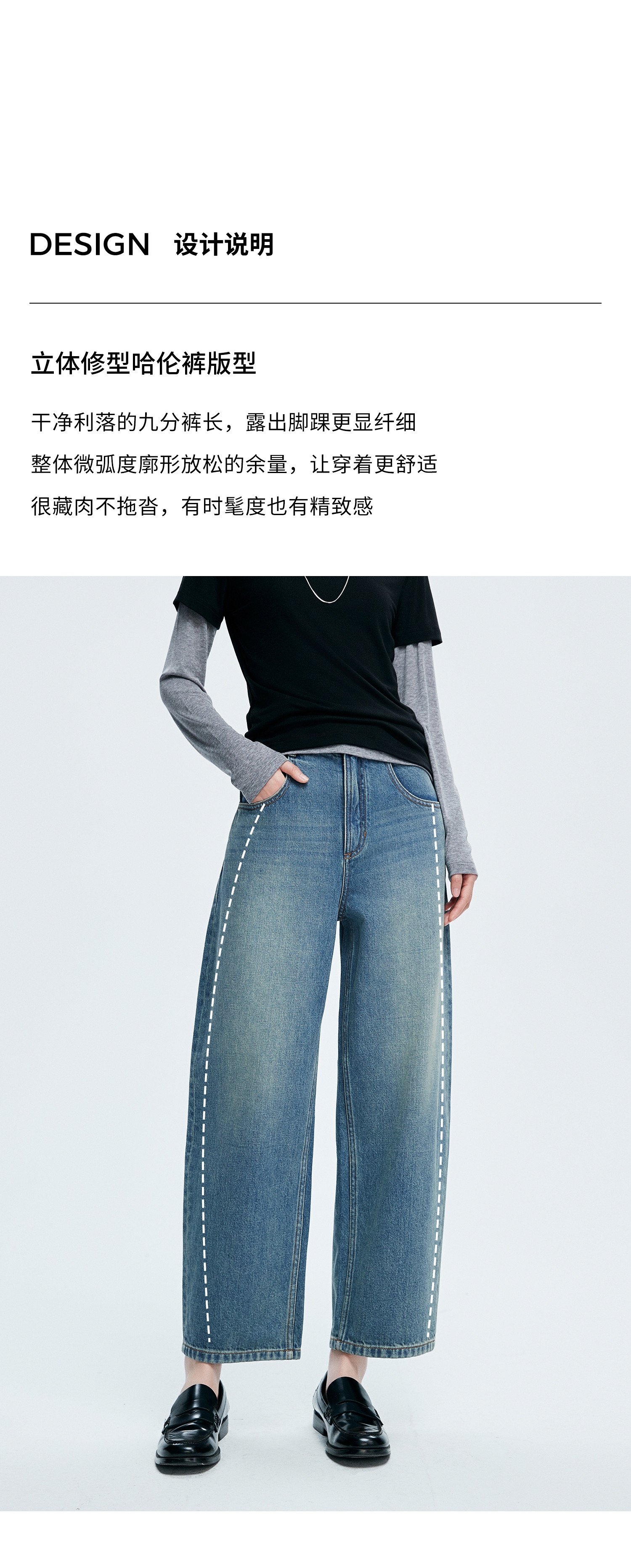 棉仓362619003-初棉香蕉哈伦九分哈伦牛仔裤全棉牛仔
