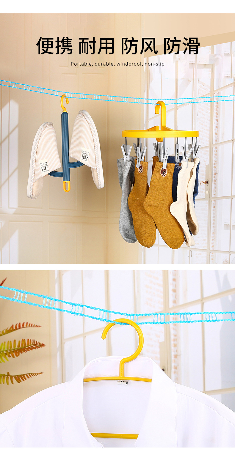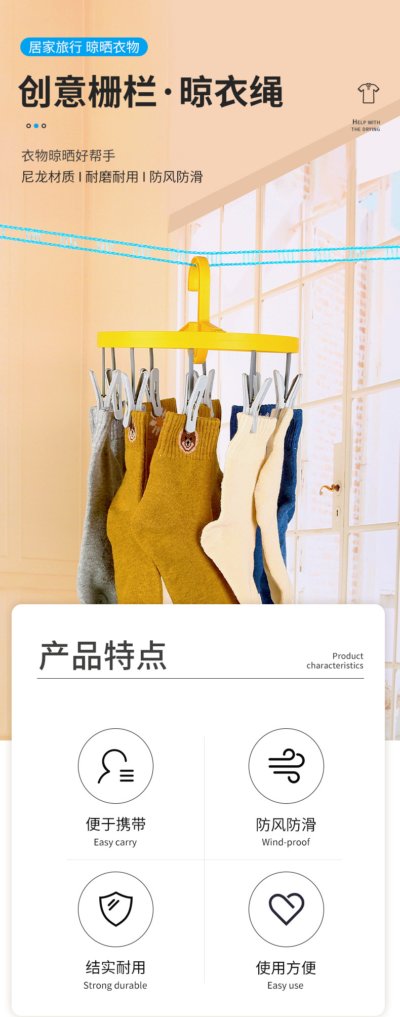 户外晾衣绳 防风防滑栅栏式晒衣绳晒被子衣服学生宿舍便携晾晒工具