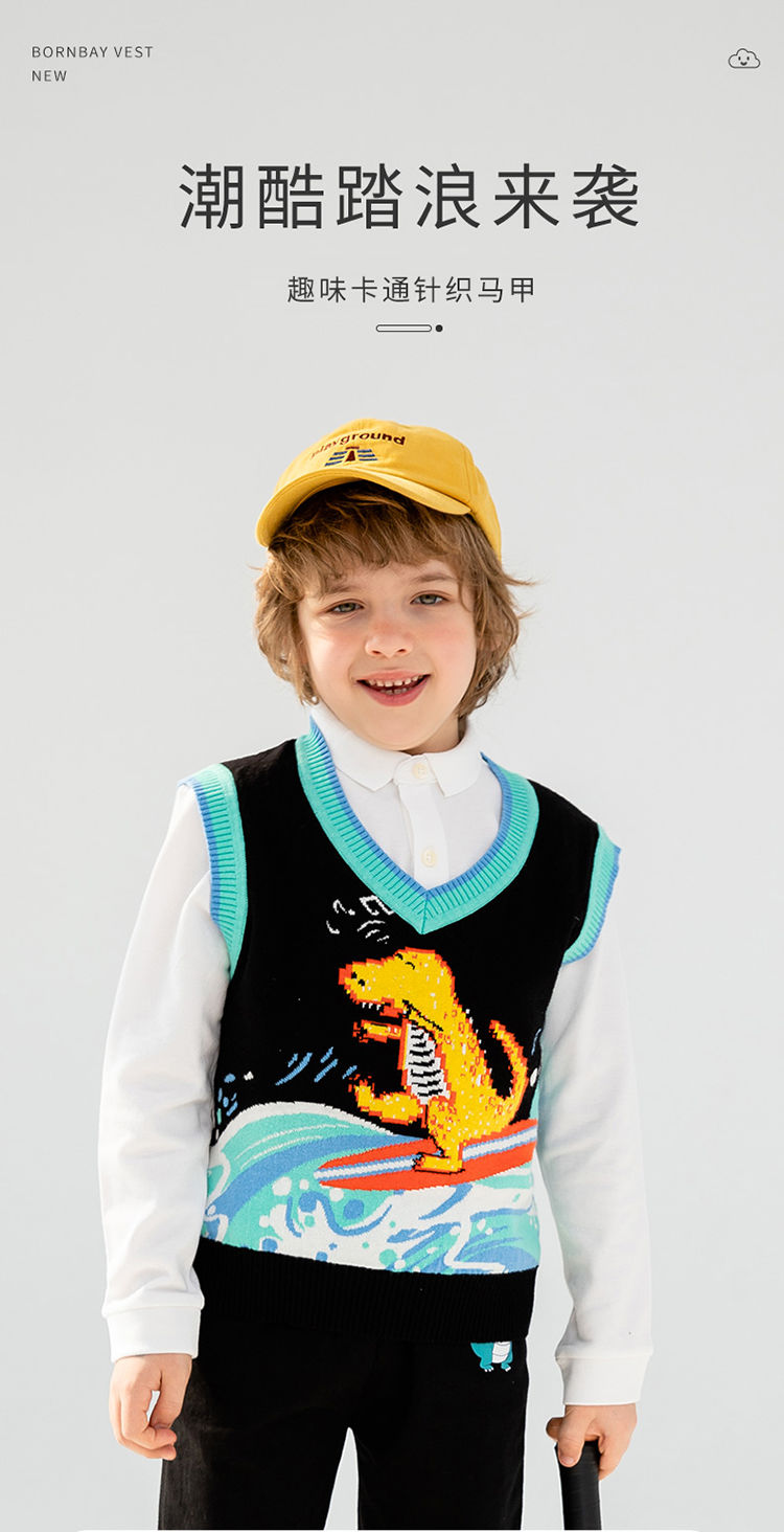 贝贝怡童装爆款男宝针织马甲新款男童背心套头衫宝宝马甲洋气