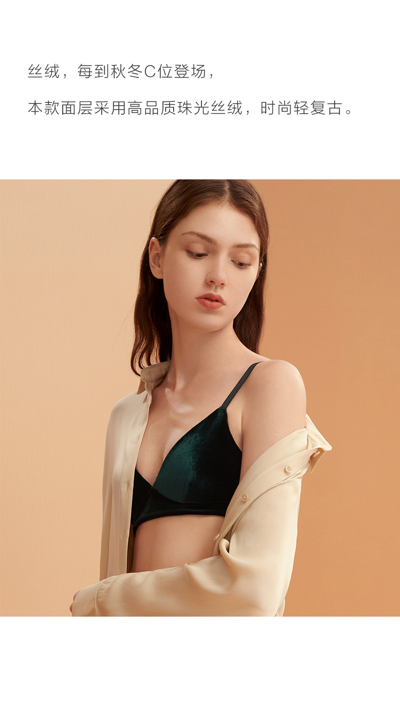 金三塔真丝文胸女丝绒性感法式三角杯无钢圈内衣颜值舒适兼具 NZFBD306