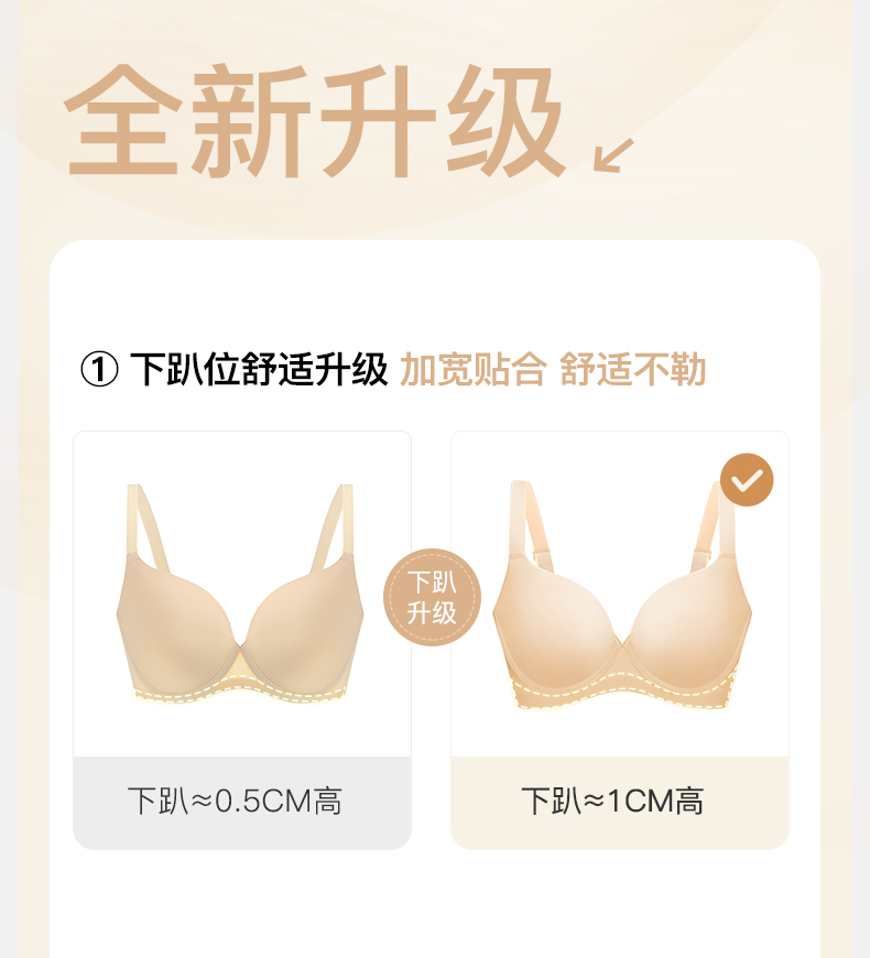 梦芭蒂无痕光面内衣女薄软钢圈少女上托聚拢防下垂文胸罩轻盈无痕