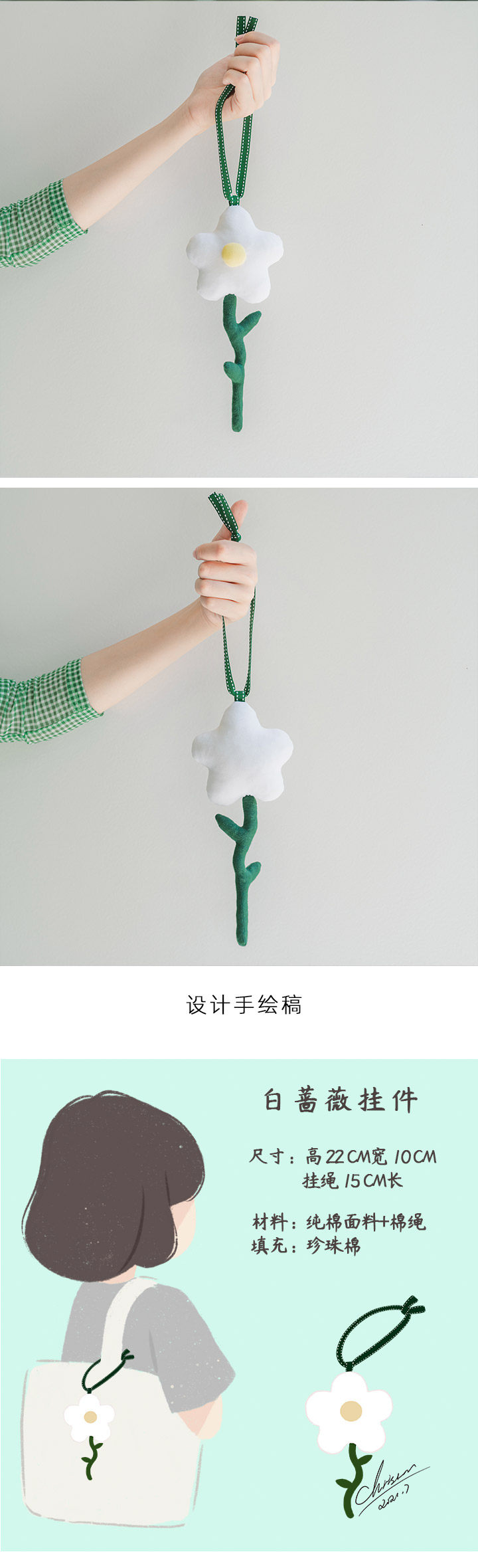 芽小七原创白蔷薇花手工缝制书包背包挂件挂饰可爱公仔钥匙扣玩偶