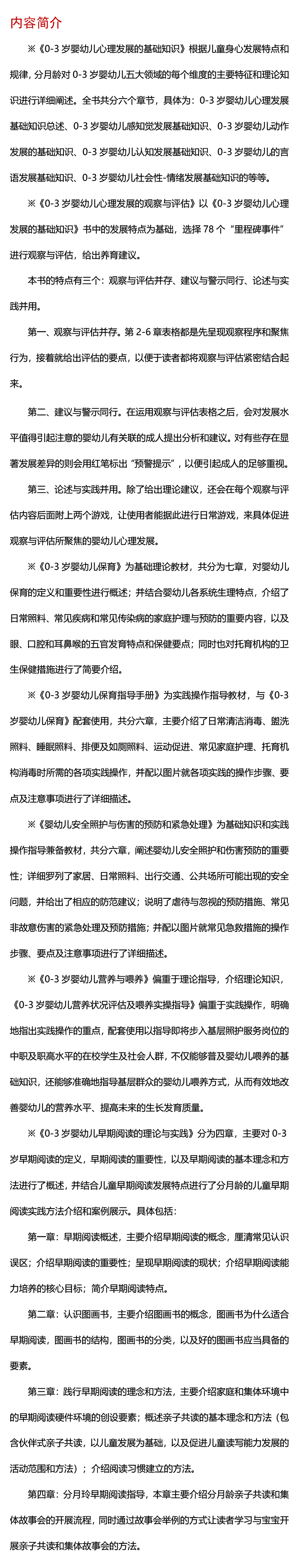 0-3岁婴幼儿早期发展专业人才培养9册 师范院校婴幼儿照护类