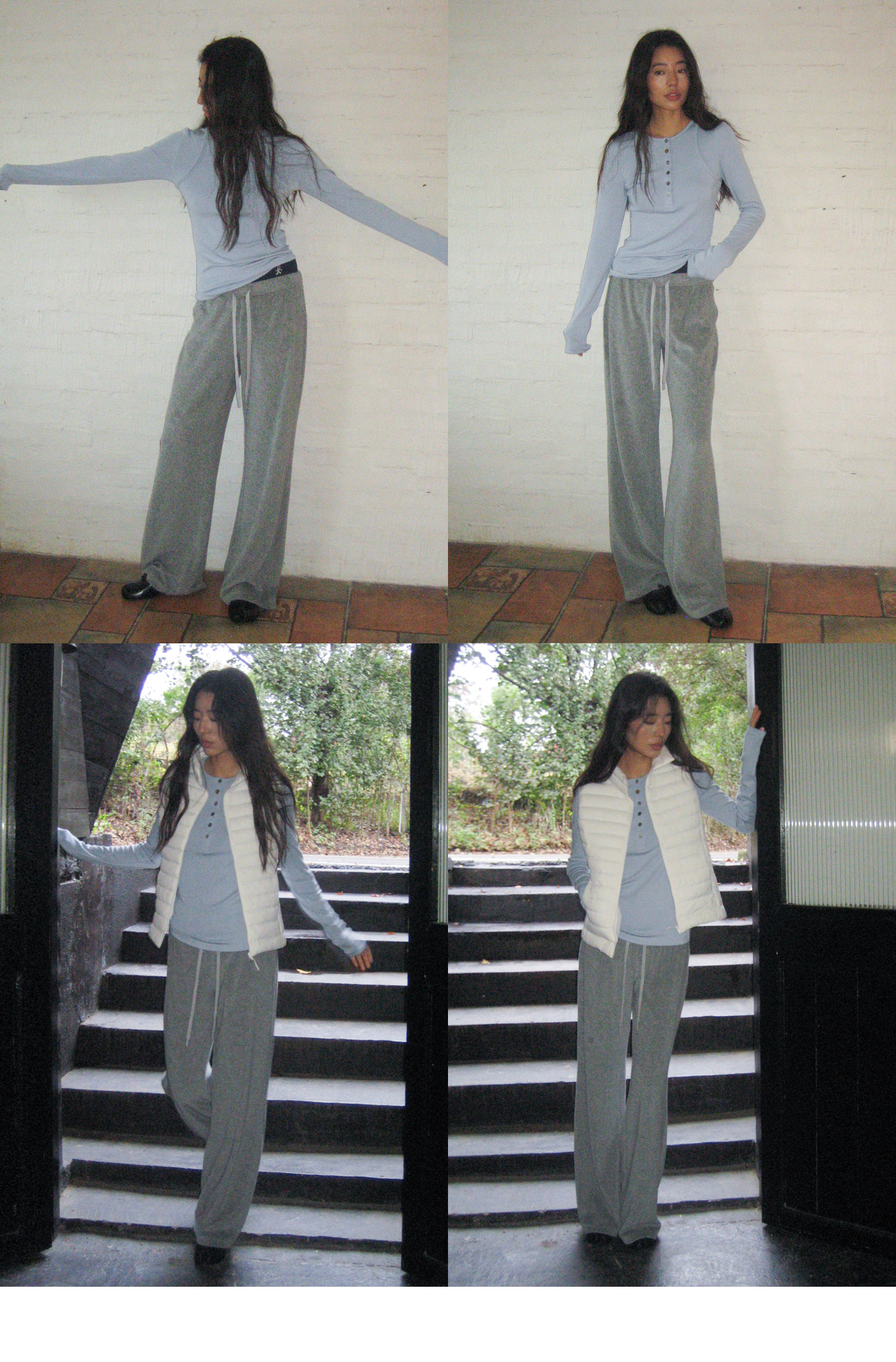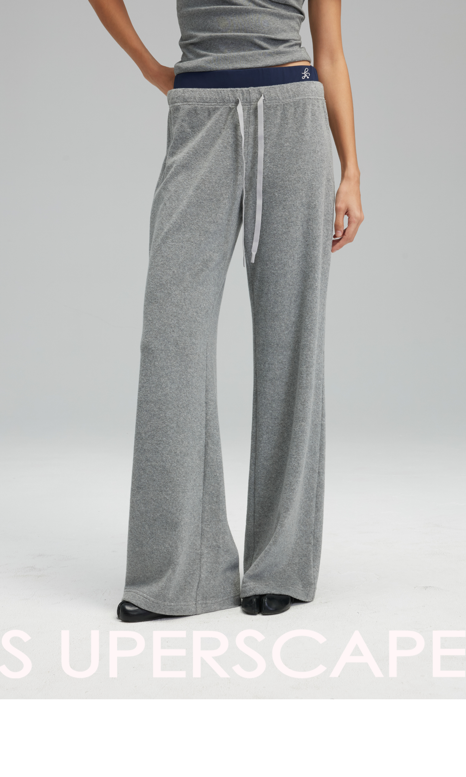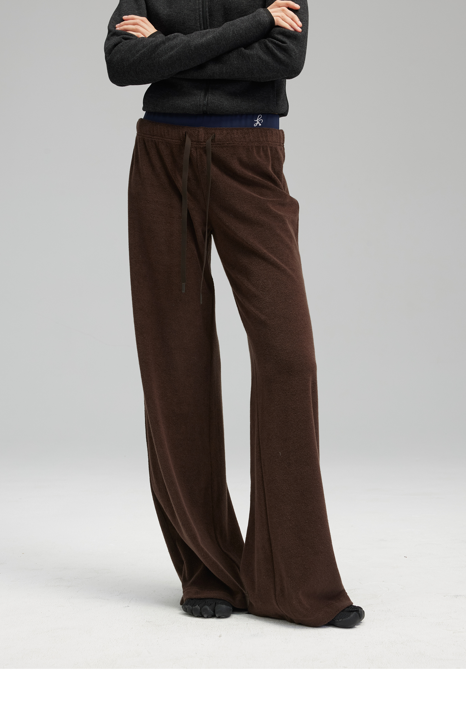 素舶 垂感暖绒毛巾裤 双腰头松弛感抽绳直筒卫裤休闲糯米裤