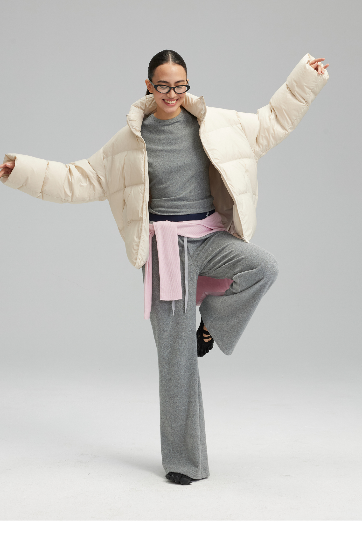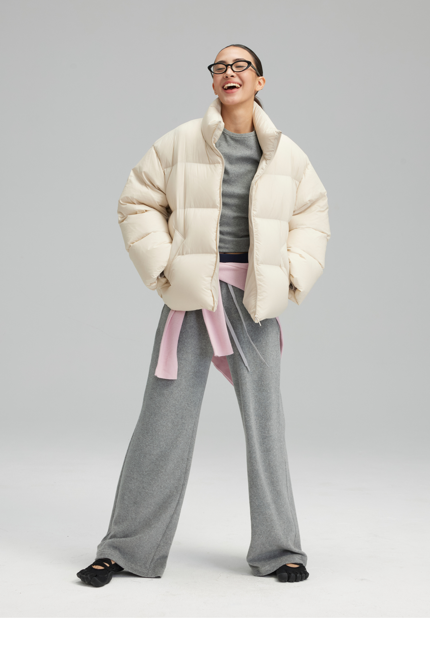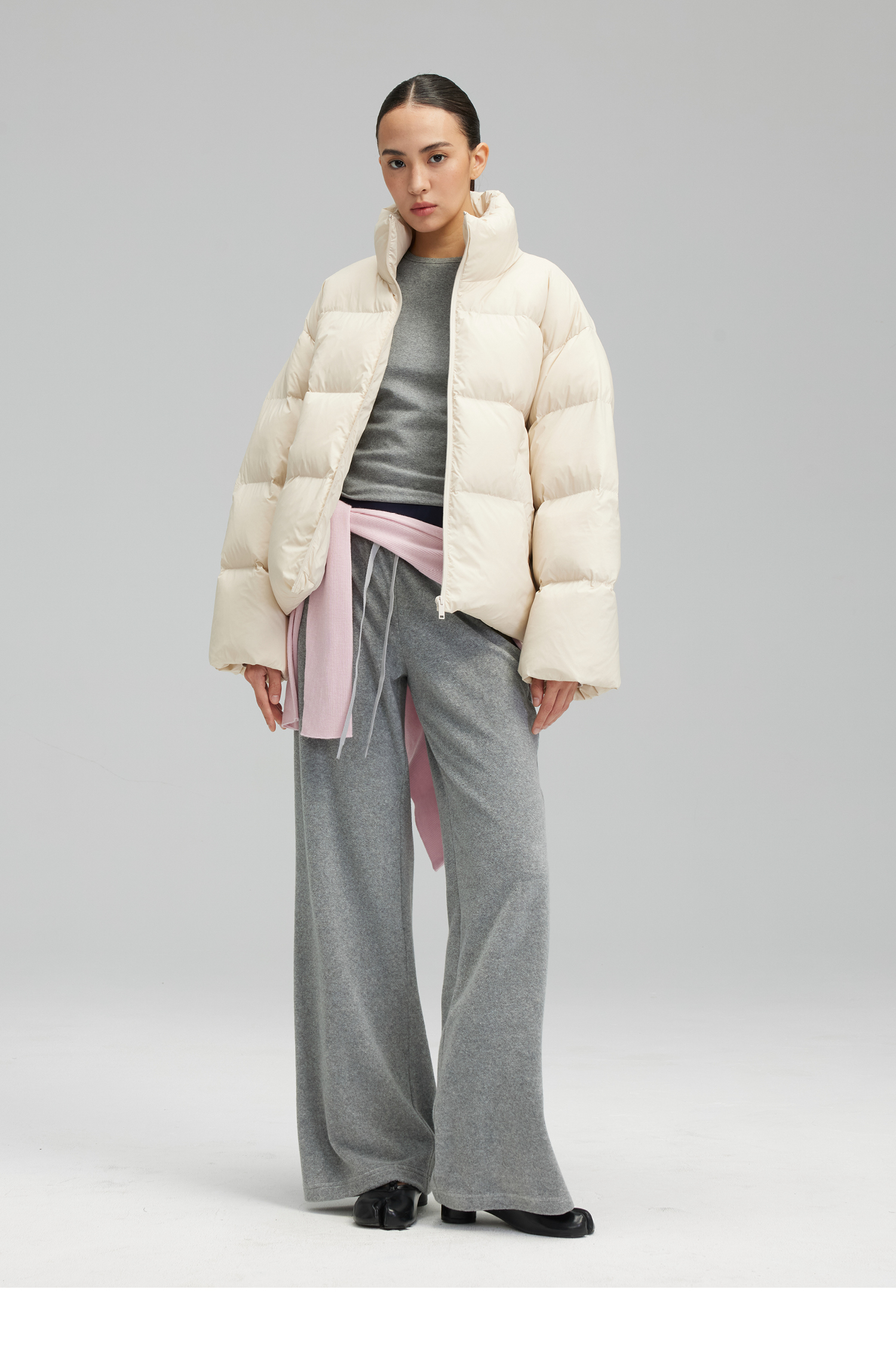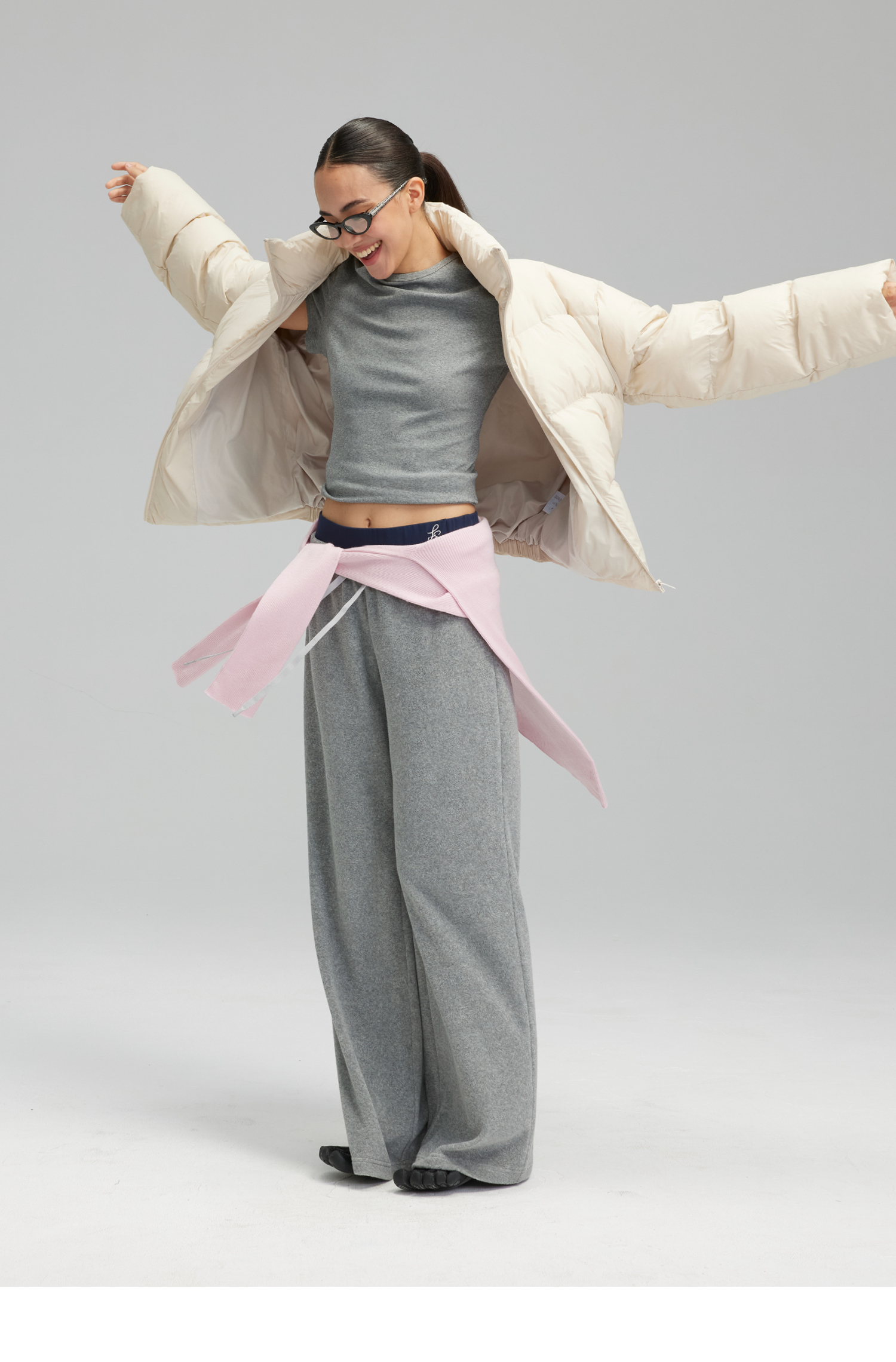 素舶 垂感暖绒毛巾裤 双腰头松弛感抽绳直筒卫裤休闲糯米裤