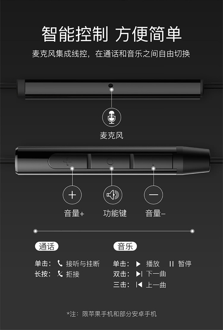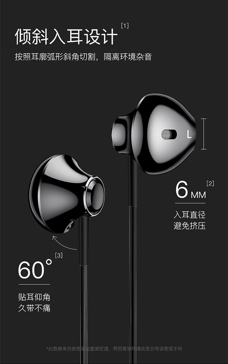 倍思 入耳式线控耳机 有线K歌吃鸡3.5mm游戏