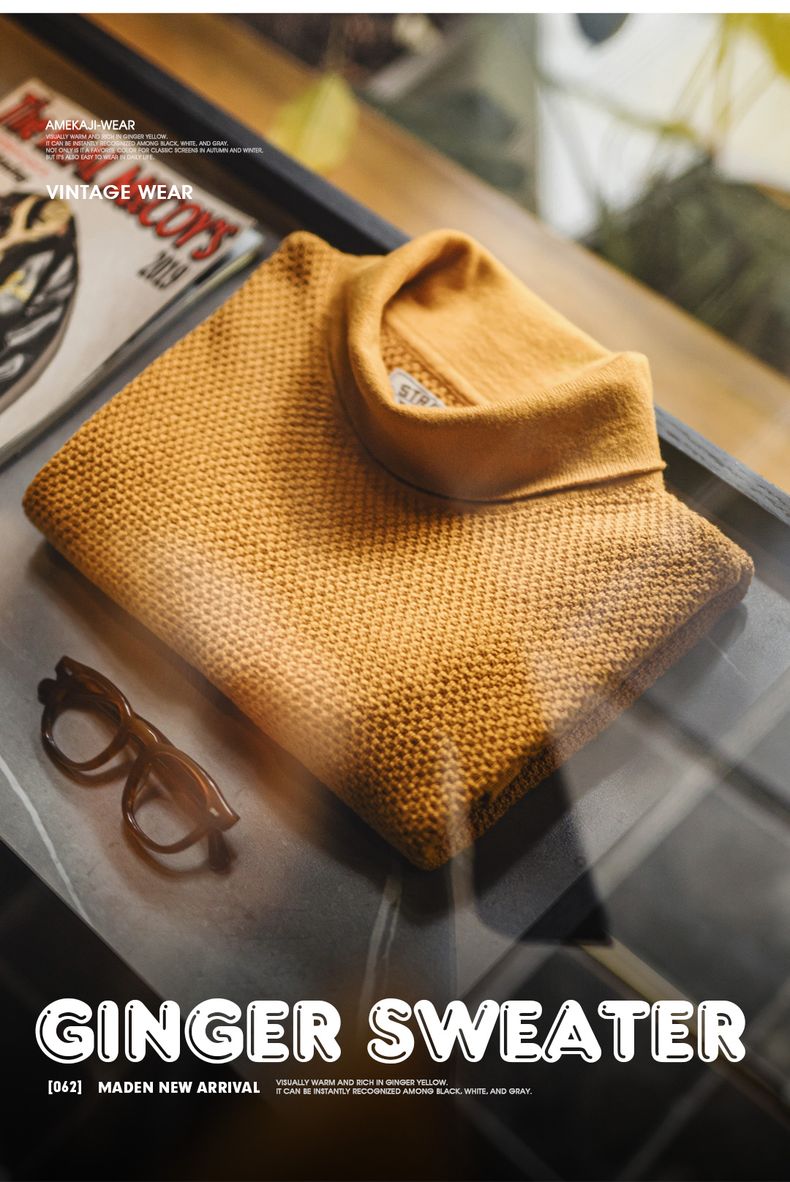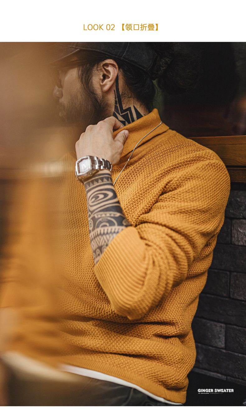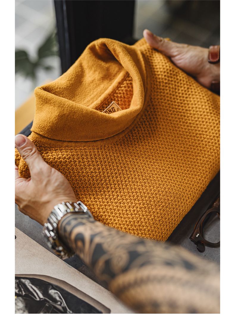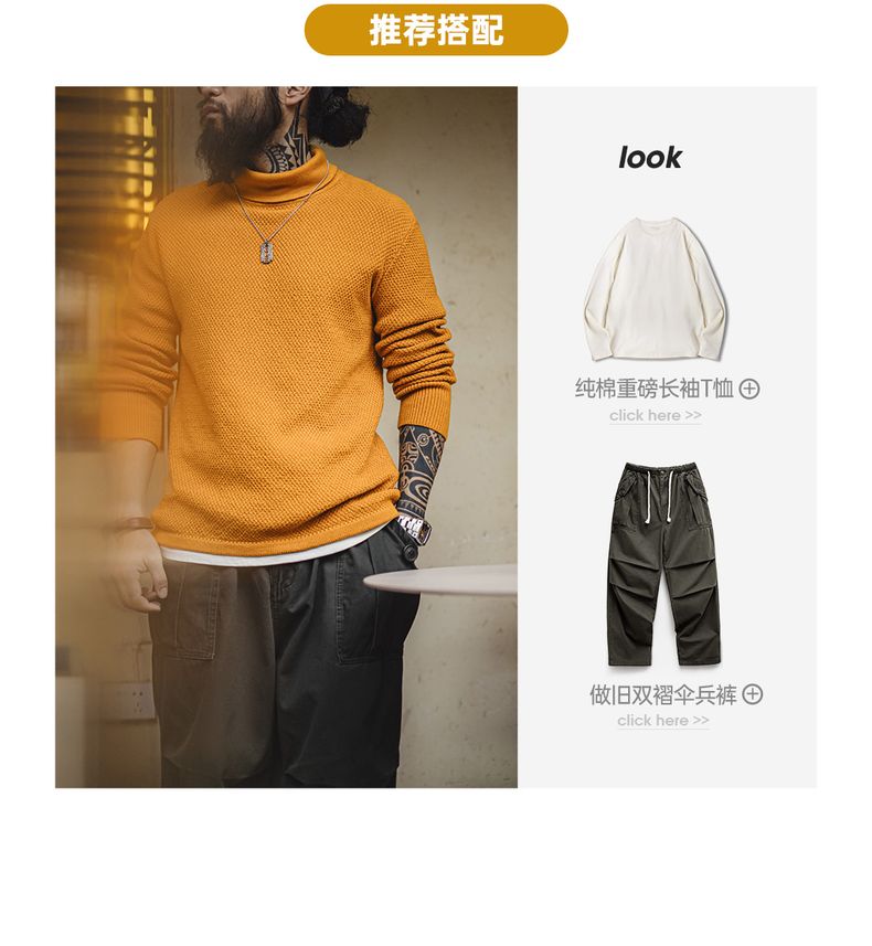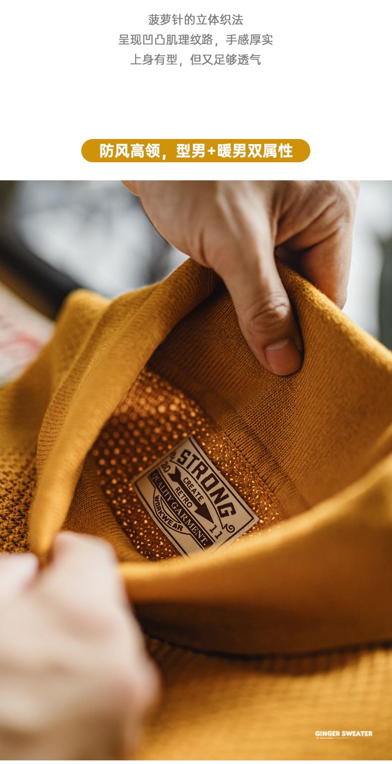 工装优选美式复古半高领菠萝纹毛衣黄色打底套头内搭针织衫男秋冬