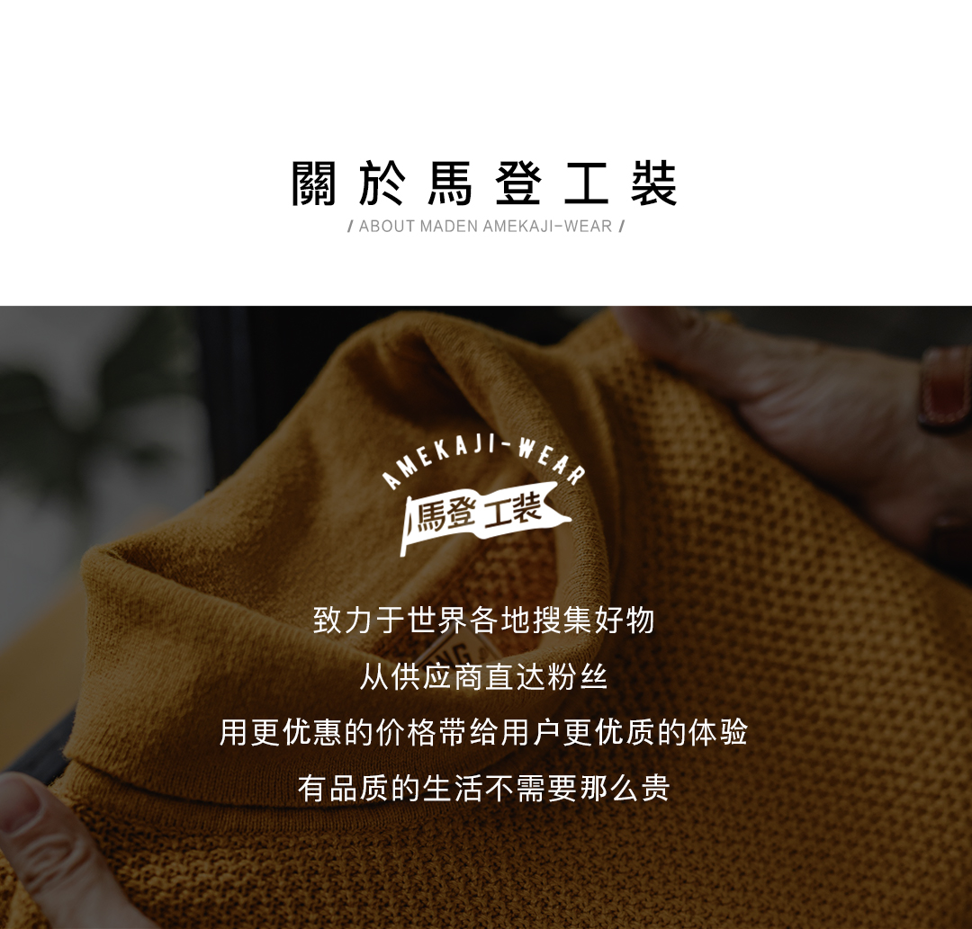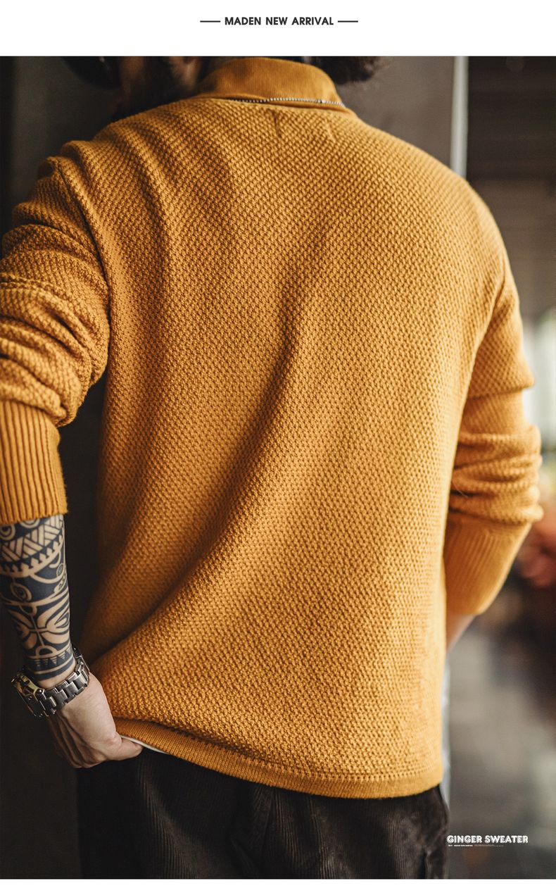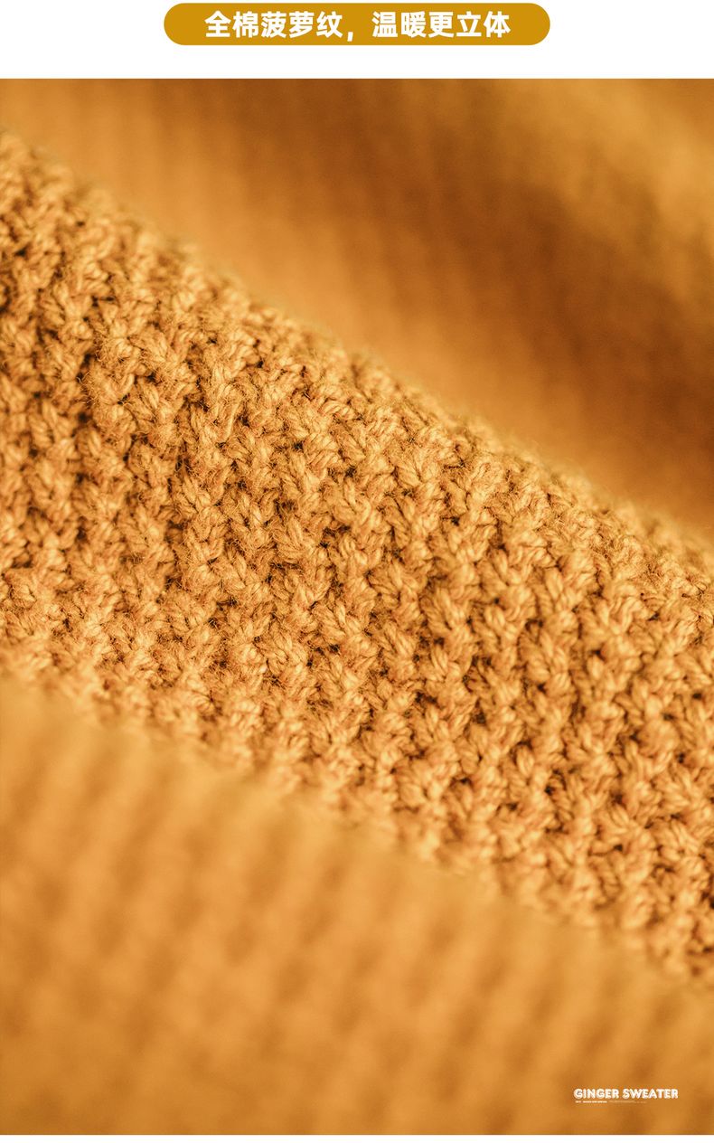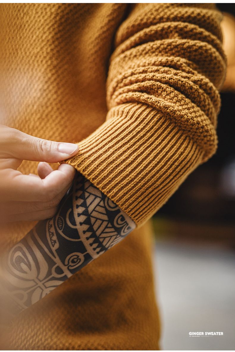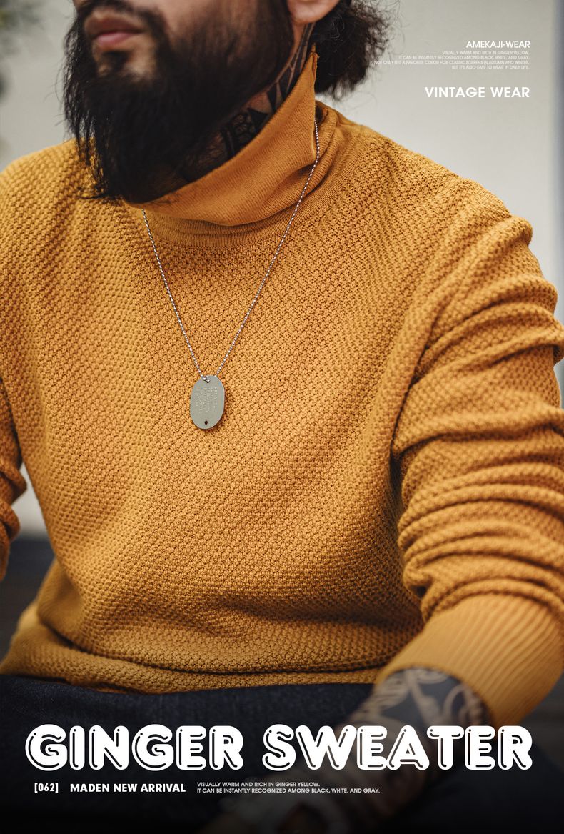 工装优选美式复古半高领菠萝纹毛衣黄色打底套头内搭针织衫男秋冬