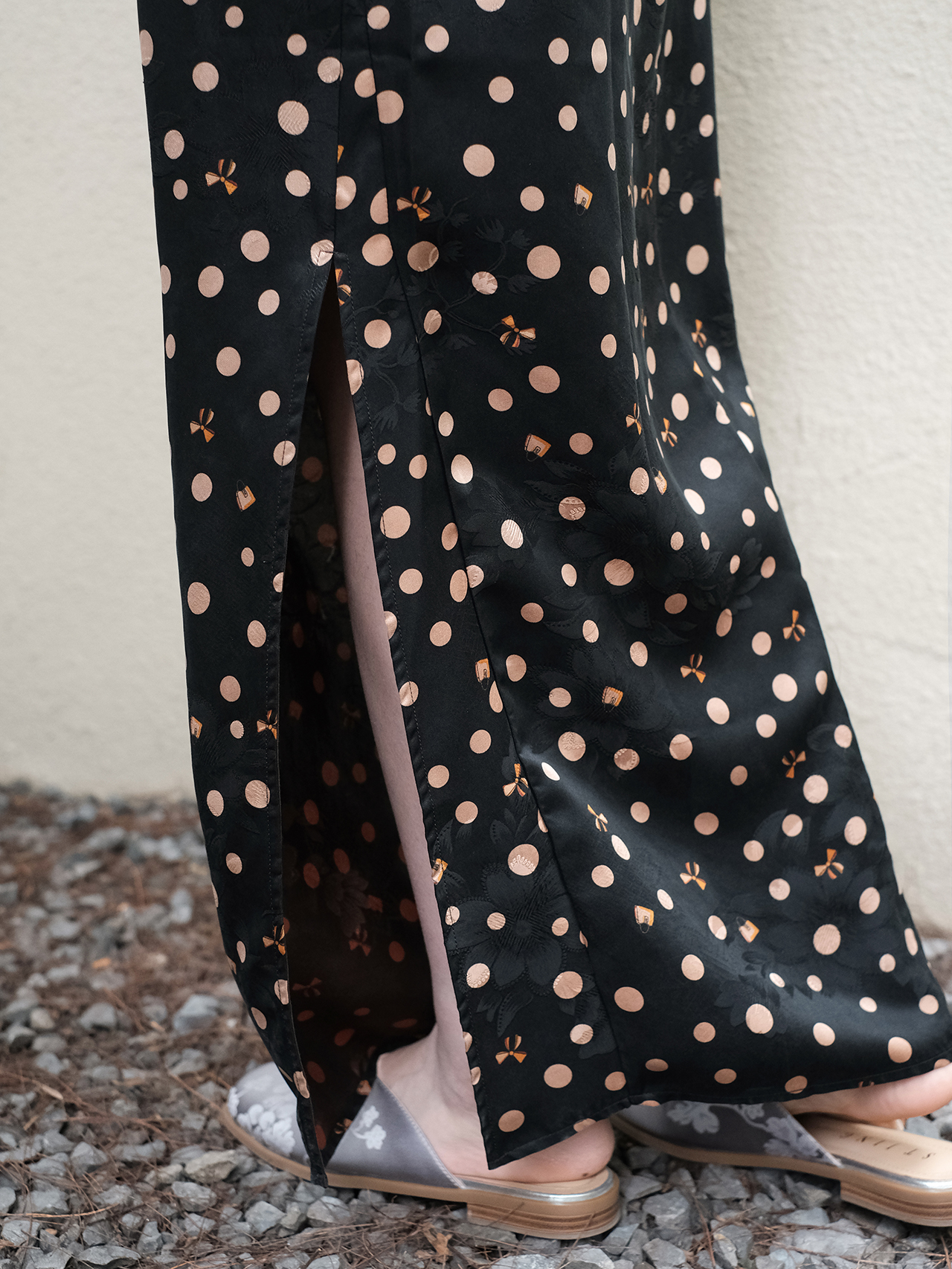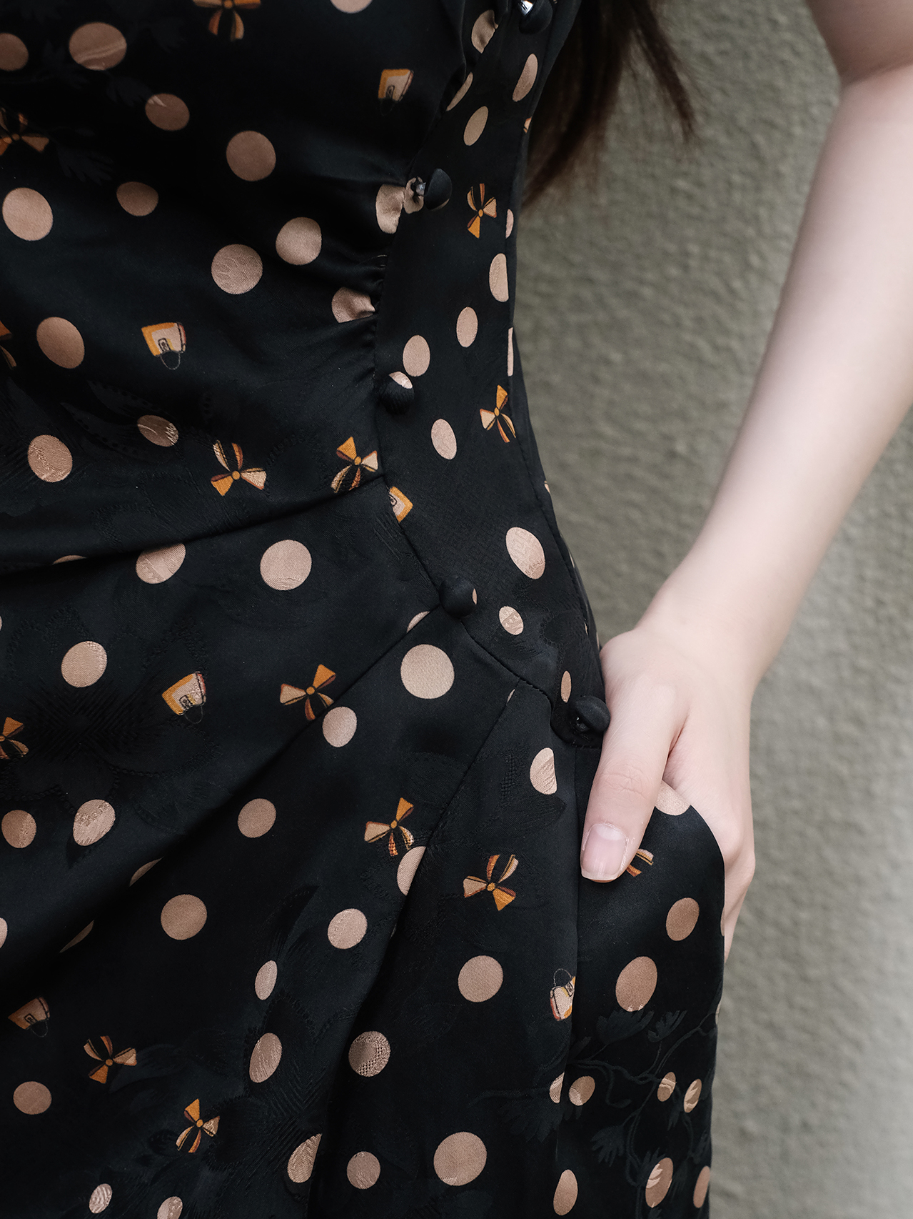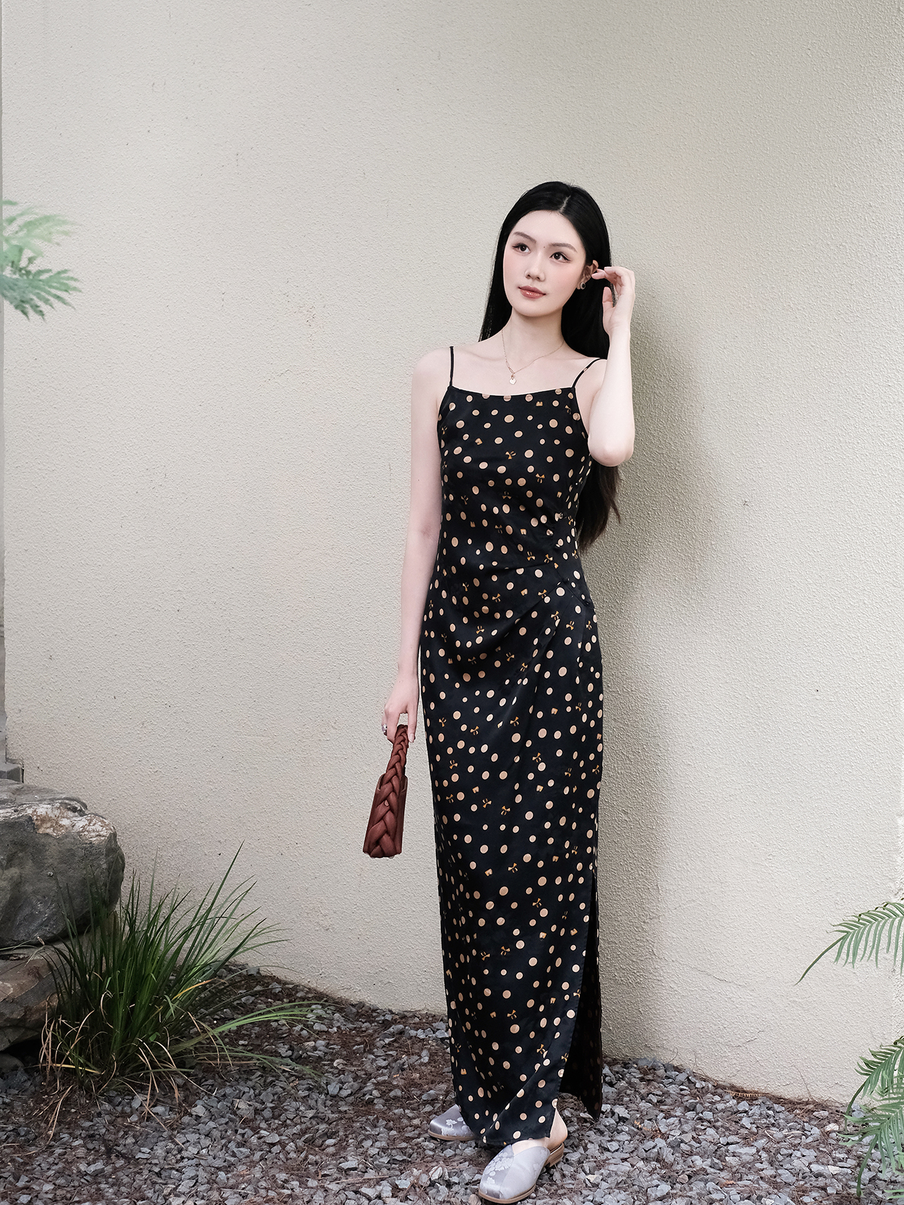 盛唐婧| 香云纱波点蝴蝶结吊带裙