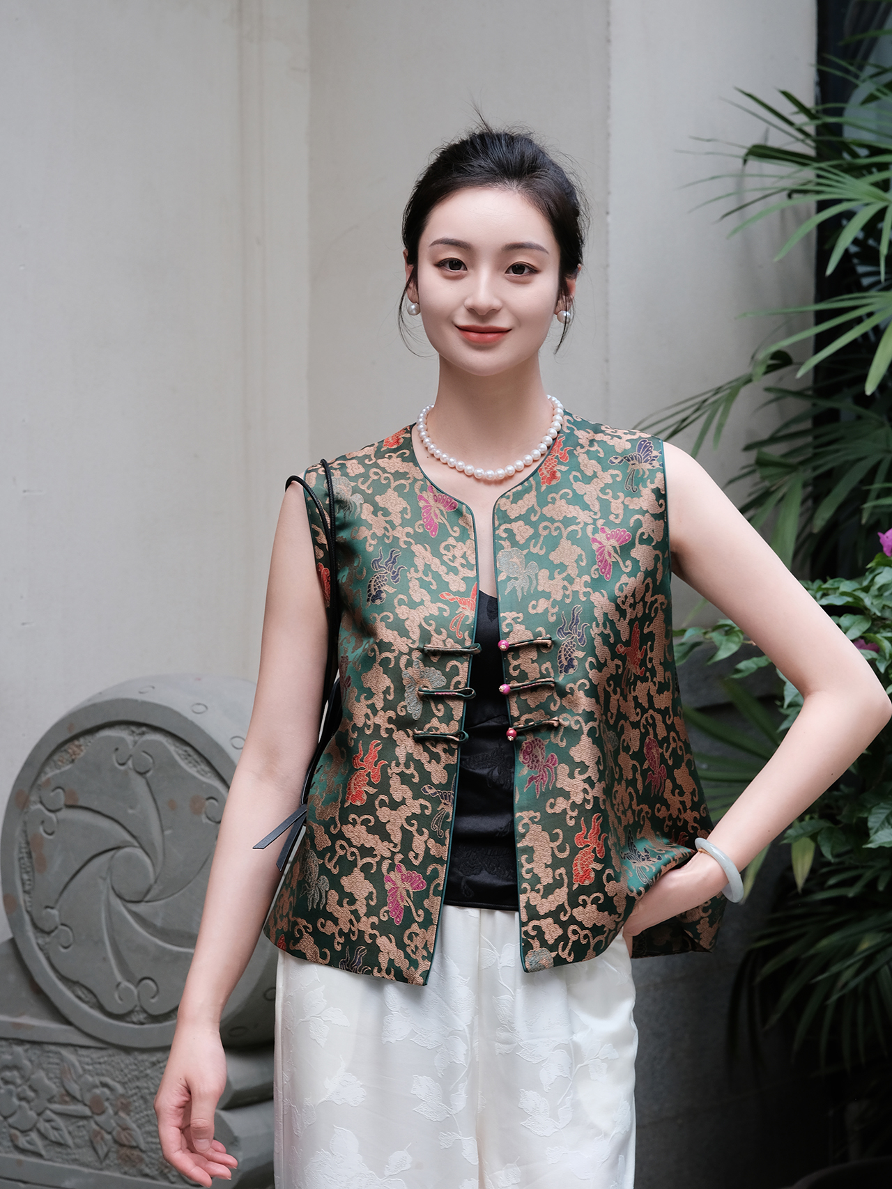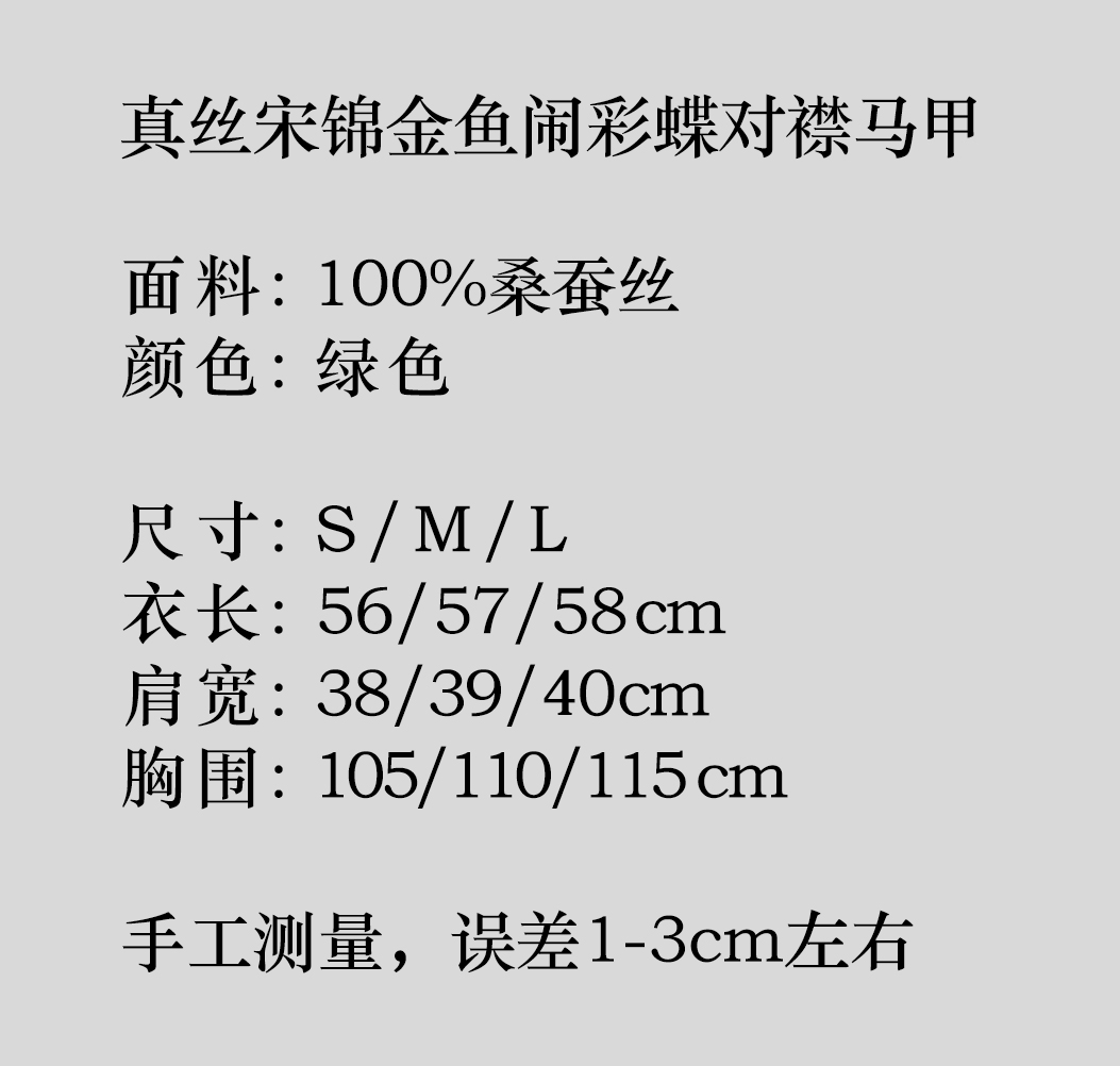 盛唐婧 |真丝宋锦金鱼闹彩蝶对襟马甲