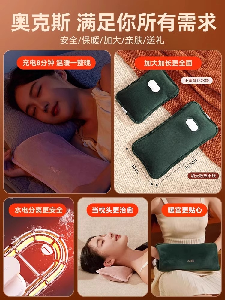 【很暖很大❗️奥克斯电热水袋】充电8分钟 温暖一整晚 充电式暖水袋暖手宝暖宝宝防爆暖敷肚子暖热宝