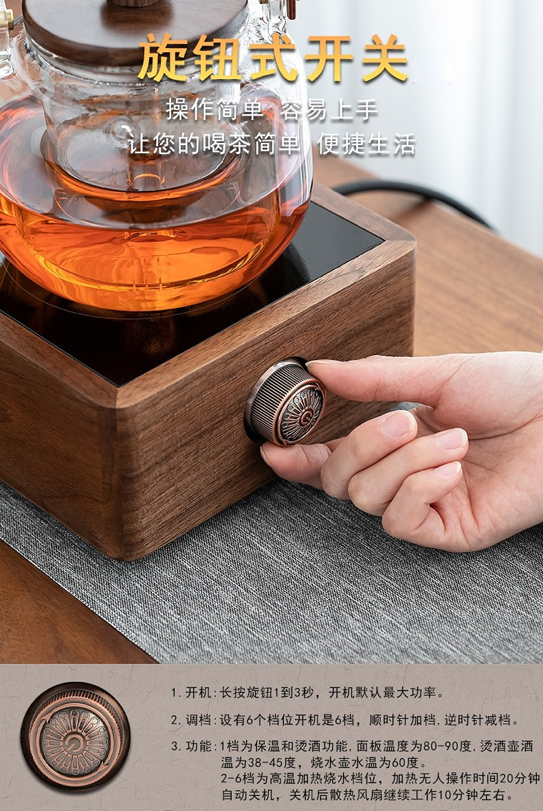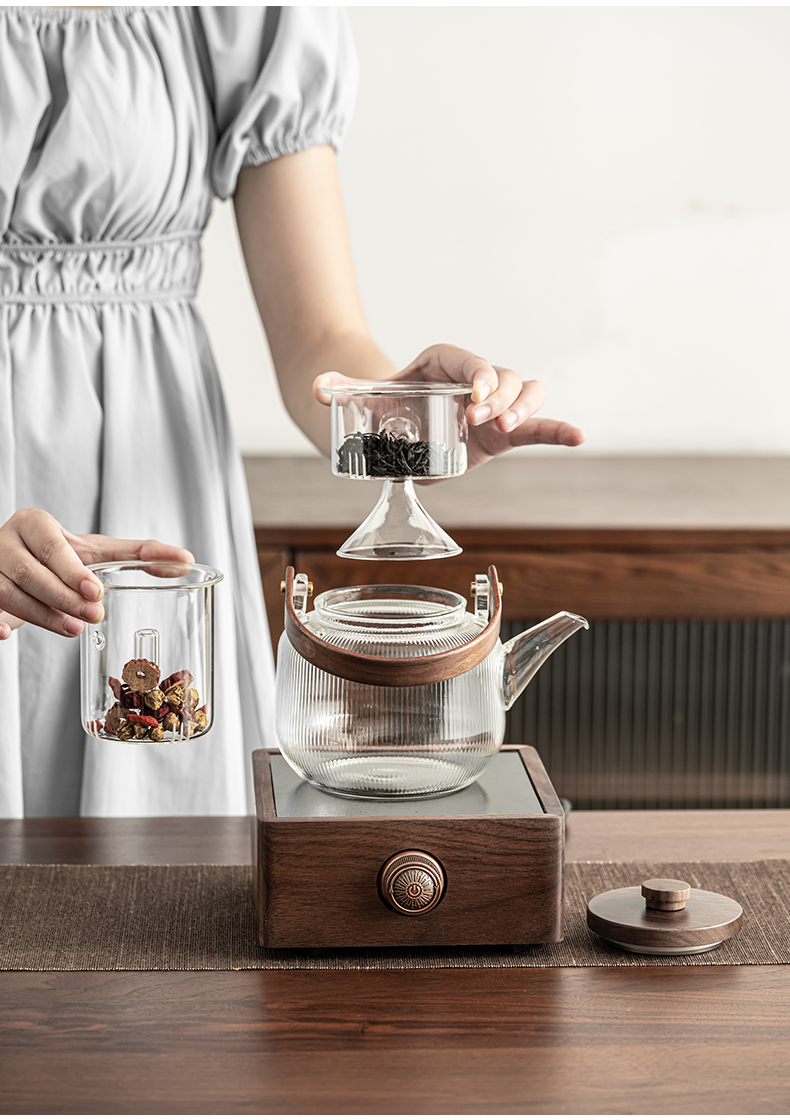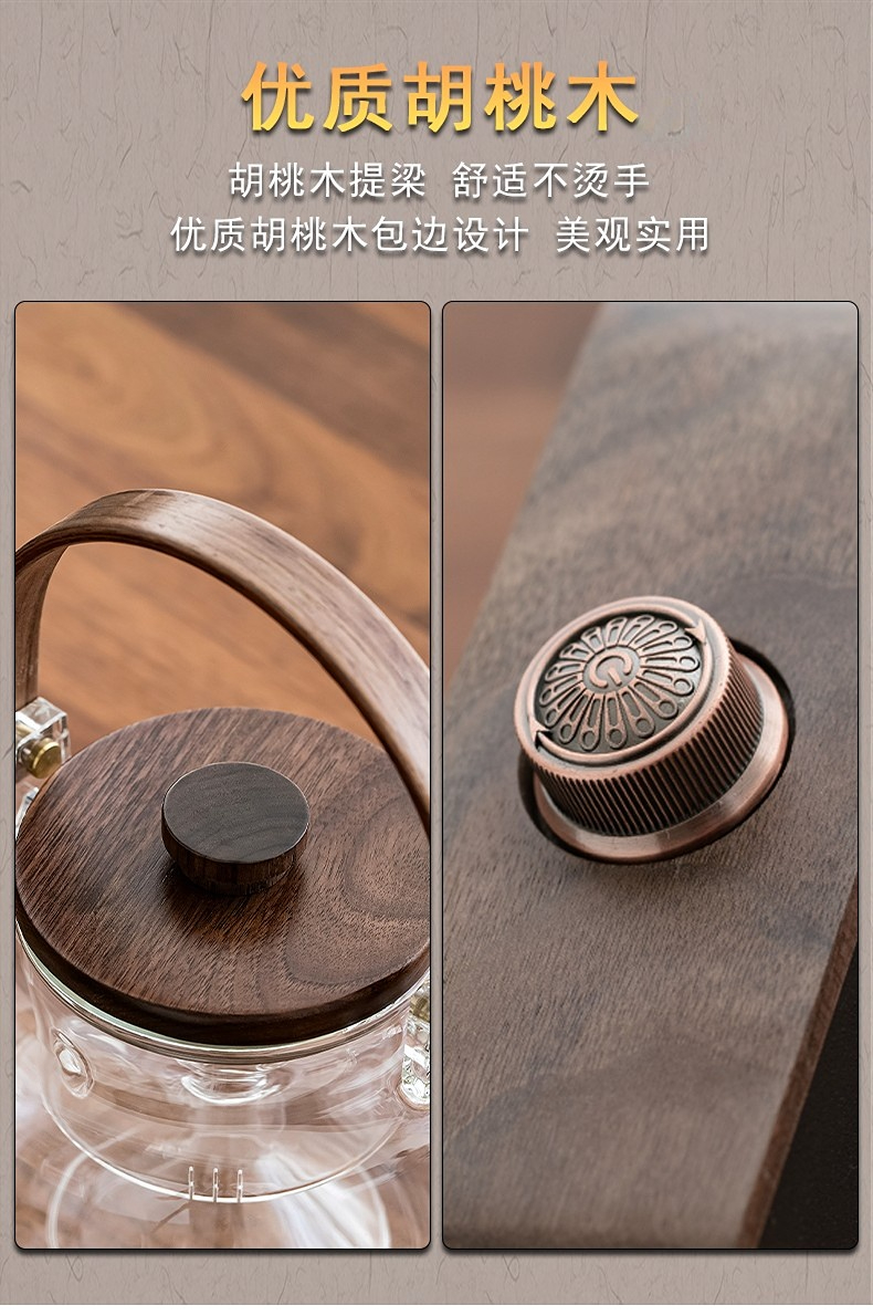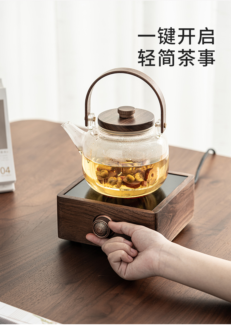 永利汇胡桃木电陶炉煮茶器玻璃水壶白茶煮茶壶小型茶炉套装水壶