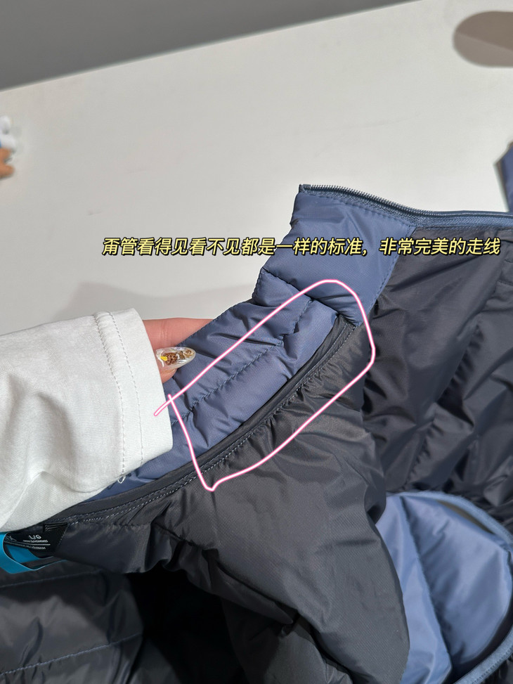 每个绗缝它的充绒量都很足,850+的蓬松度真的不是吹啊,就是肉眼可见的蓬