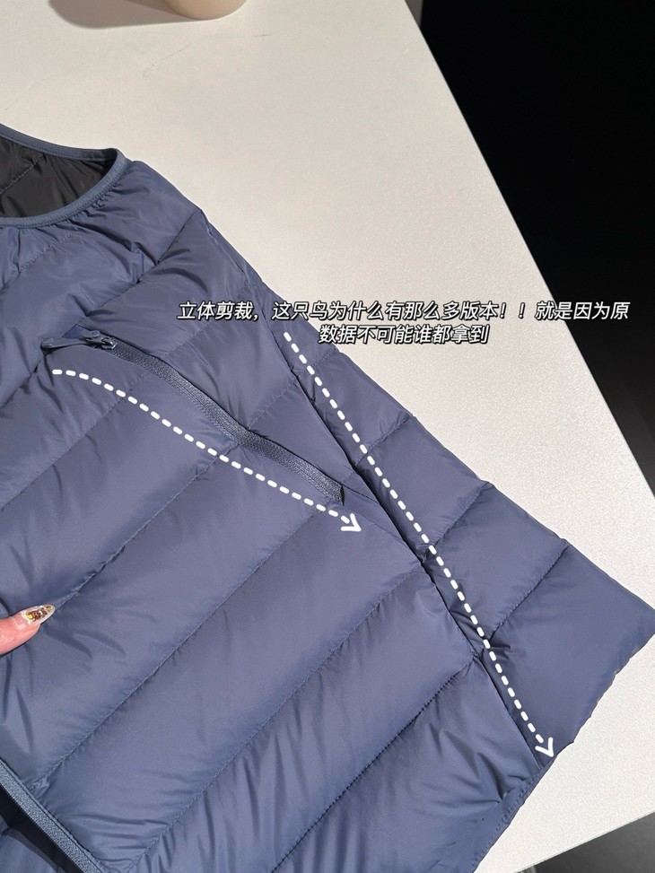 个人感觉 Cerium是区别于所有羽绒马甲的一点不厚重!不臃肿!!看起来轻轻无奇但是上身以后立马惊艳了,直接就是纸片人的效果,超级帅!!!
