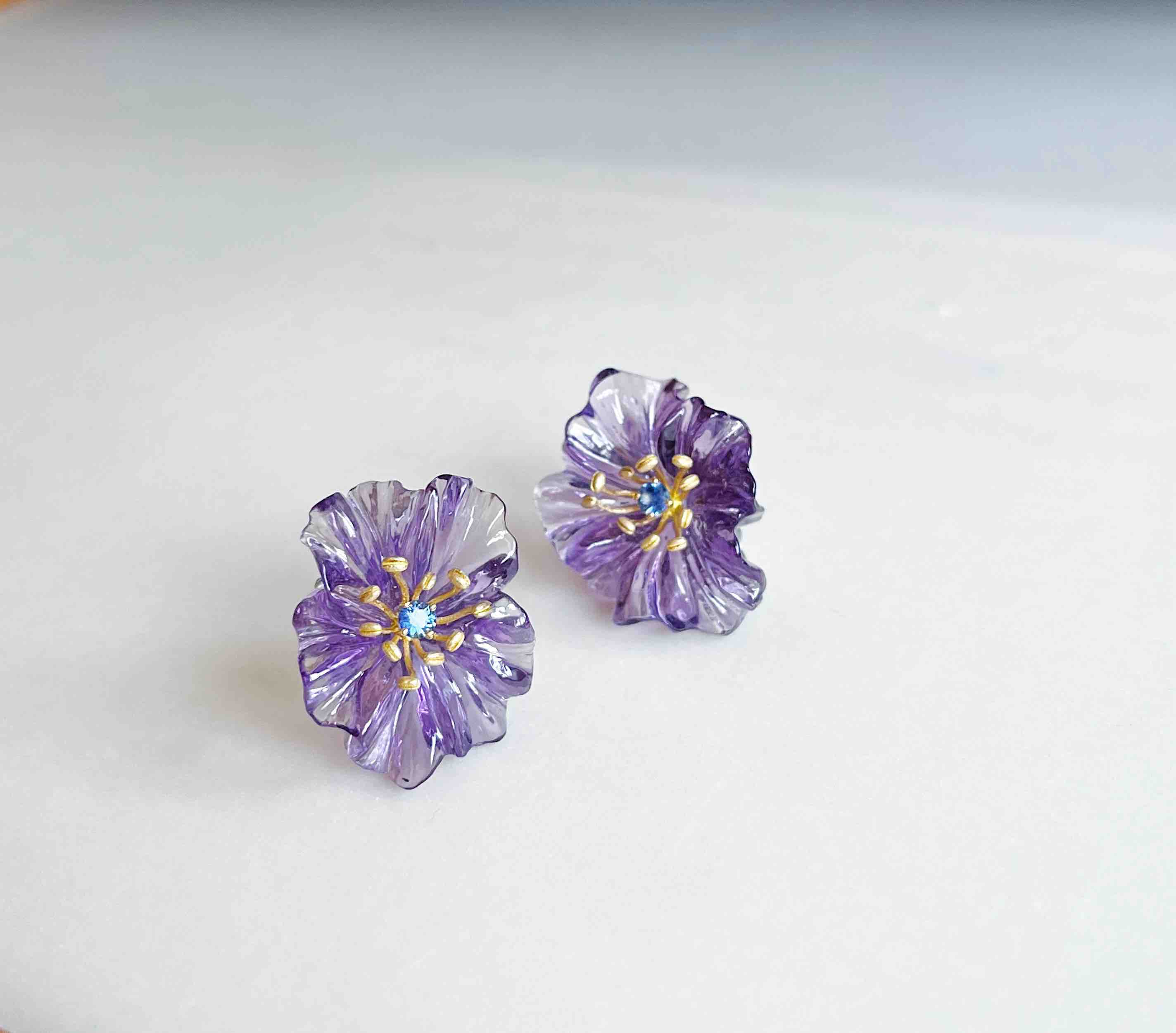 BY EVITA系列 花语 18K镶紫水晶、蓝宝石和钻石 耳钉