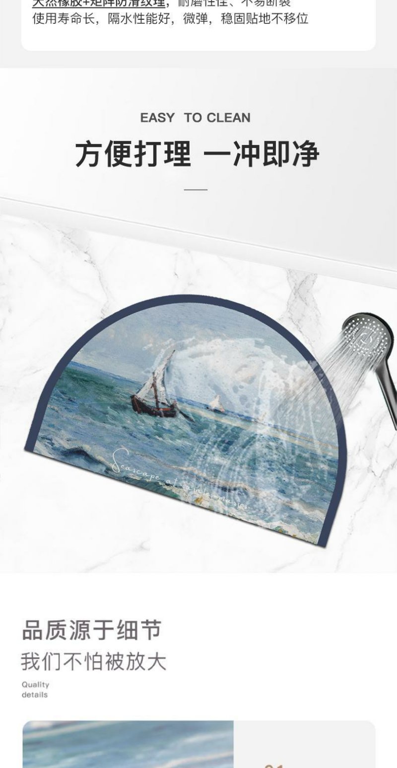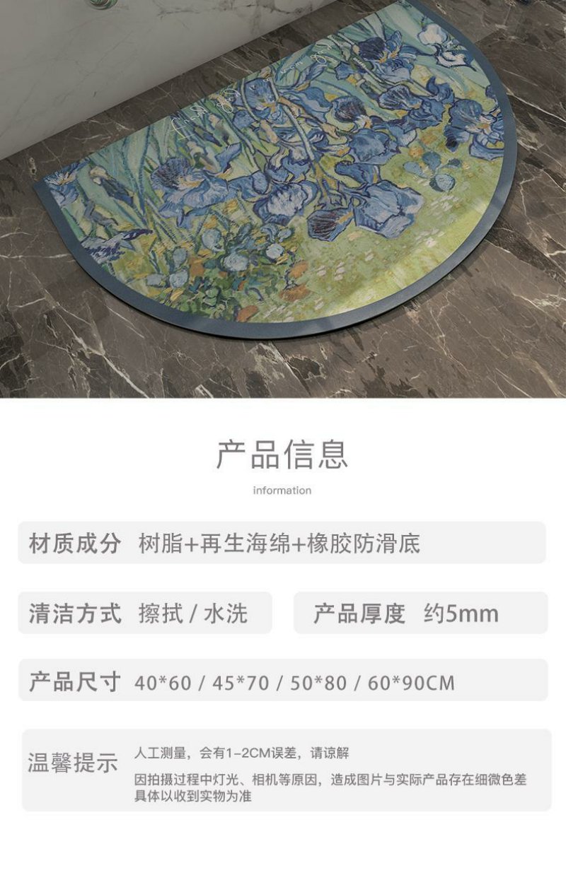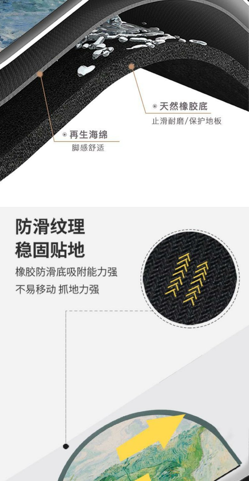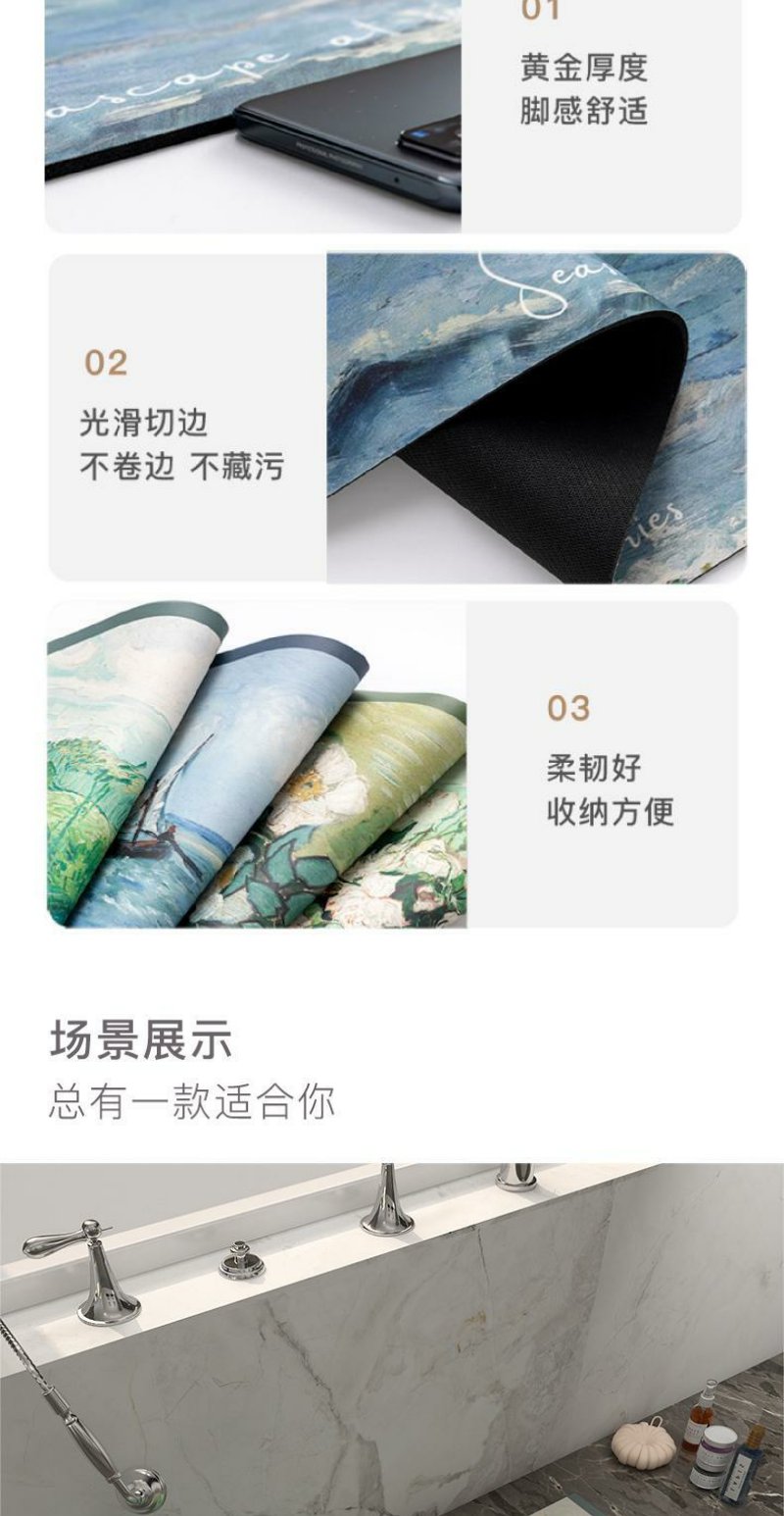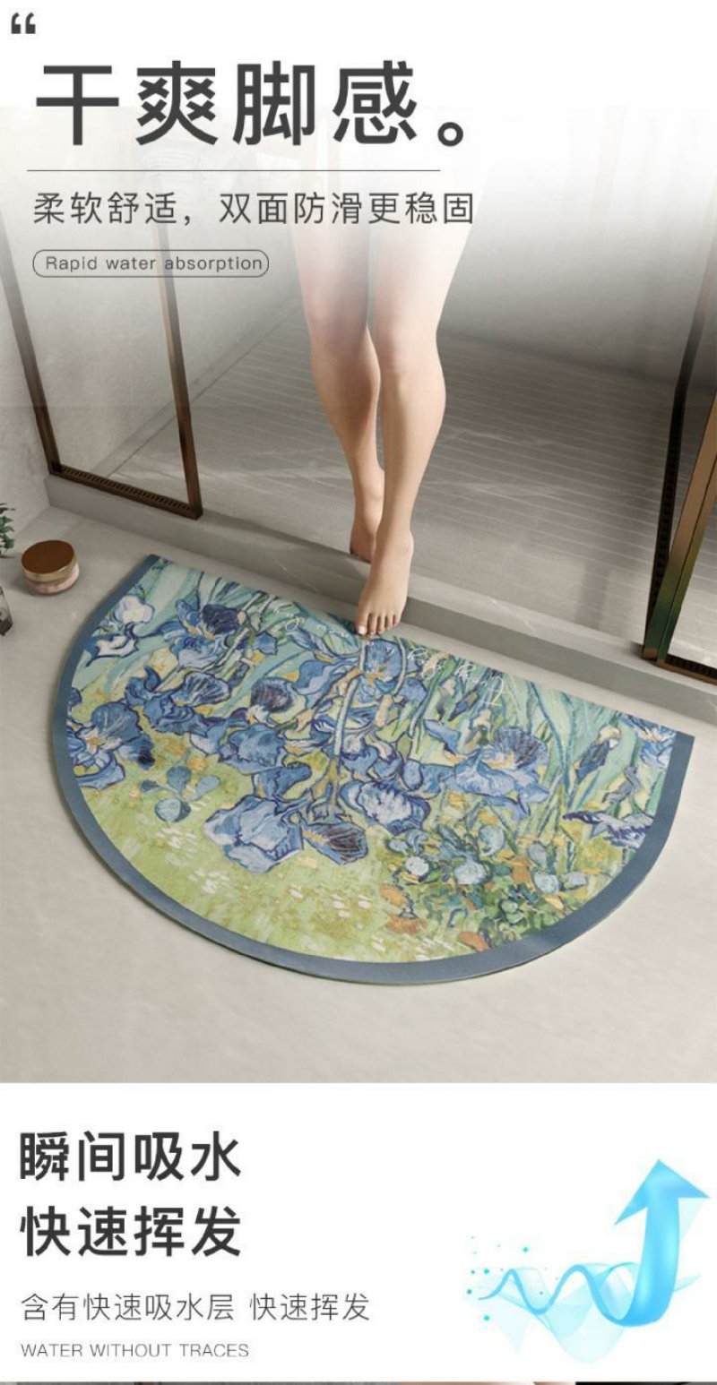 梵高油画卫生间脚垫防滑吸水地毯浴室脚垫厕所进门口硅藻泥软垫子