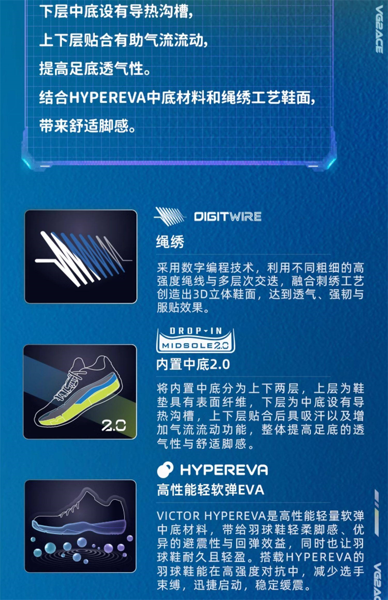VICTOR威克多羽毛球鞋软弹缓震舒适比赛训练透气轻量羽球鞋VG2ACE
