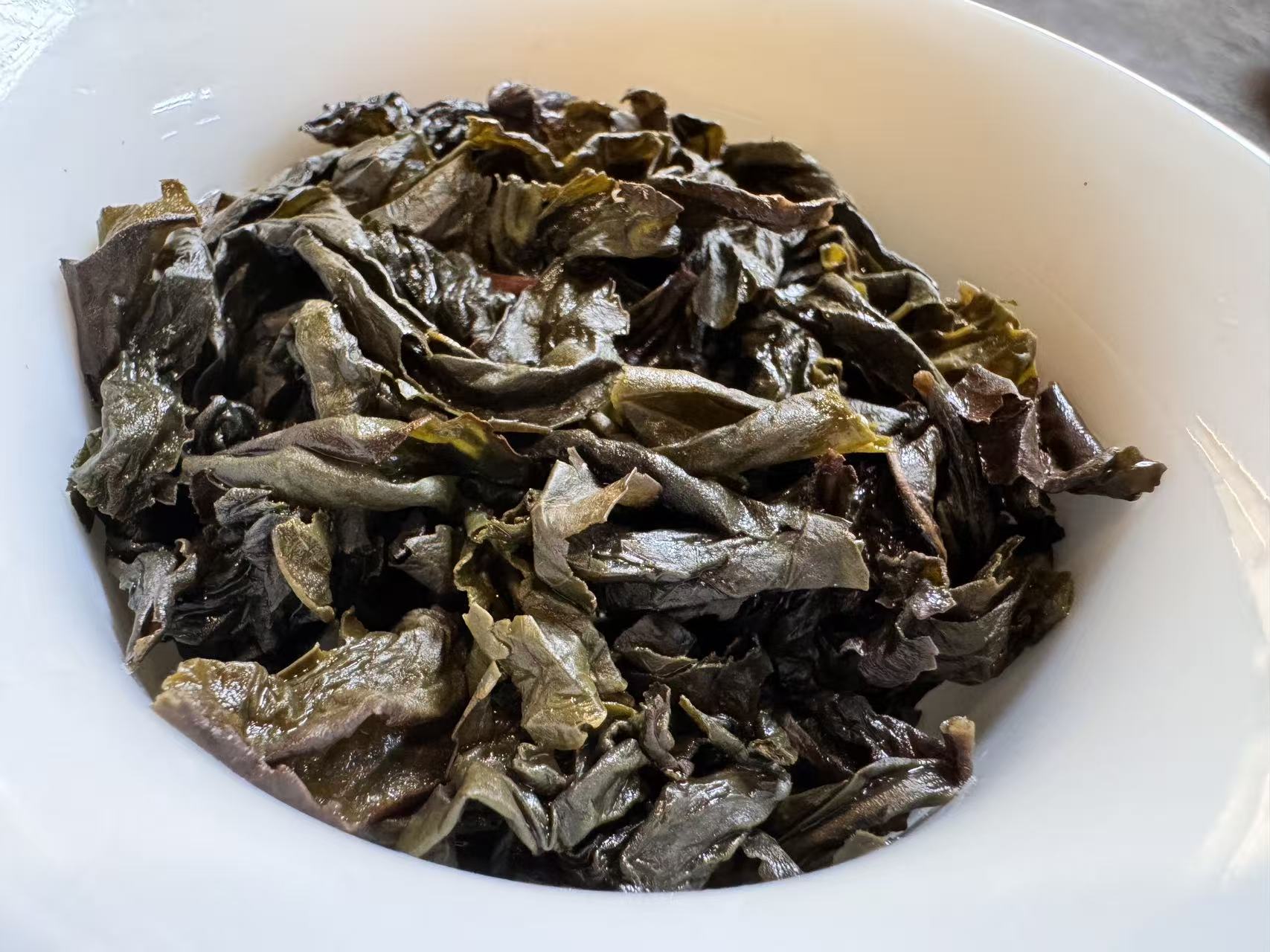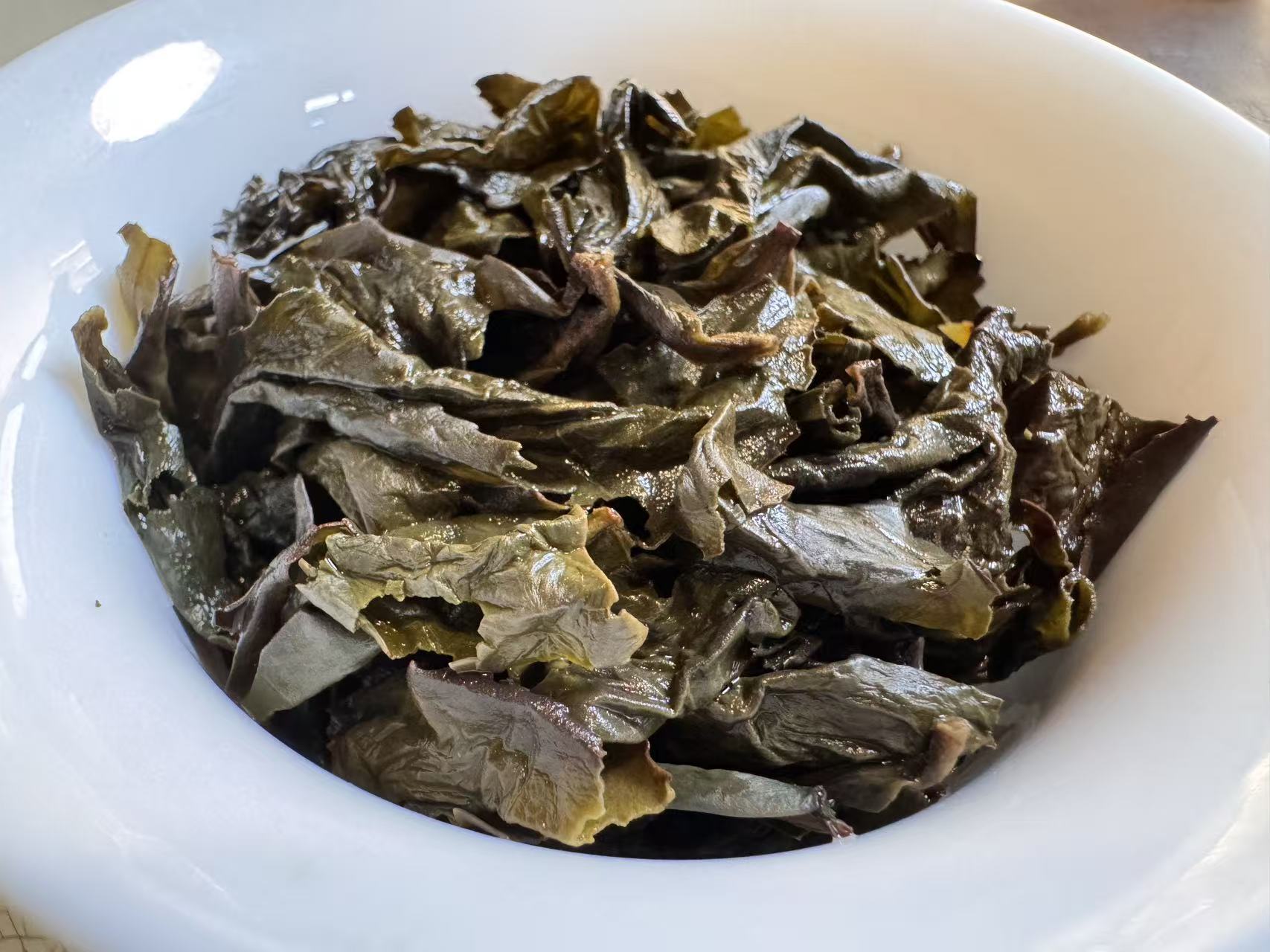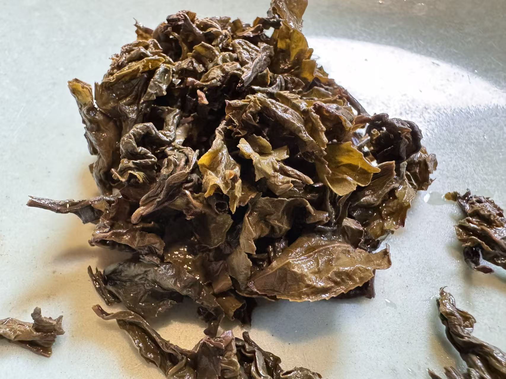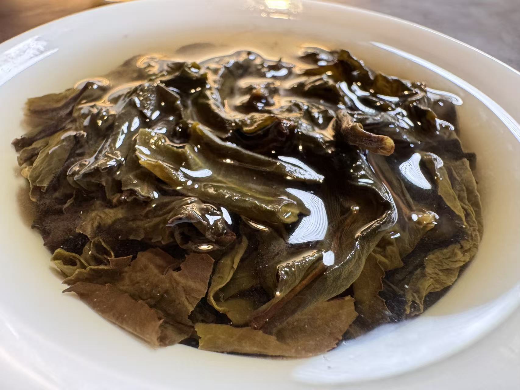 为了确定内含物质的丰富度,我又加闷了6分钟,下面是第四道的叶底和汤色。