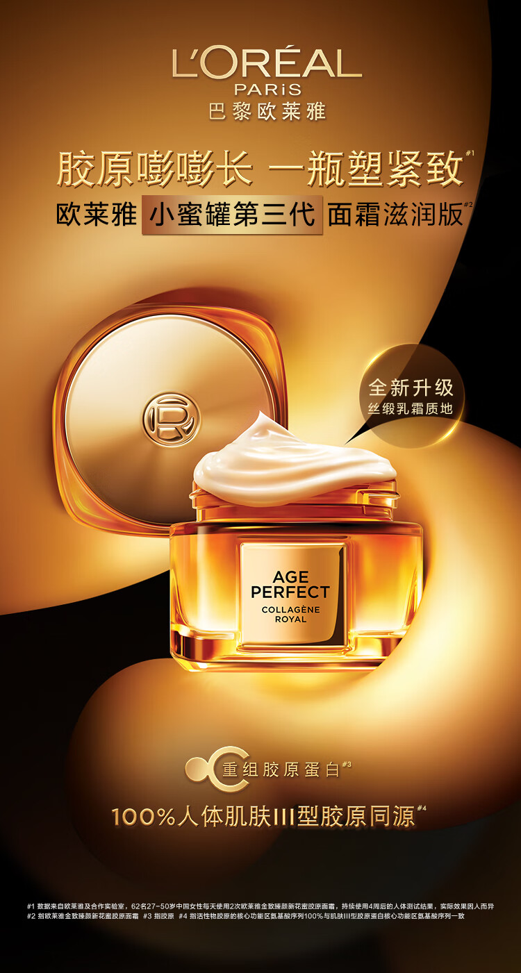 【小蜜罐面霜第3代正装】欧莱雅金致臻颜新花蜜胶原面霜 60ML