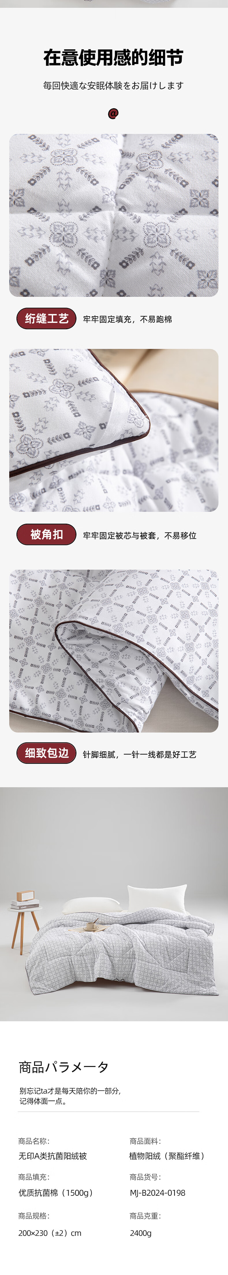 无印良品A类抗菌阳绒被MJ-B2024-0198