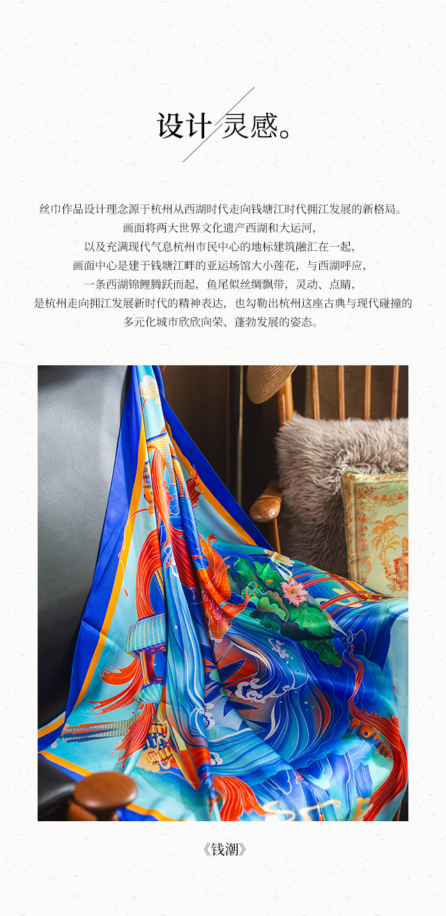 喜得宝文创丝巾《@钱潮》数码大方巾 杭州丝绸100%桑蚕丝素绉缎