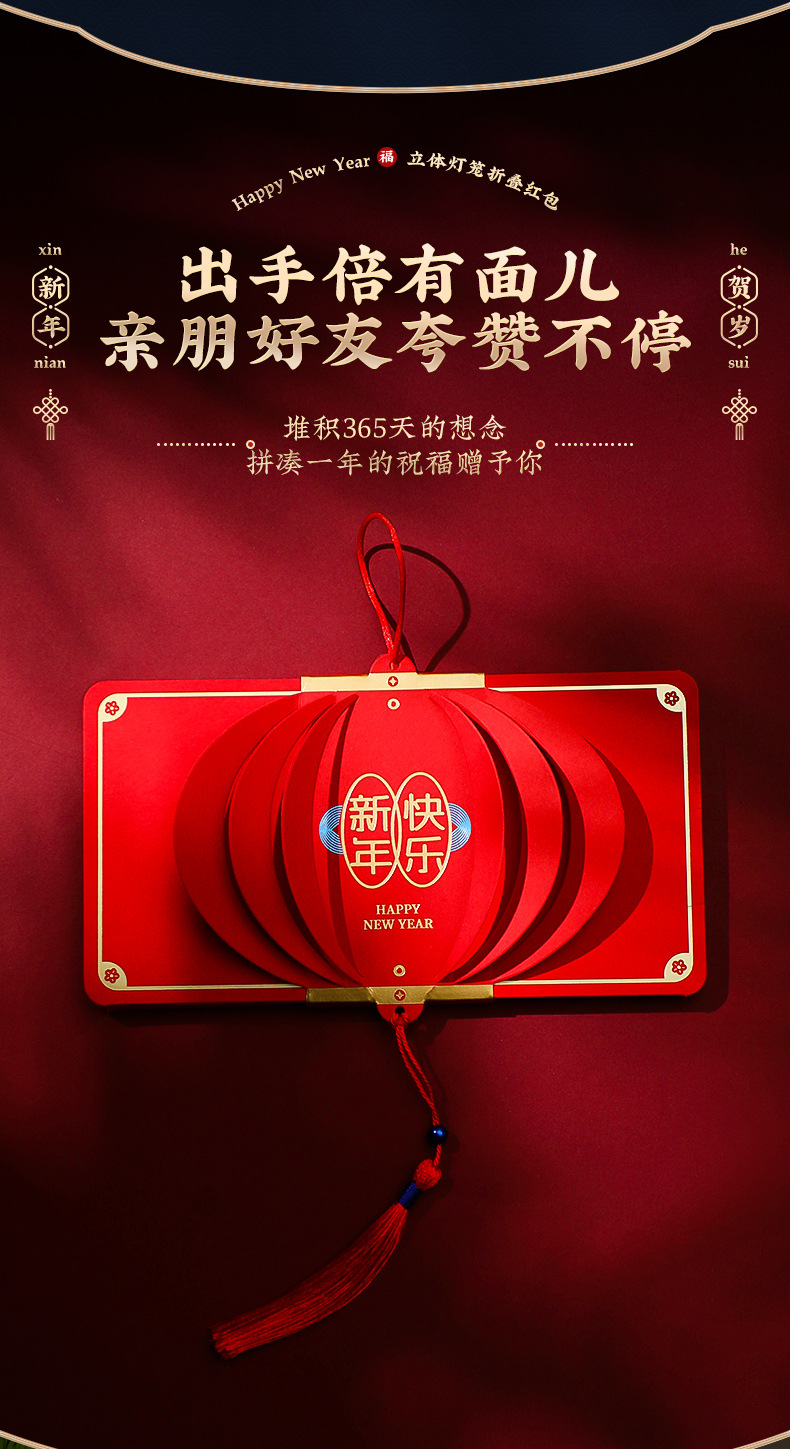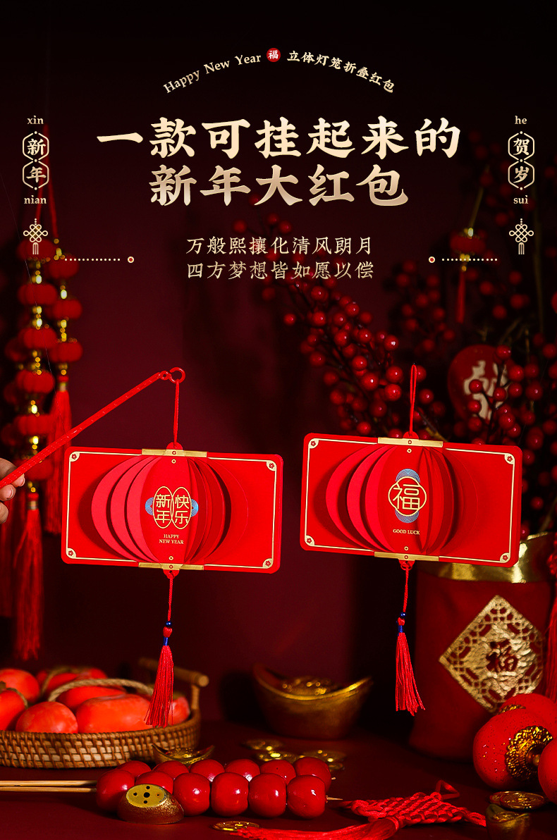 【超大容量 手提灯笼红包】2024龙年新年红包儿童压岁包过年立体折叠拜年手提灯笼钱包利是封