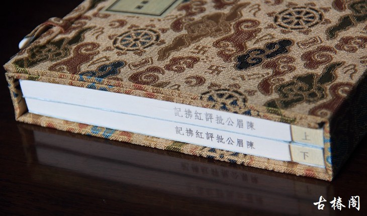 宋锦函套,花绫为书衣。采用天蓝色凤舞祥云精品花绫做封面,风雷火轮宋锦做函套,体现了清爽、简洁、流动之美,映衬那段“红拂夜奔”的美丽传奇。