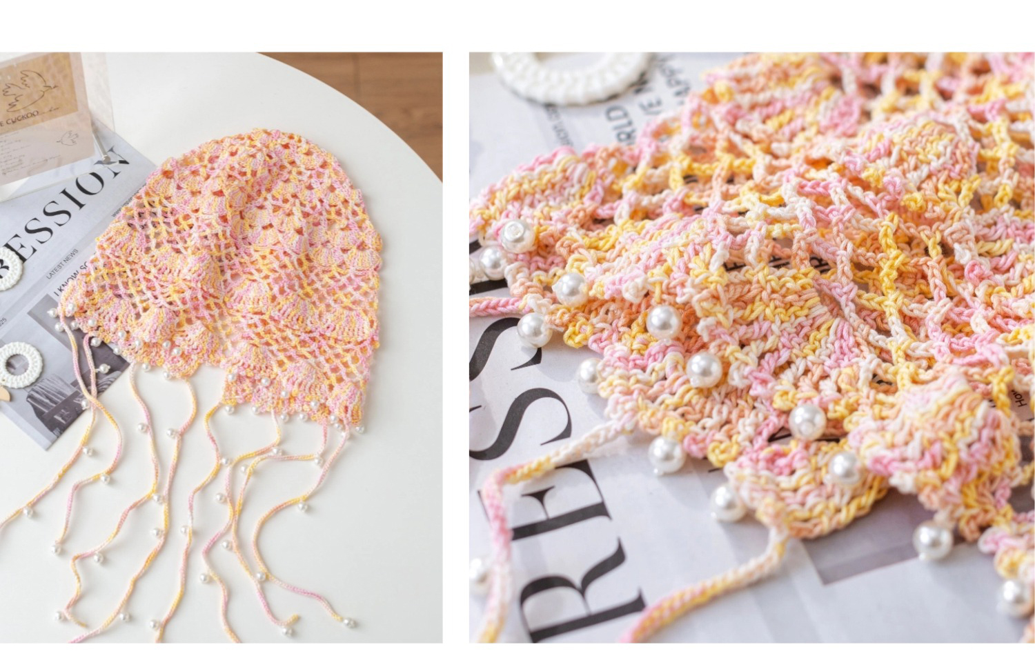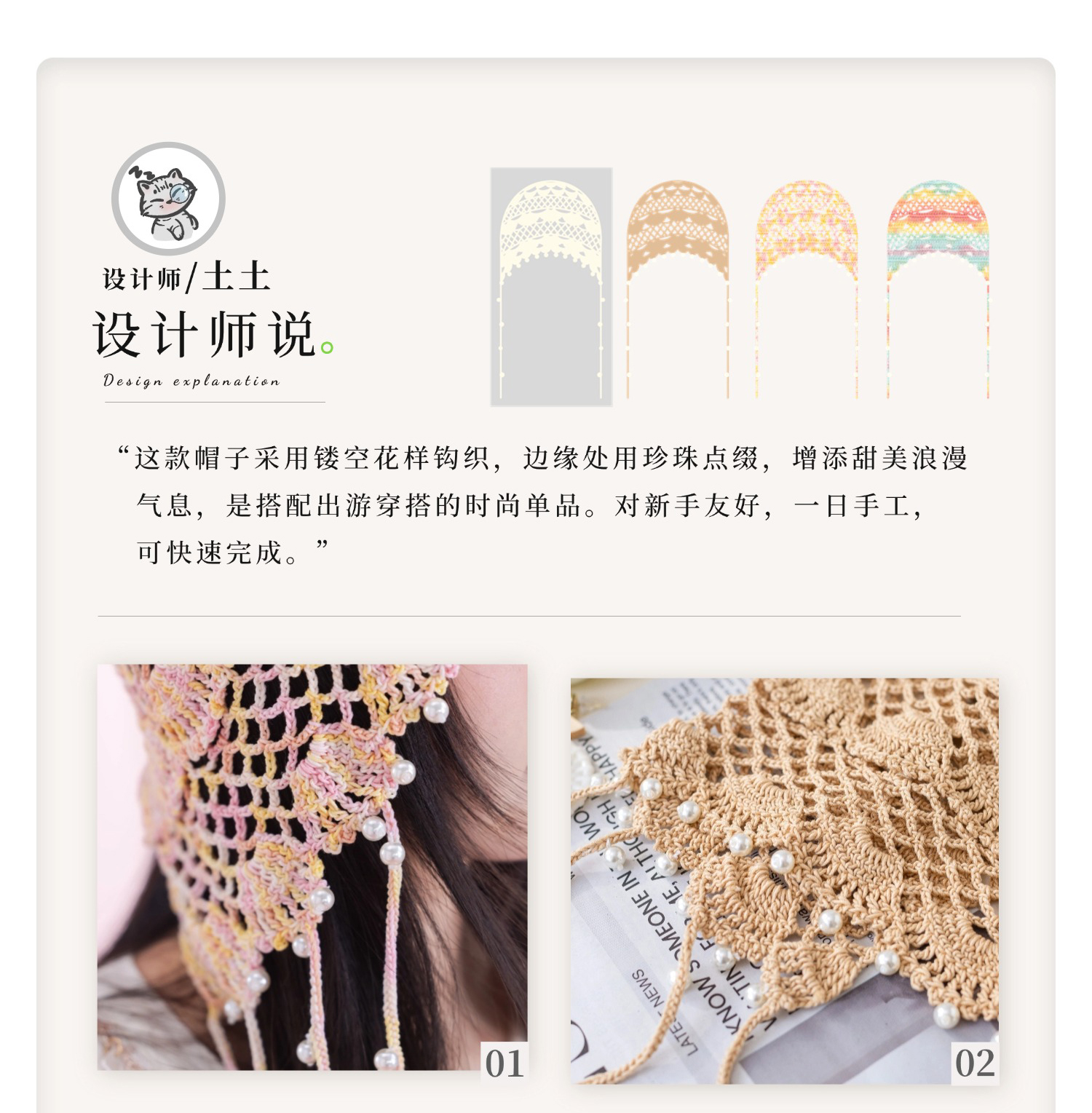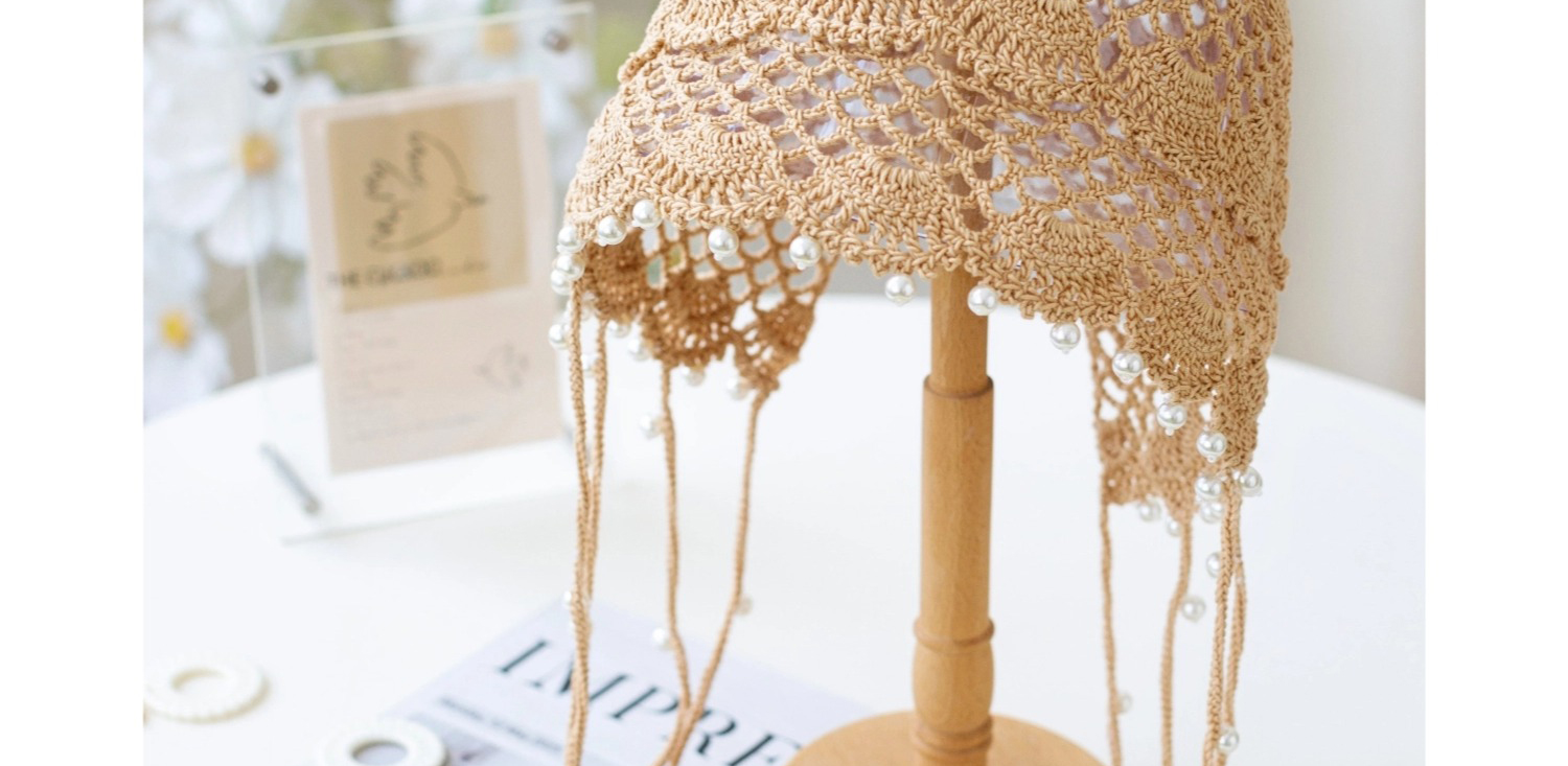 苏苏姐家镂空珍珠帽手工diy编织钩针蕾丝线毛线团自制帽子材料包