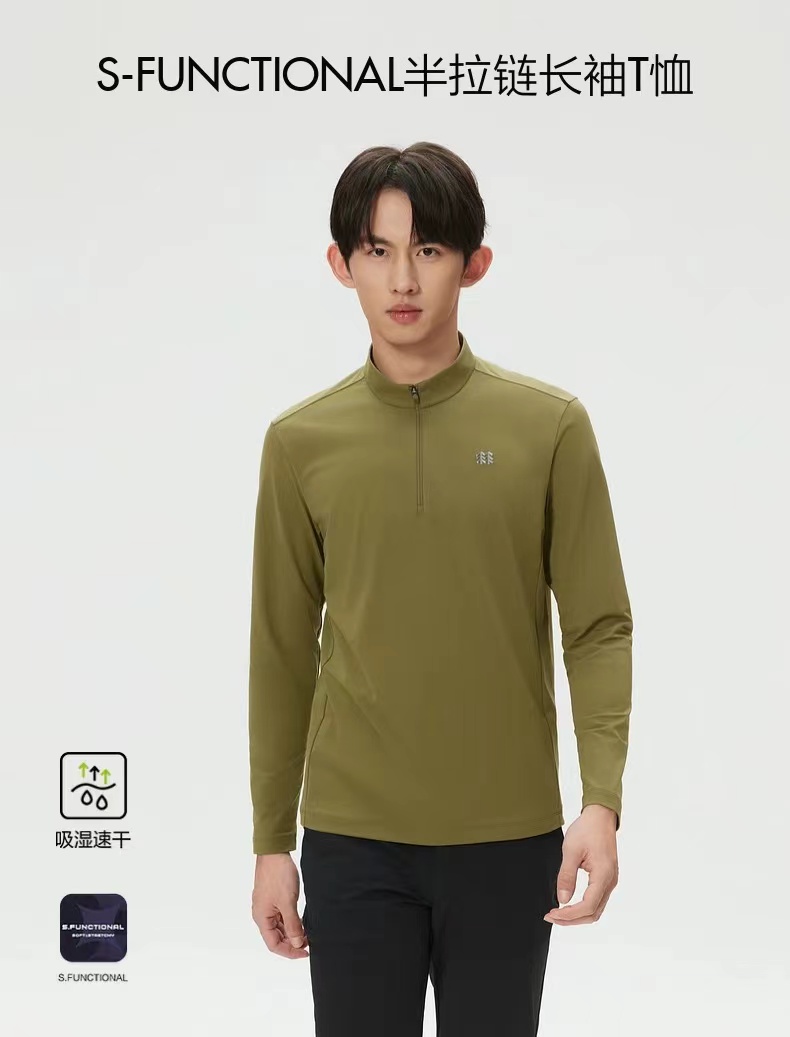 F031651吸湿速干T恤男女S-FUNCTIONAL亲肤柔软半拉链长袖T恤