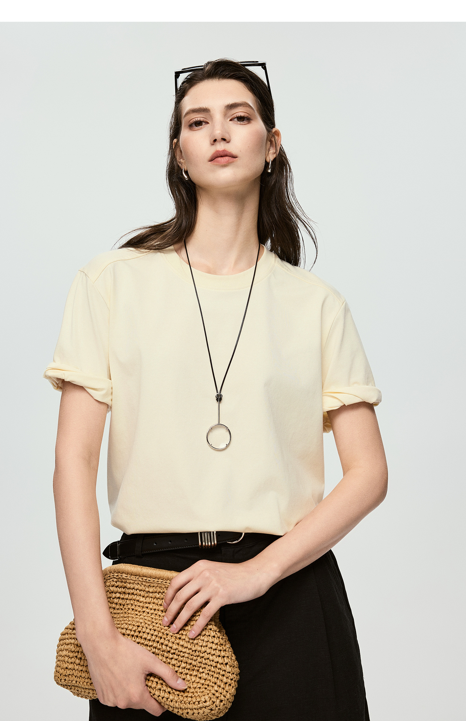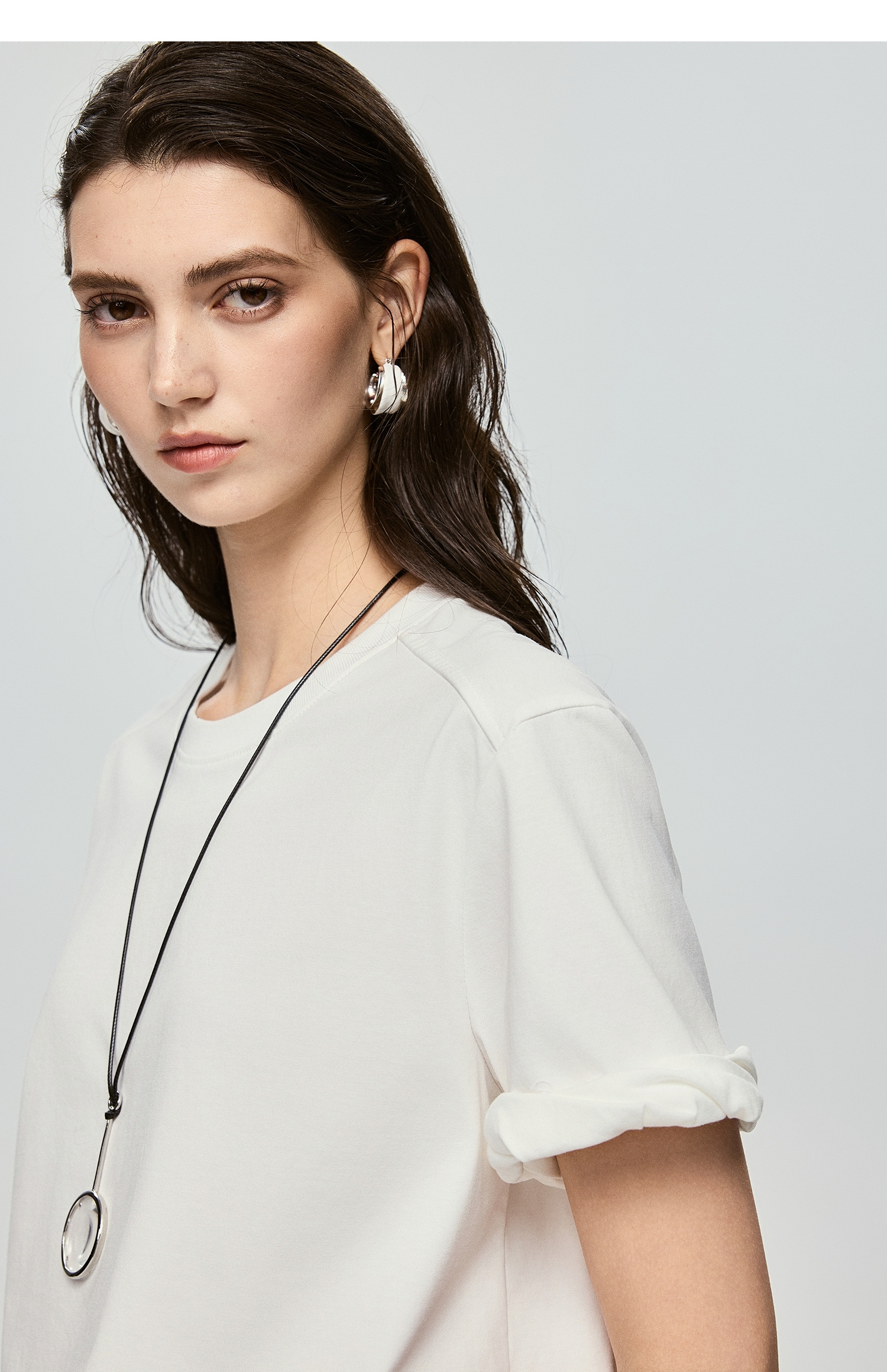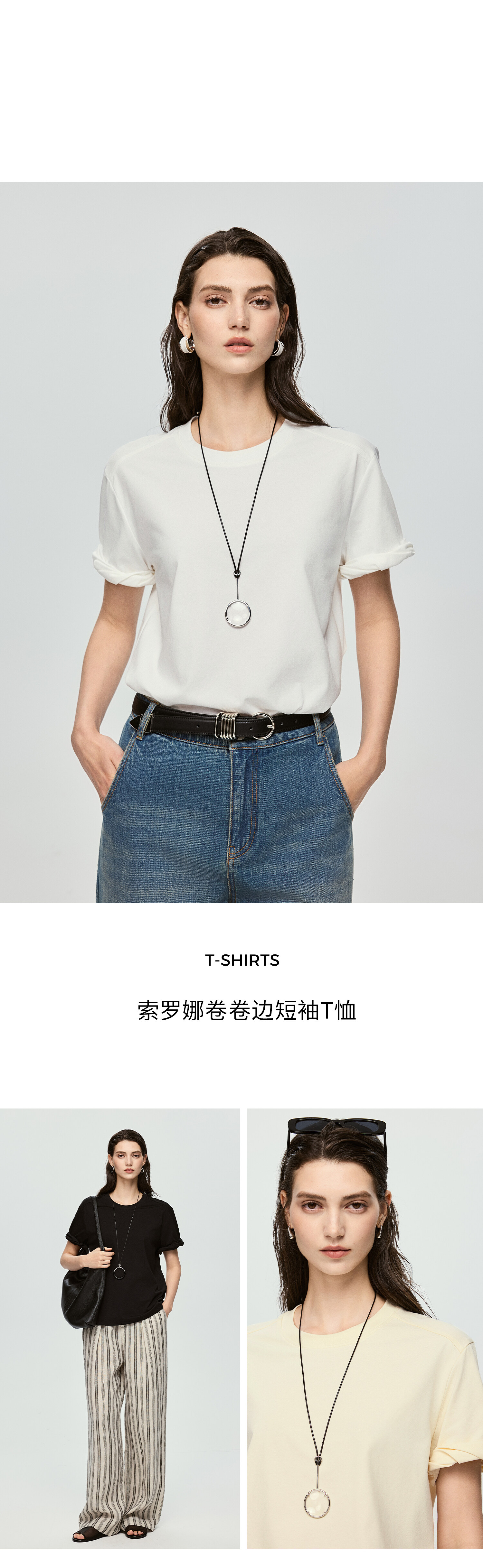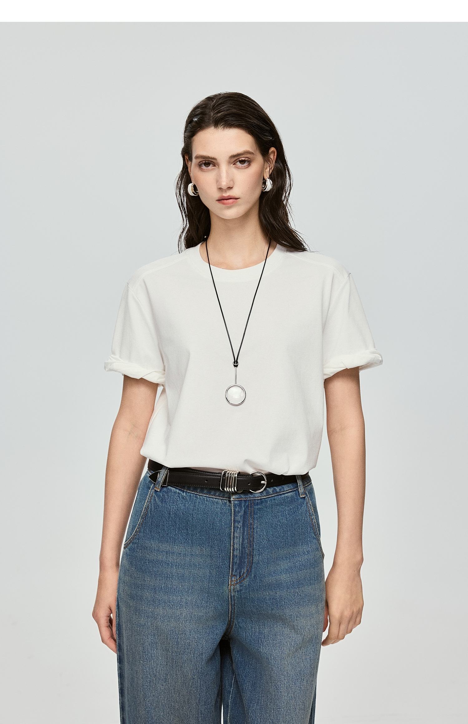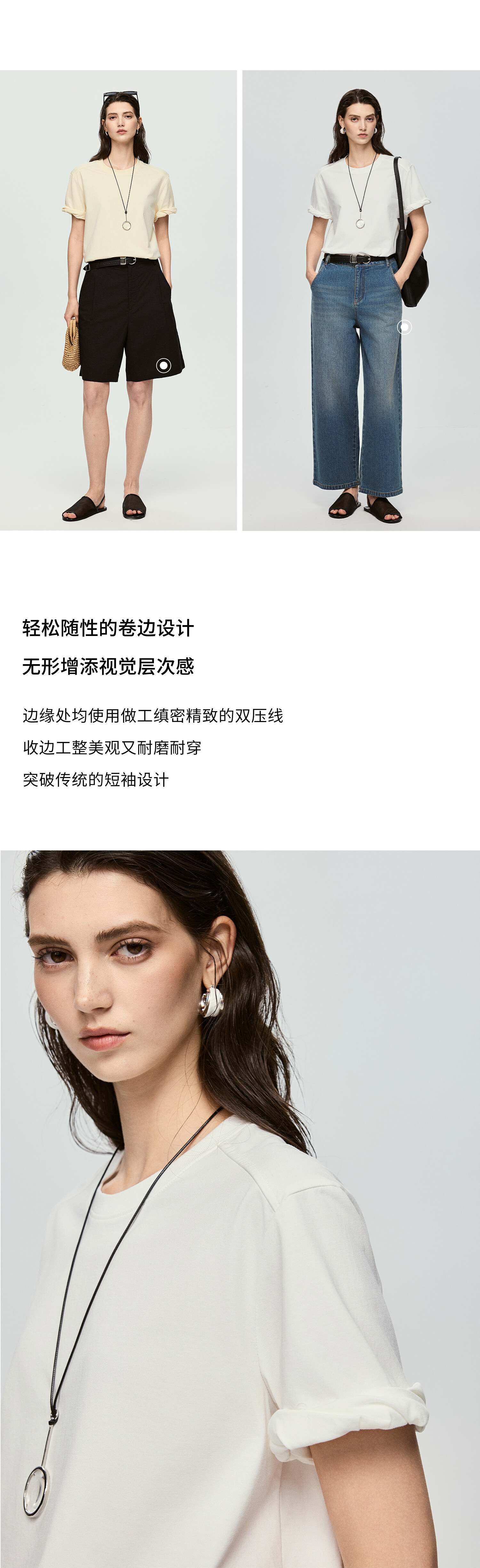 棉仓363601075-初棉假日感造型感-卷卷边短袖T恤