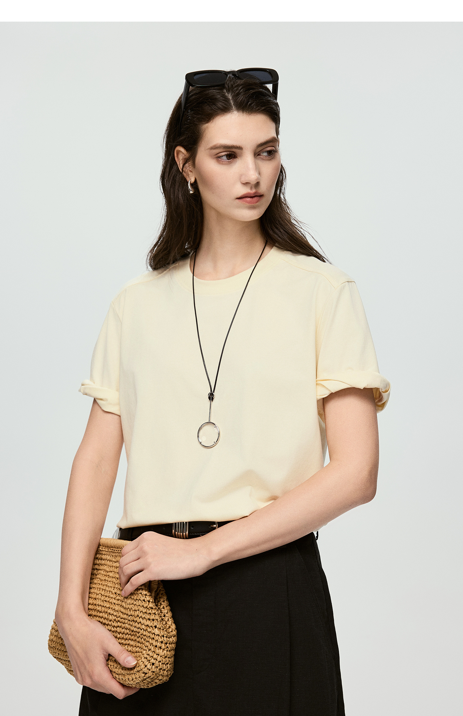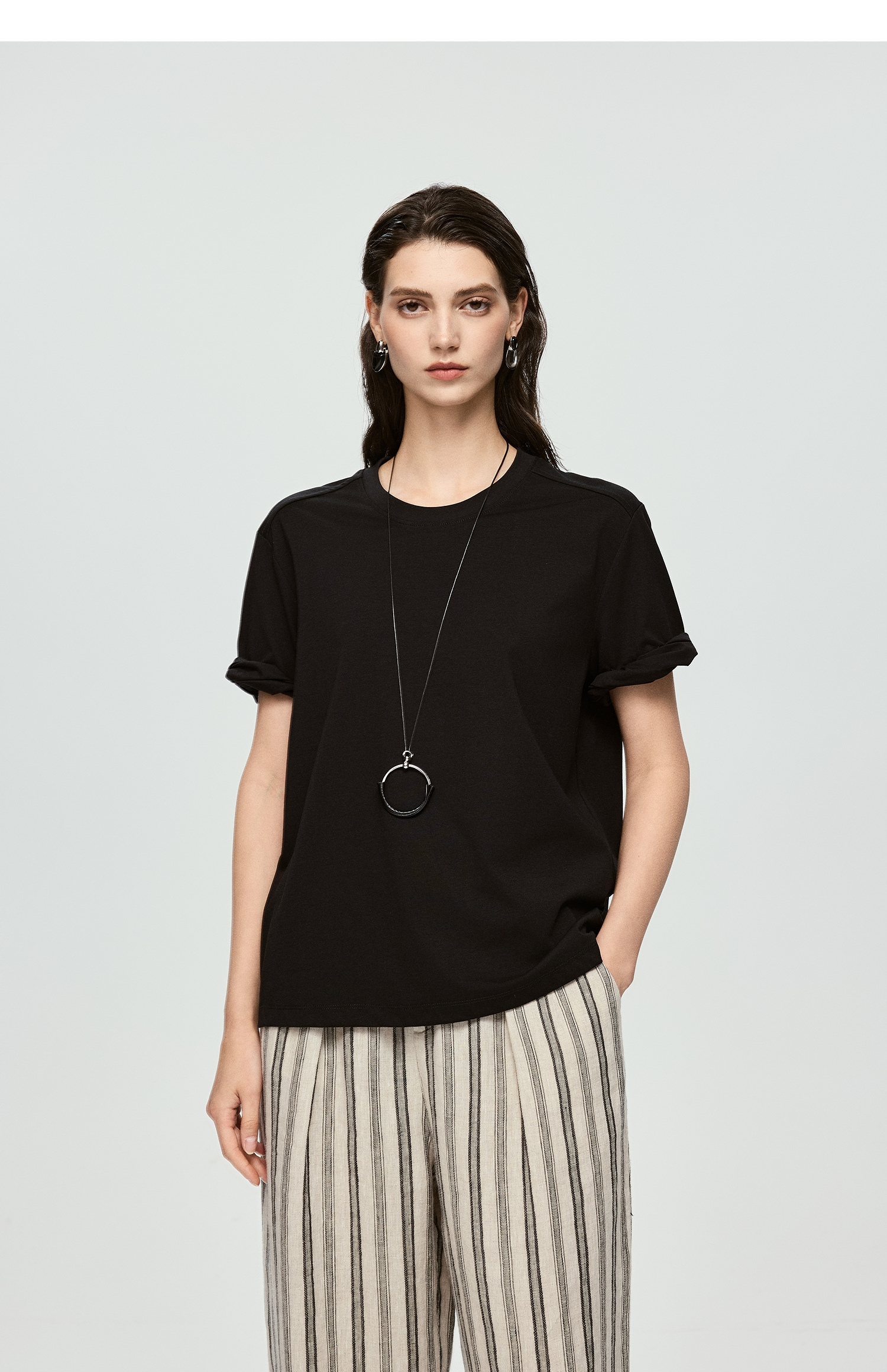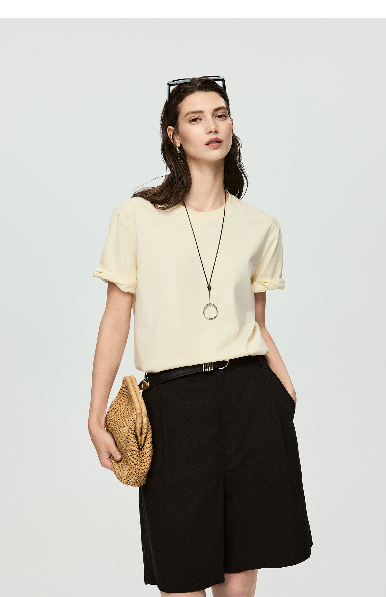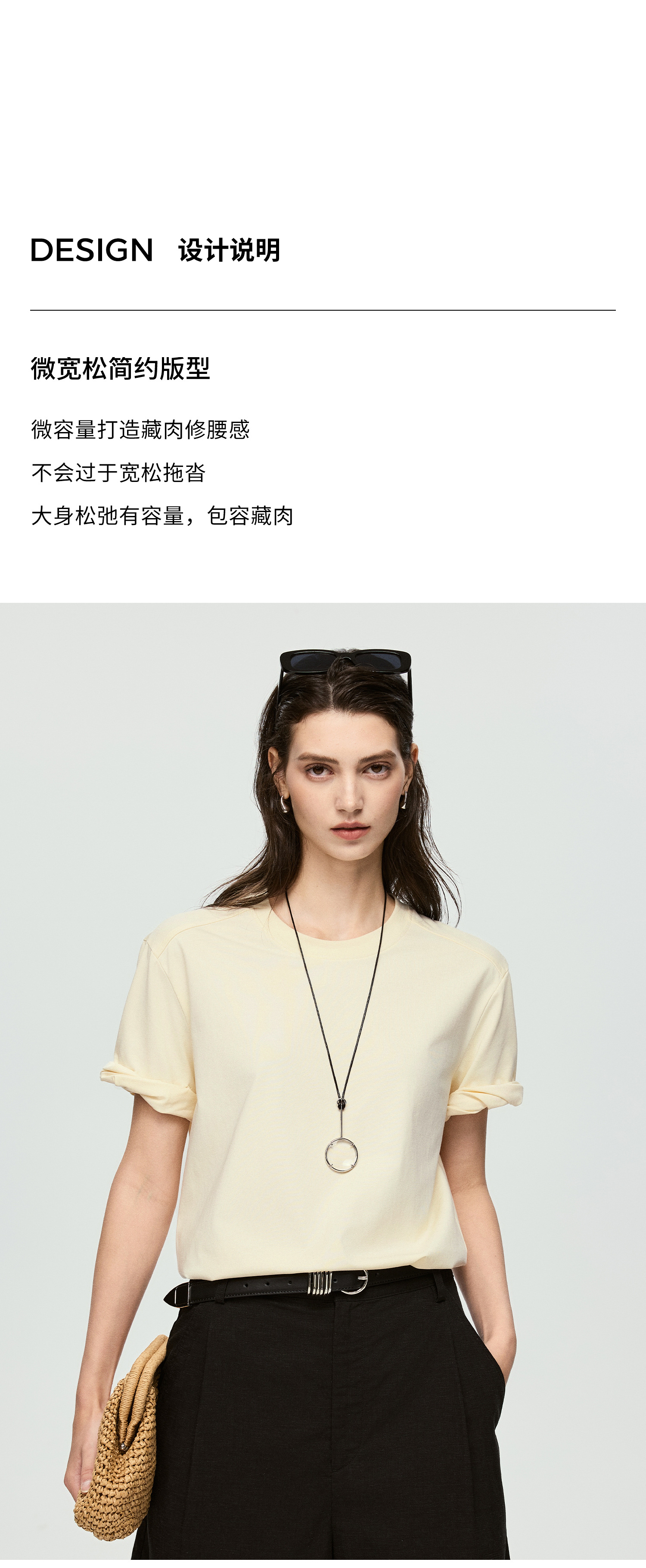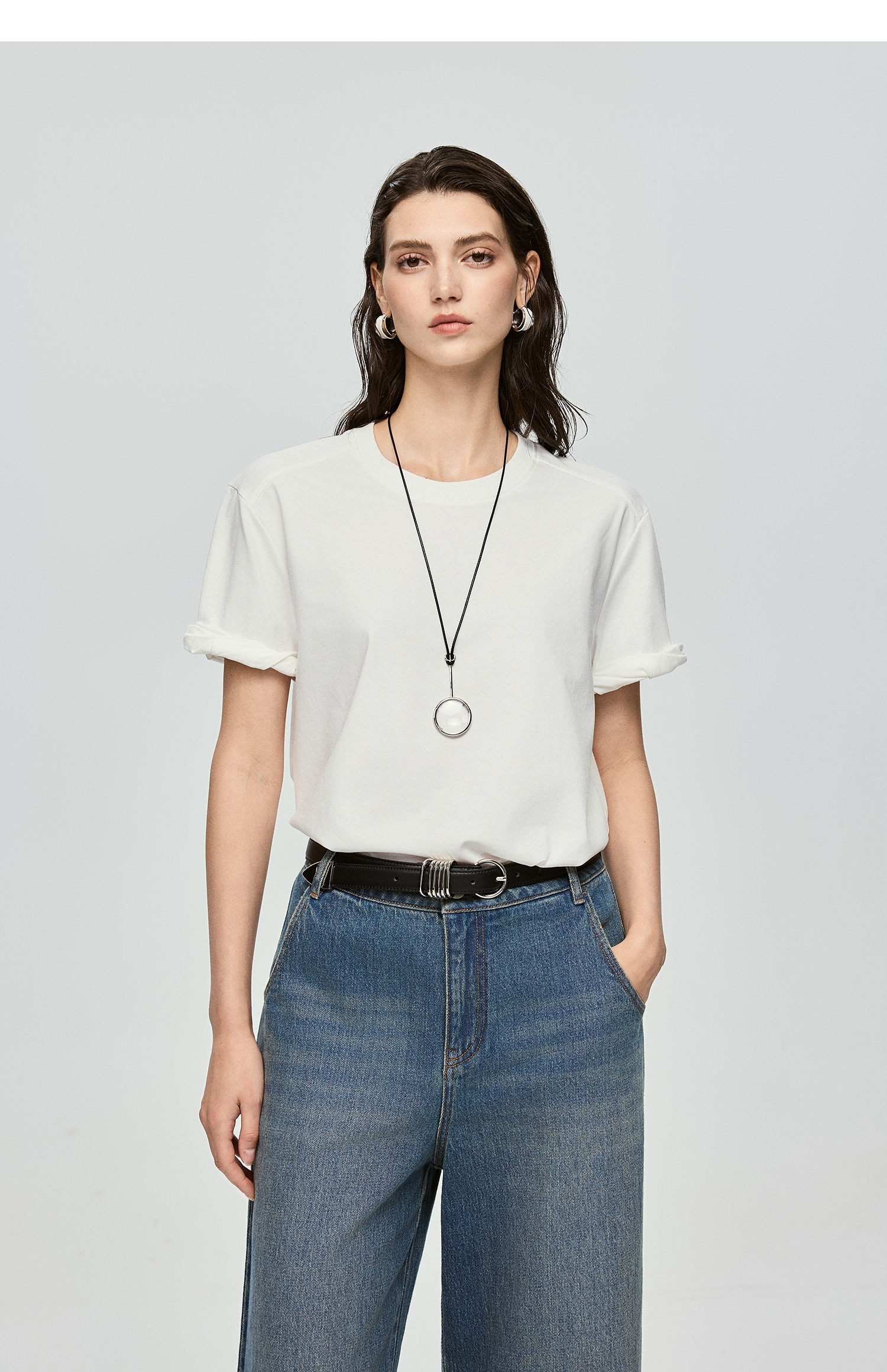 棉仓363601075-初棉假日感造型感-卷卷边短袖T恤