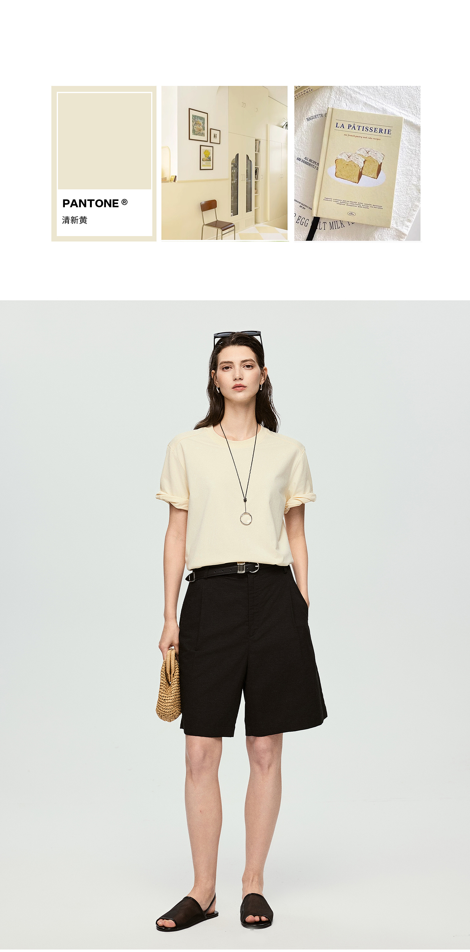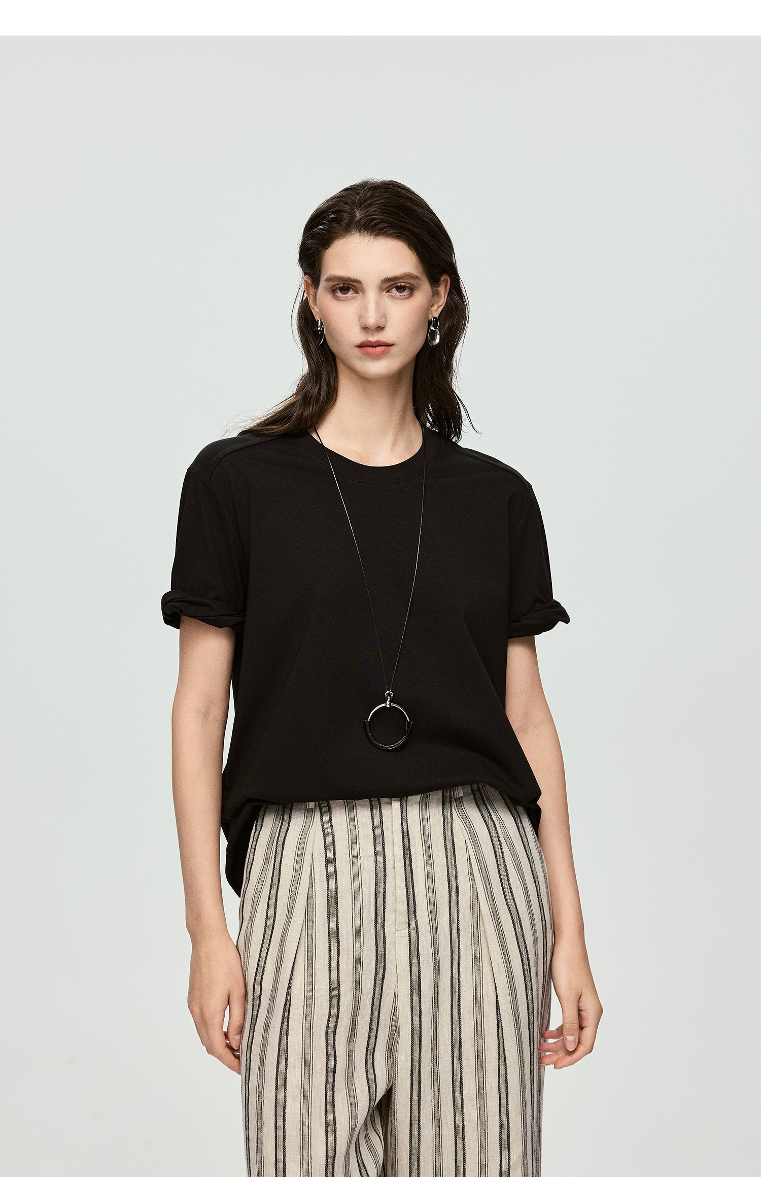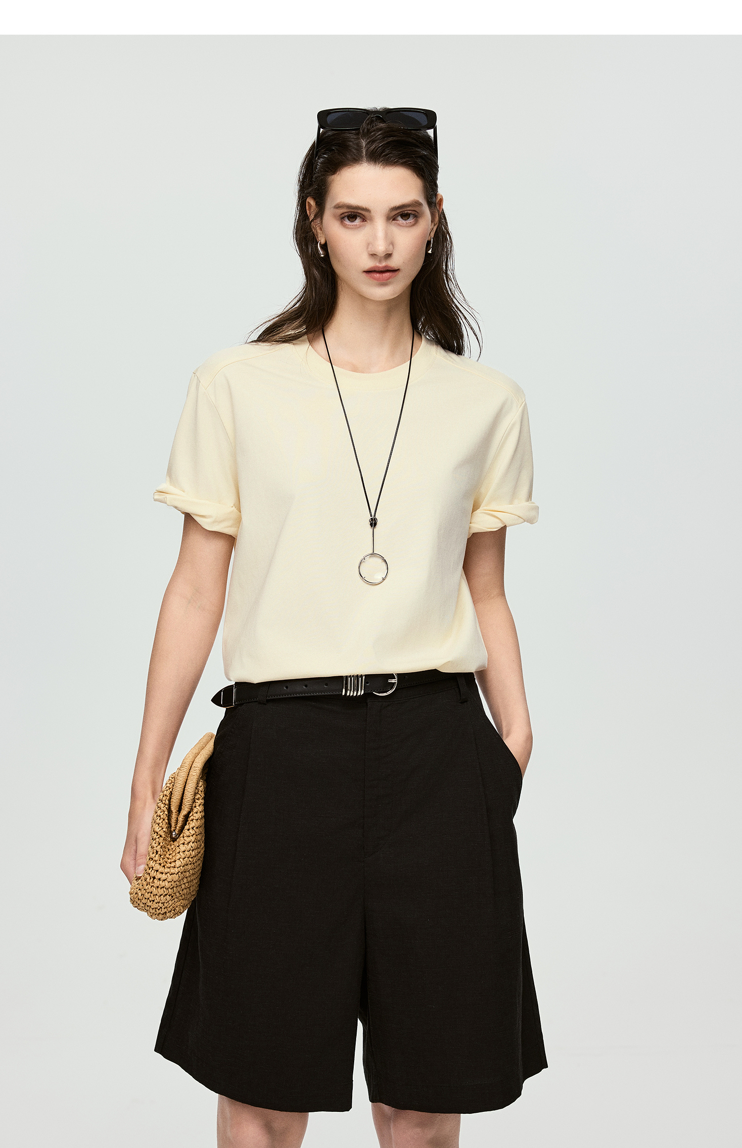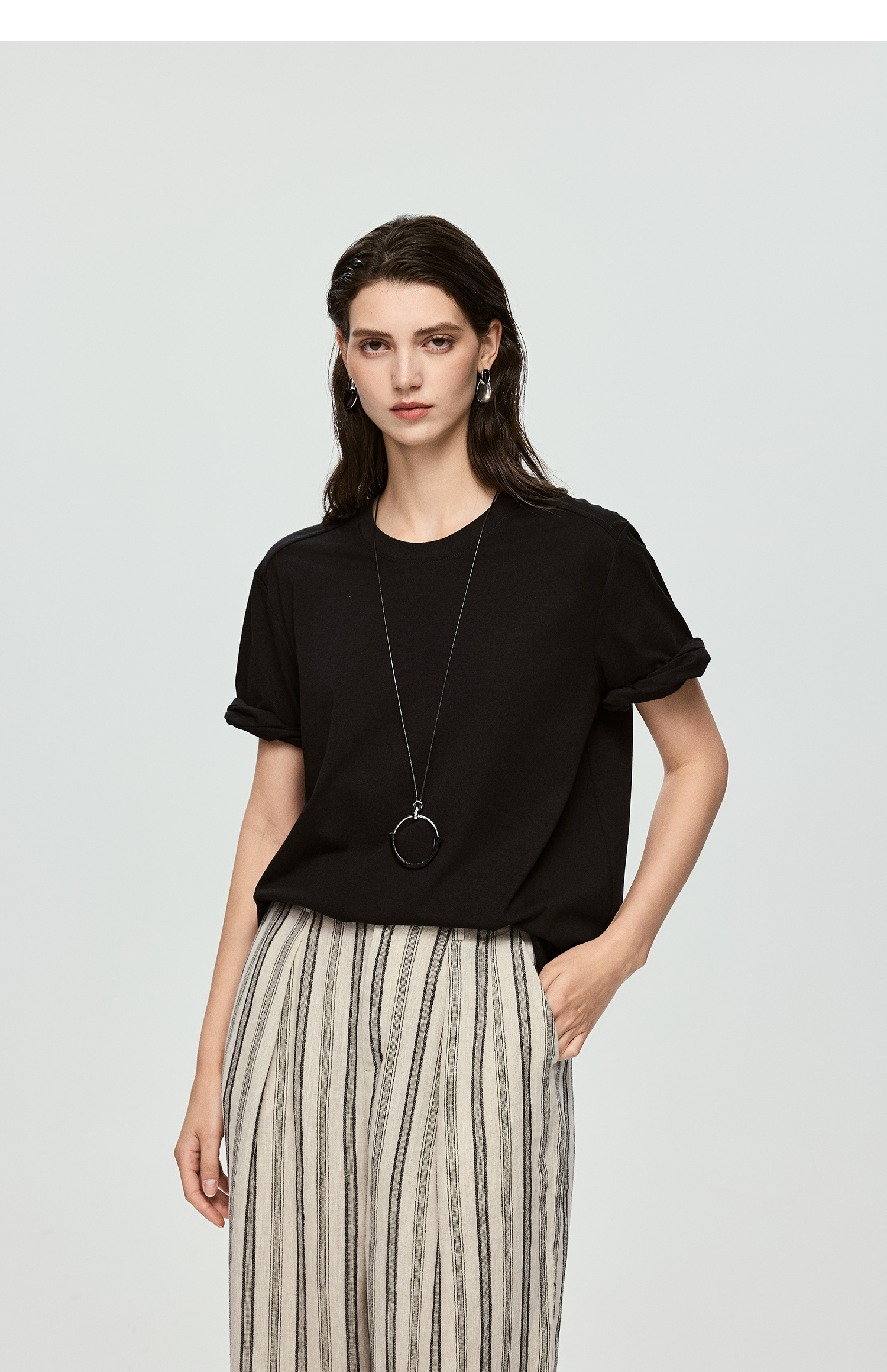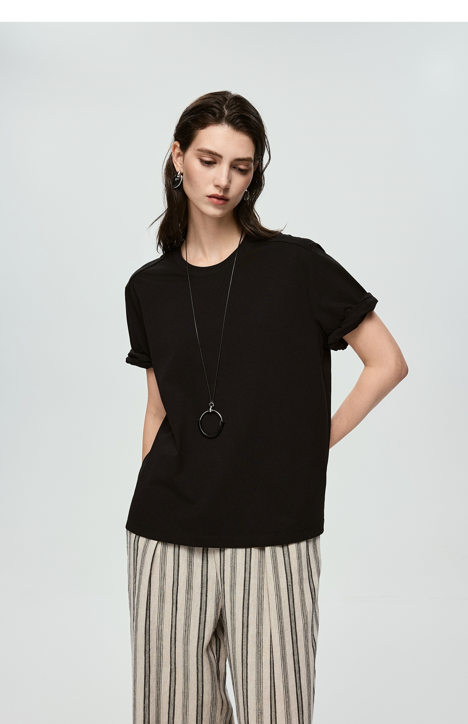 棉仓363601075-初棉假日感造型感-卷卷边短袖T恤