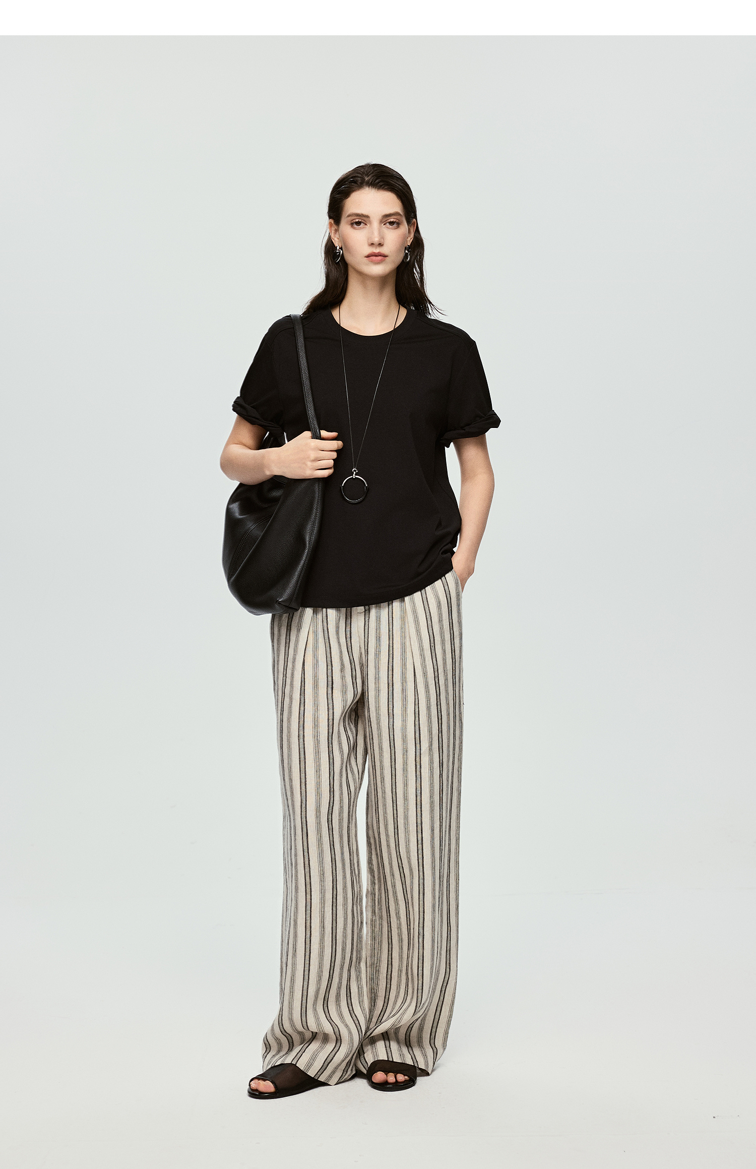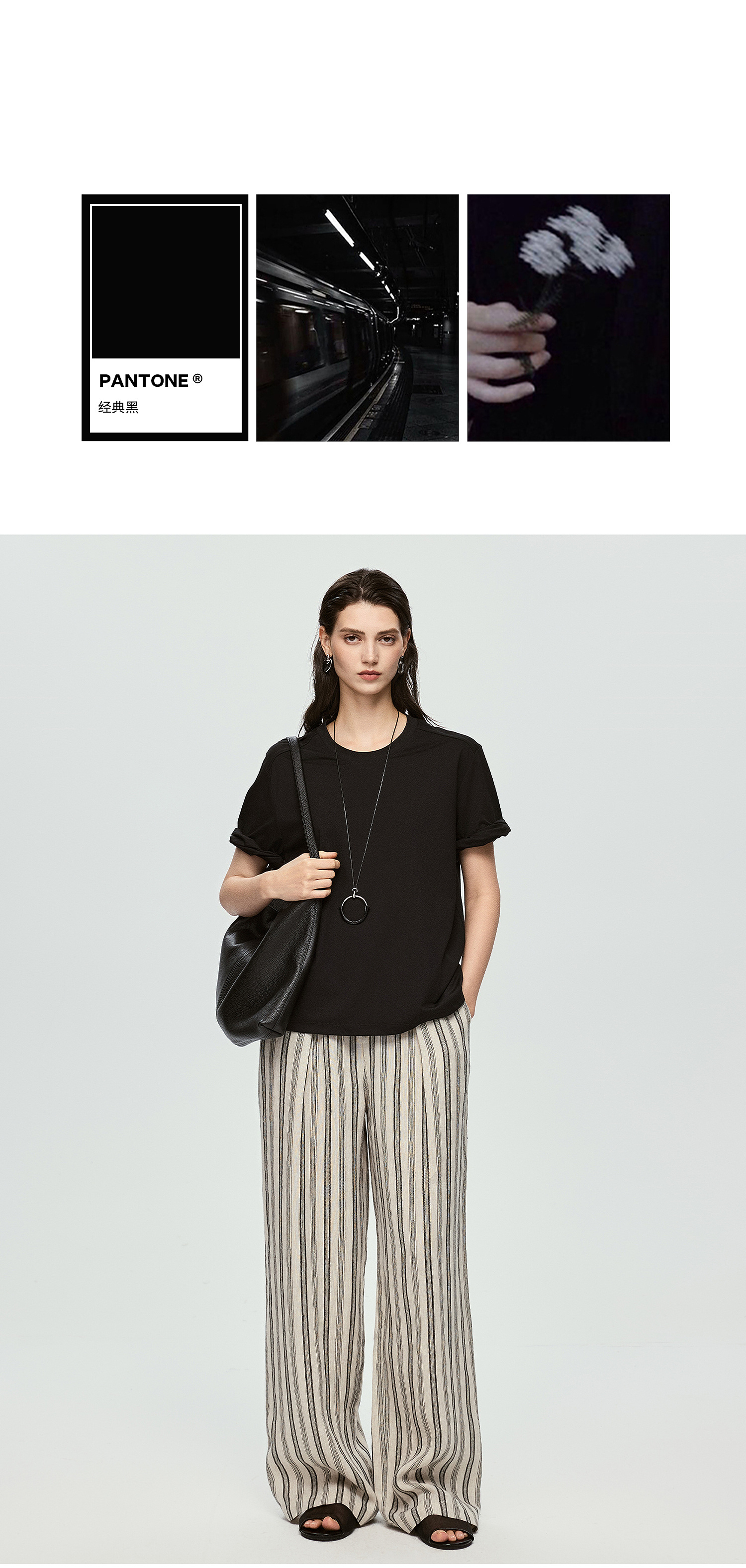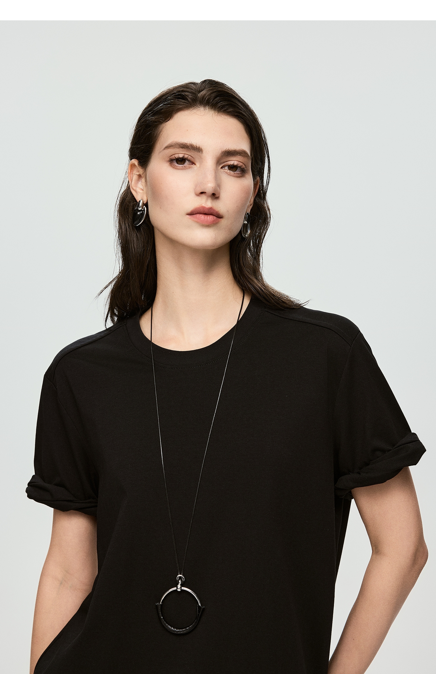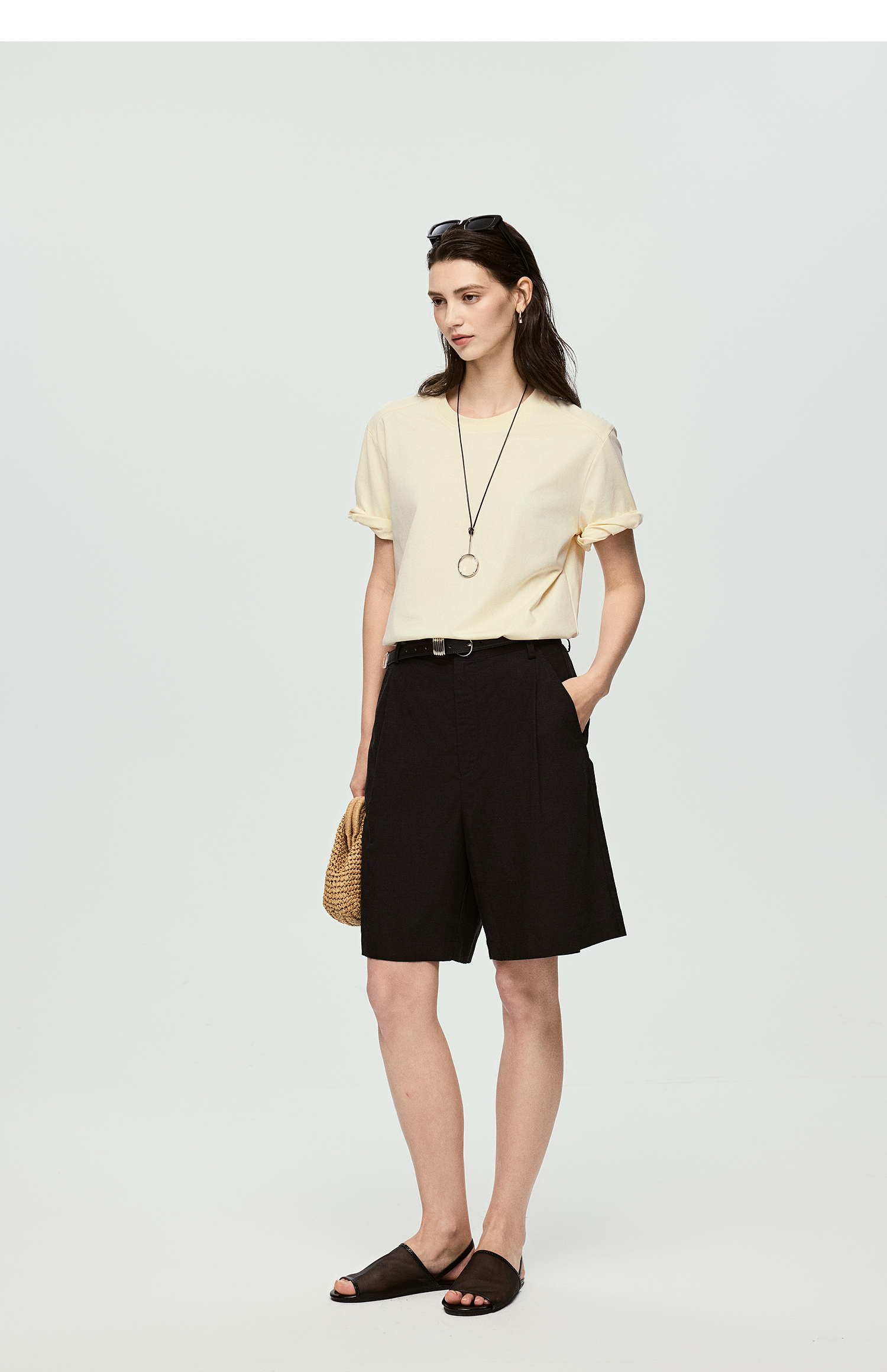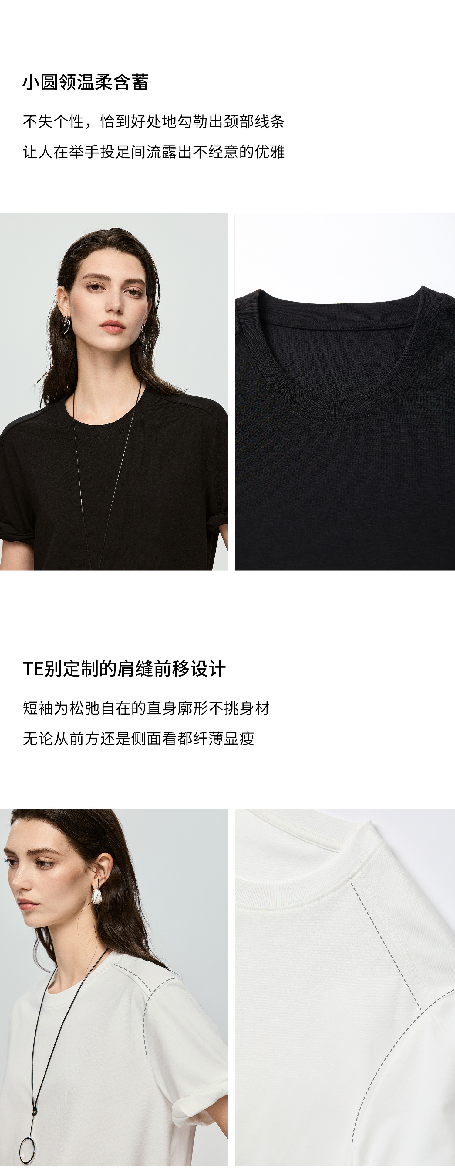 棉仓363601075-初棉假日感造型感-卷卷边短袖T恤