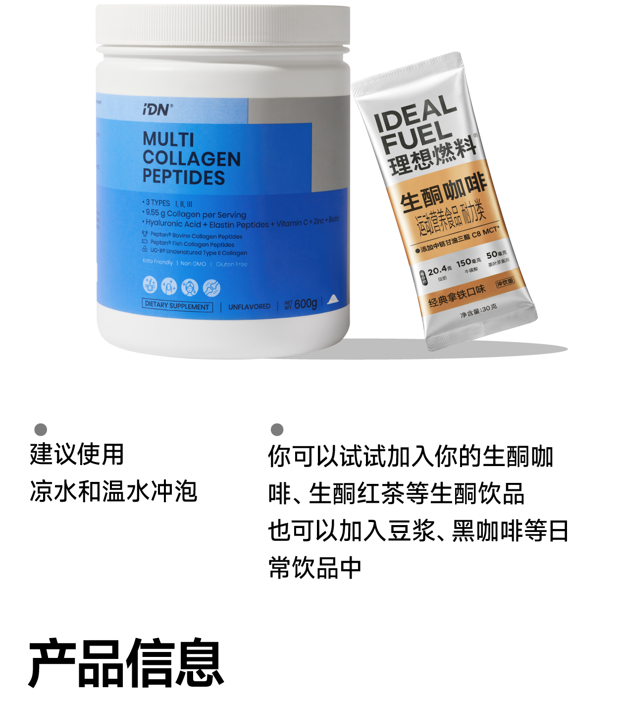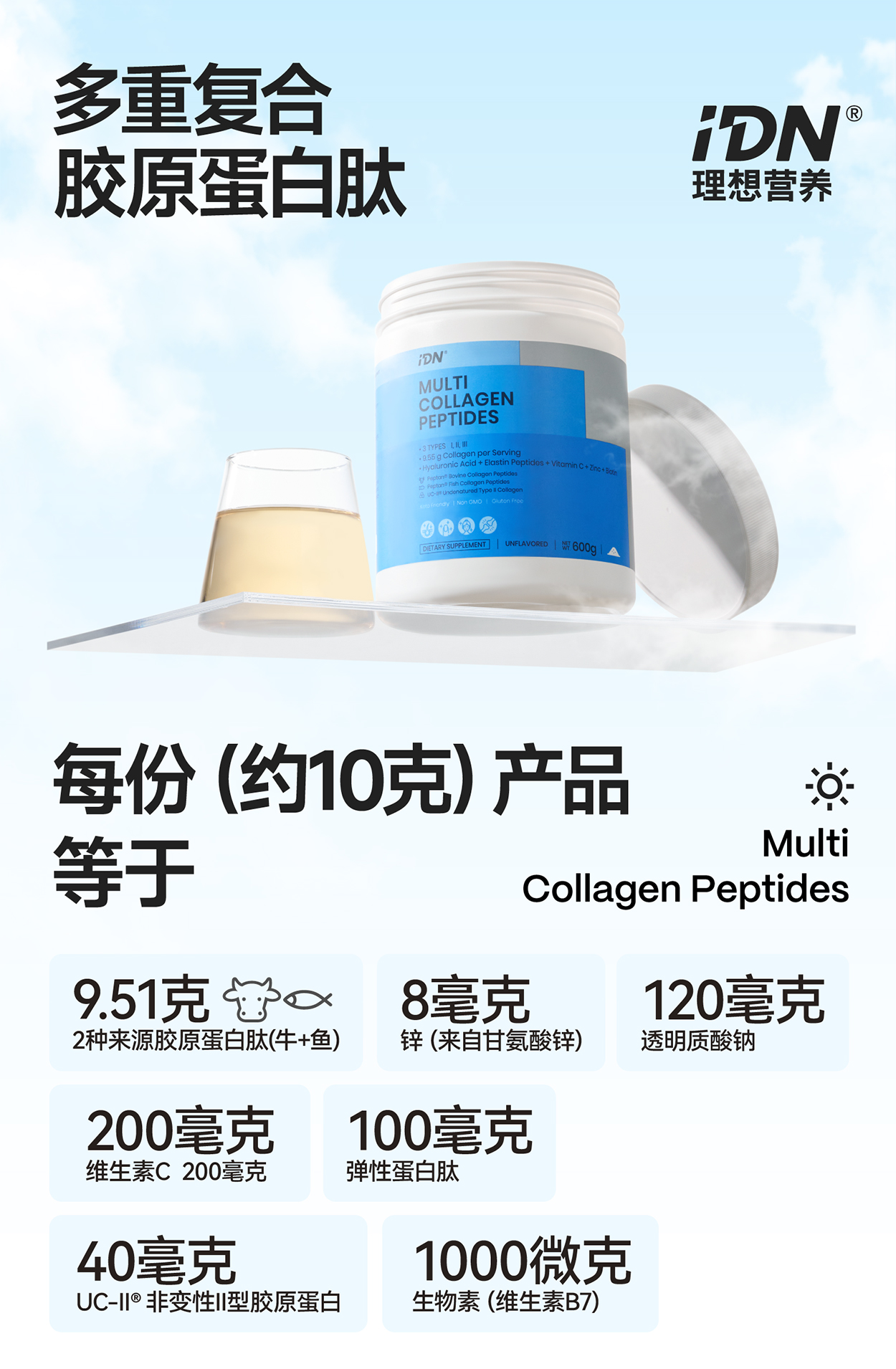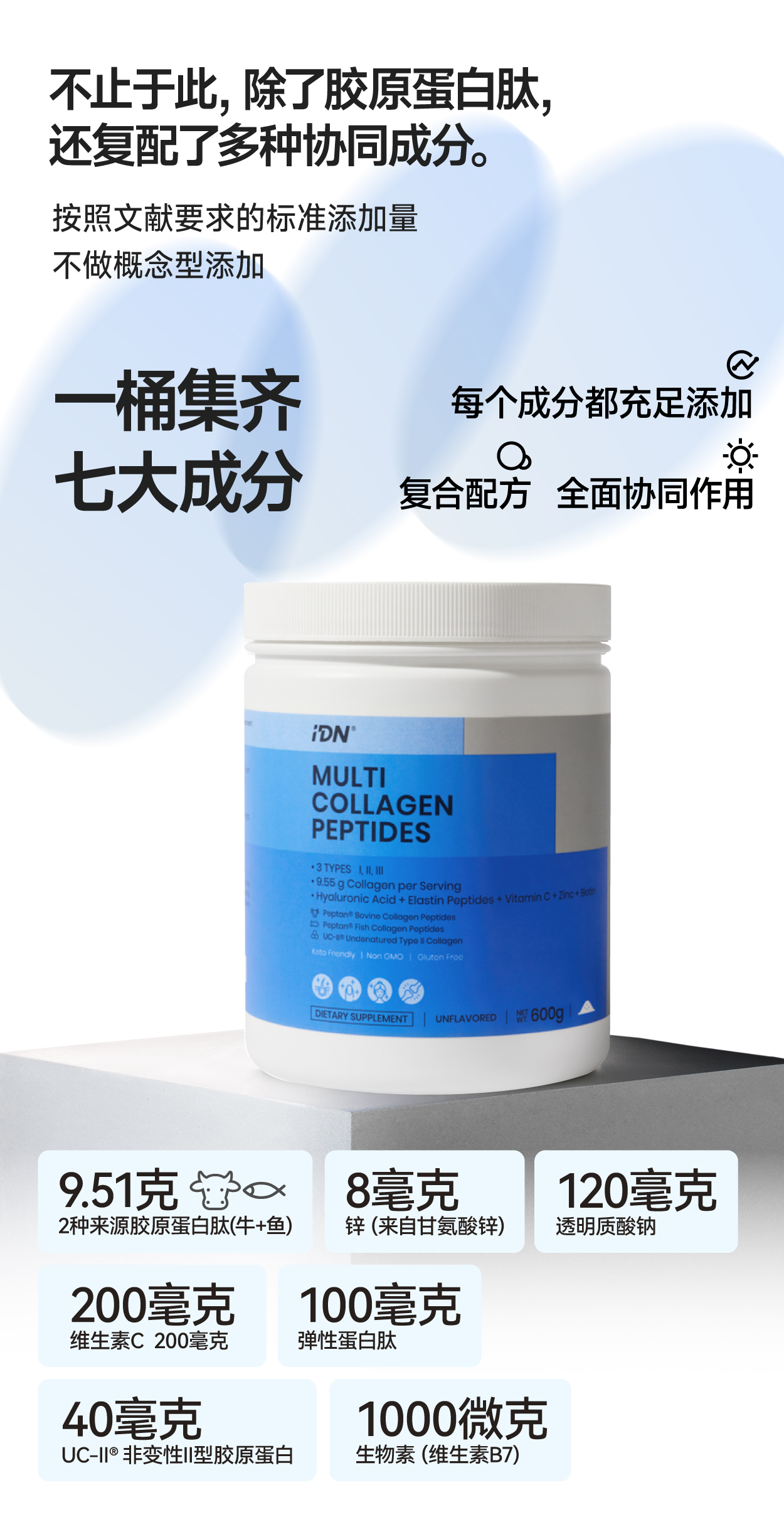 IDN理想营养 | 多重复合胶原蛋白肽600g/桶 大规格(跨境海淘商品不支持7天无理由退换)