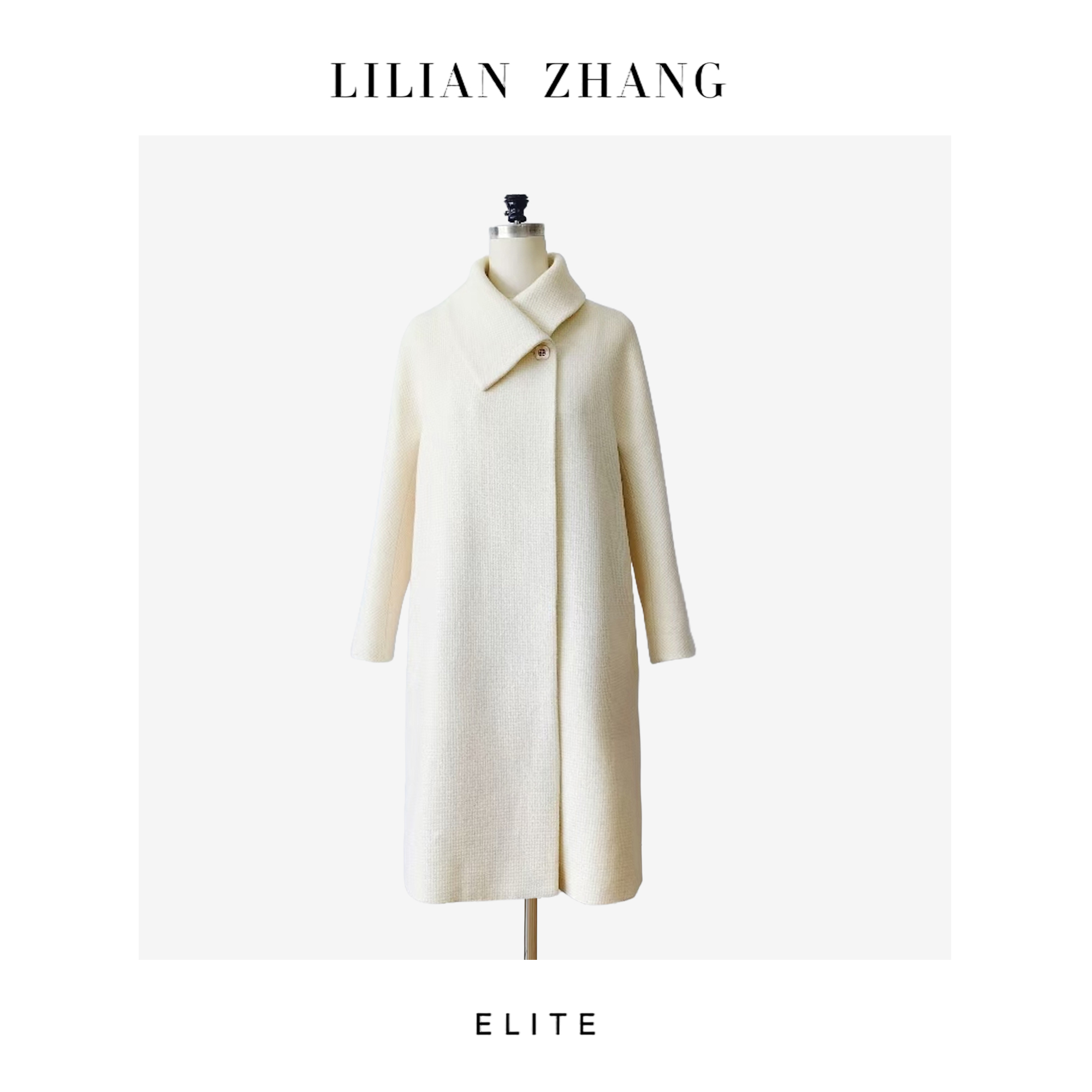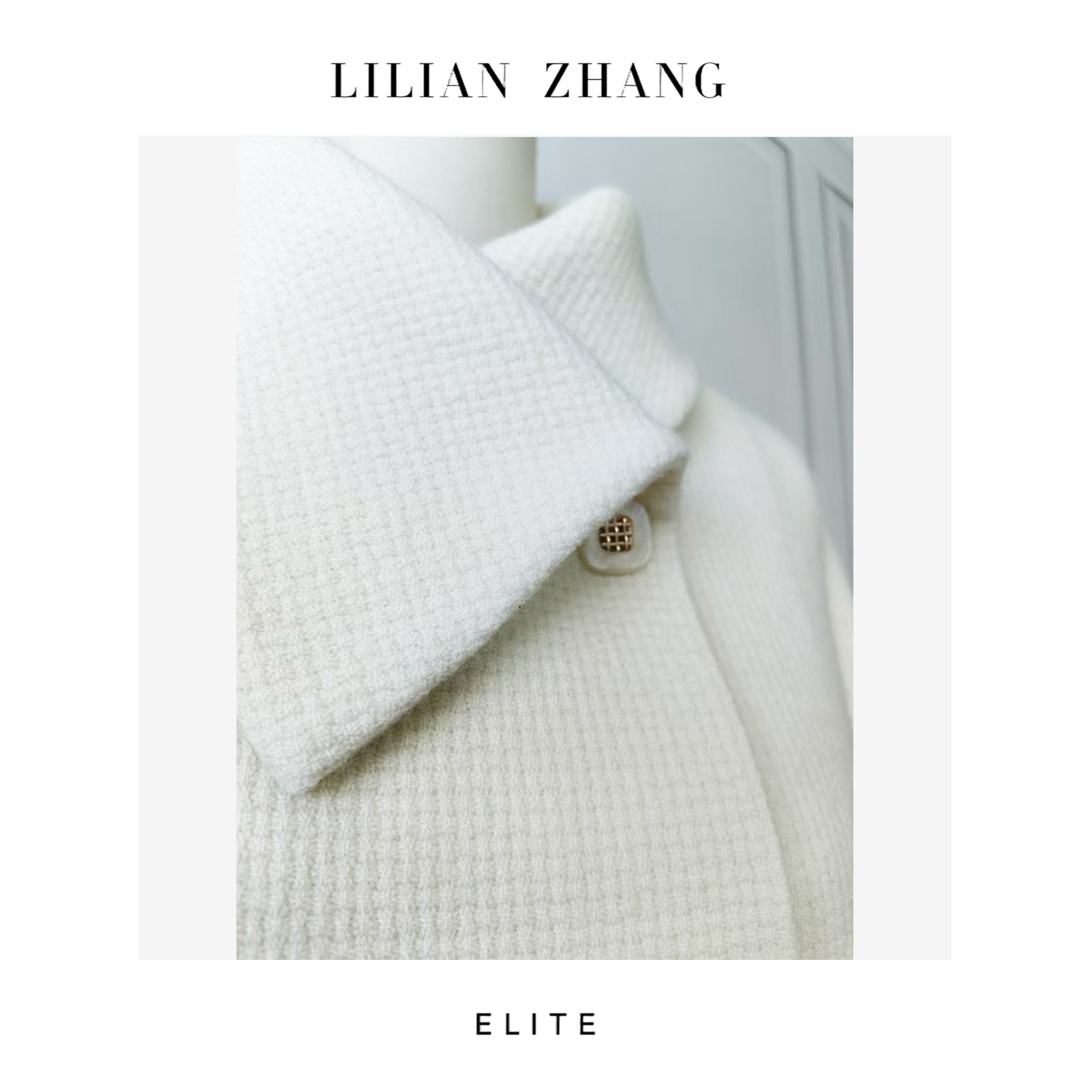 定制—静奢风—都市摩登—法式慵懒—珍珠白翻领格纹羊毛大衣2406023V