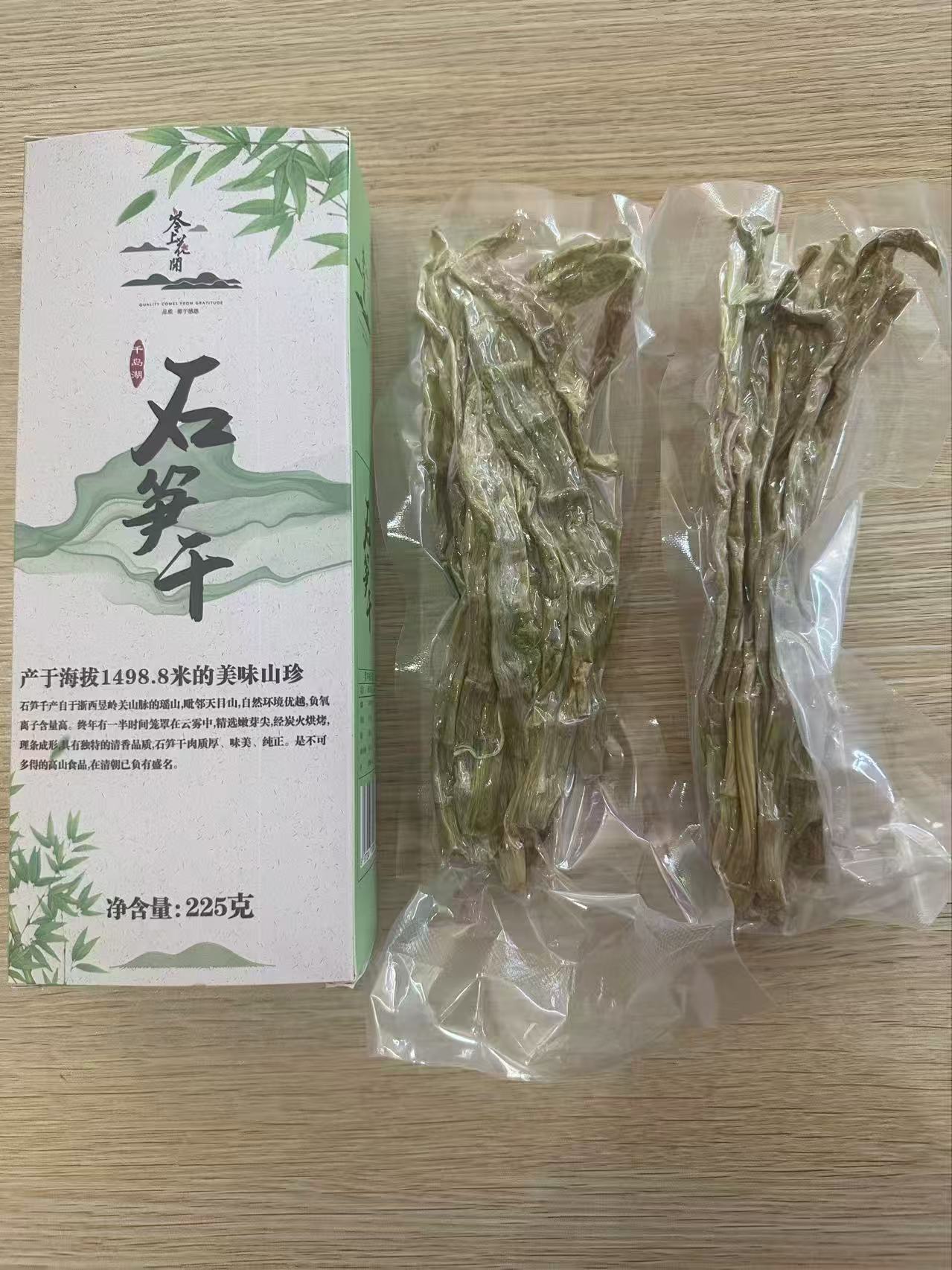 原料来源于千岛湖天坪山脉,海拔1000多米以上,自然生长,无污染。全年平均气温在10摄氏度以下,所产的石笋干品种稀少珍贵。
