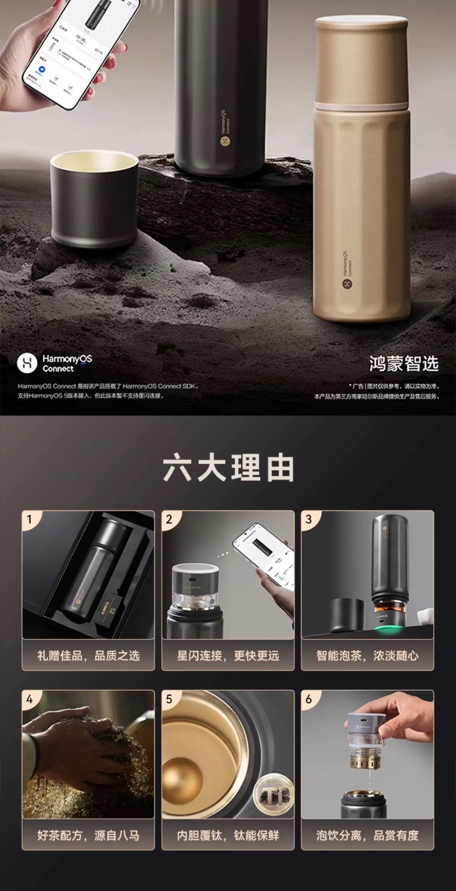 鸿蒙智选 哈尔斯智能星闪泡茶杯茶水分离覆钛保温男士礼物