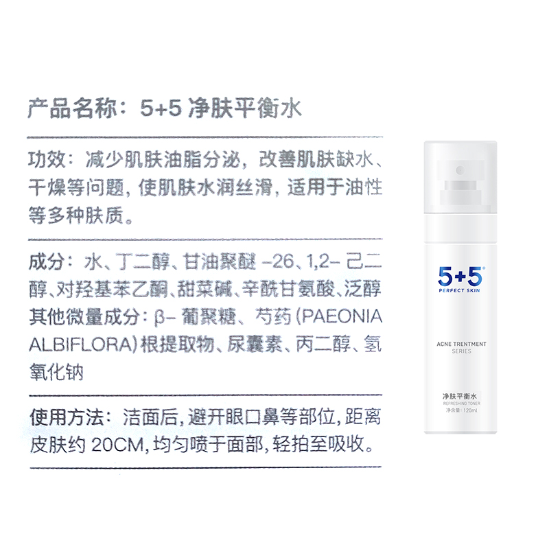 5+5净肤平衡水120ml吾加吾爽肤水保湿补水化妆水美容液
