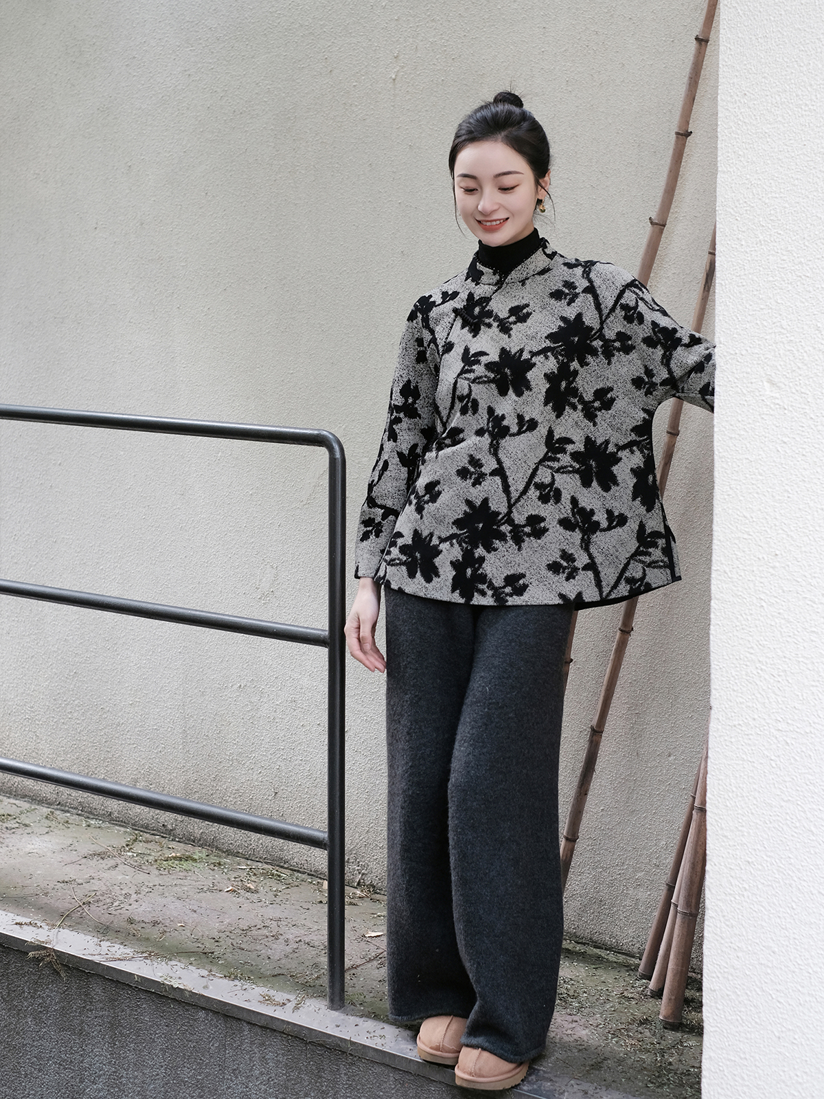 盛唐牡丹 |新中式羊皮印花斜襟外套