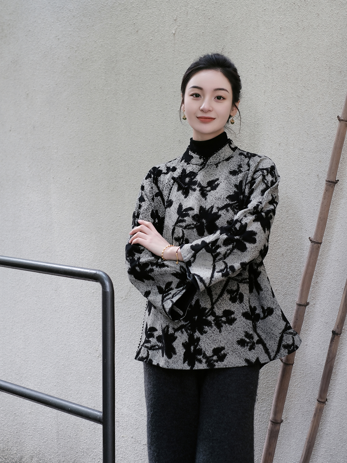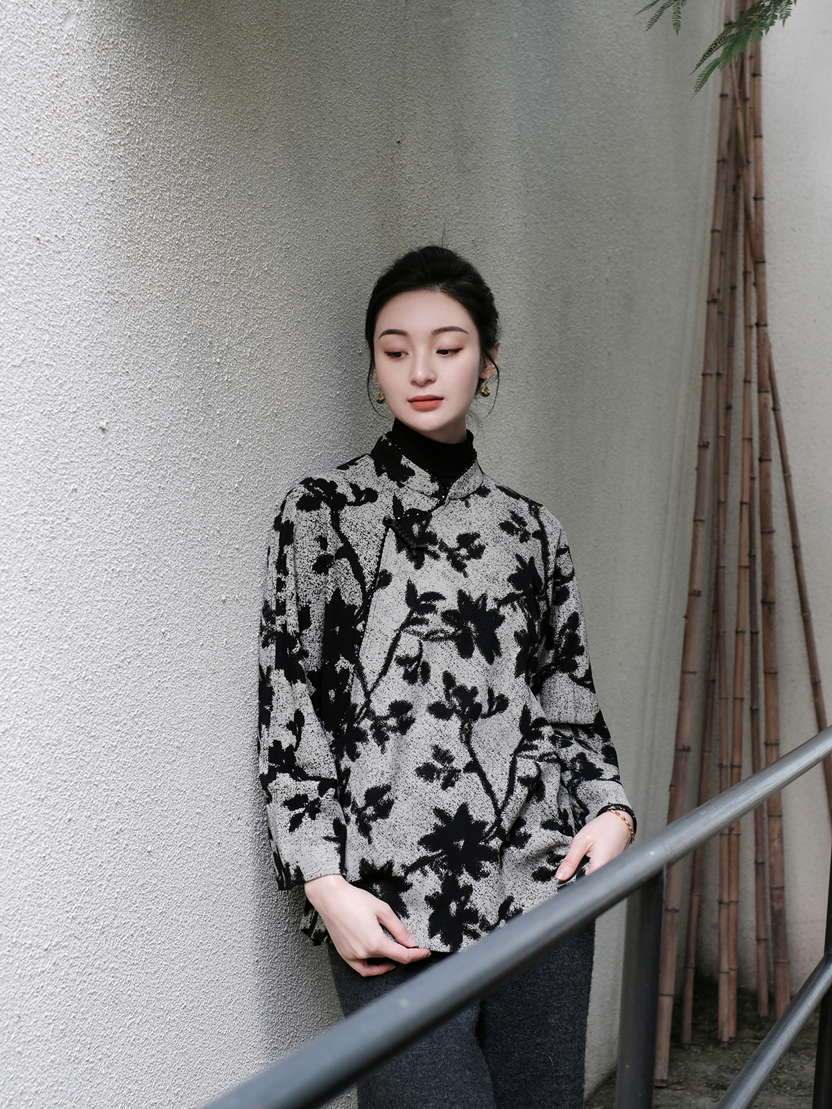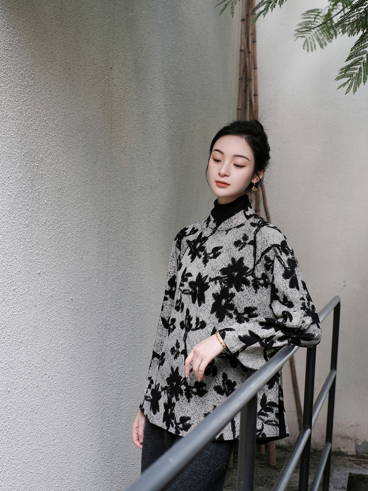 盛唐婧 |桃夭粉新中式国风提花上衣
