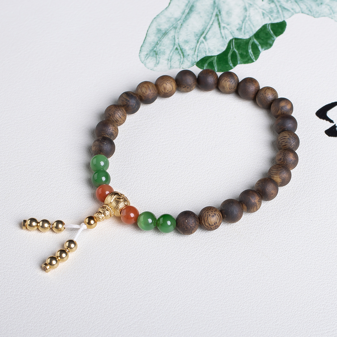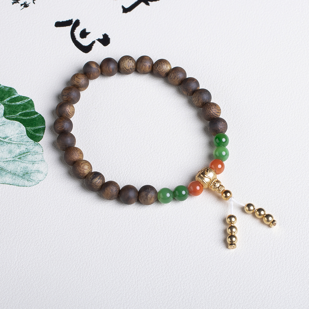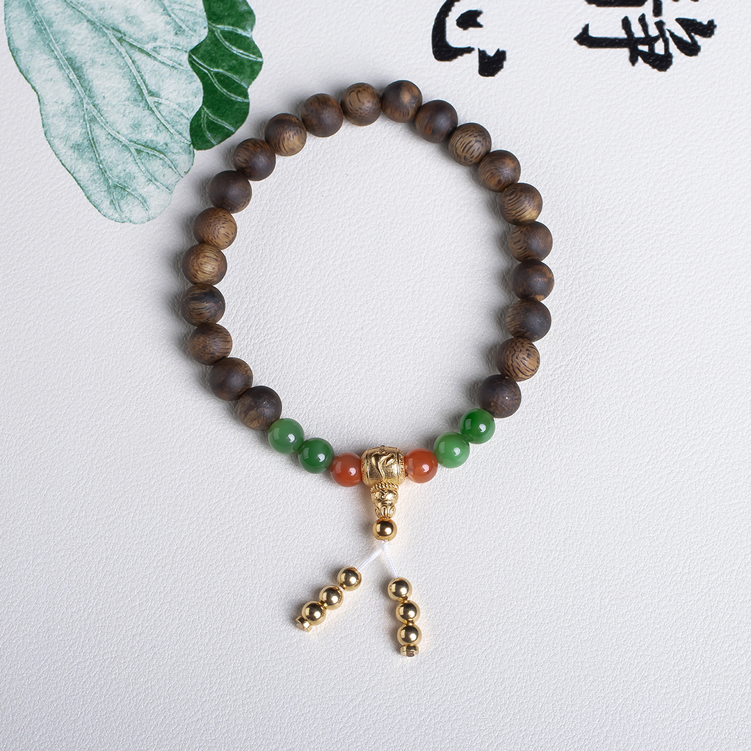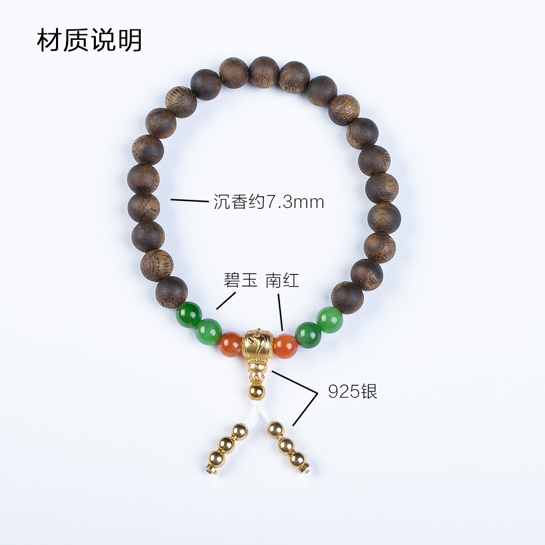 xy0562沉香+碧玉南红手串,天然沉香约7.3mm,原色原味,香味自然清甜,南红碧玉国风款式设计,经典时尚,上手大方有气质。