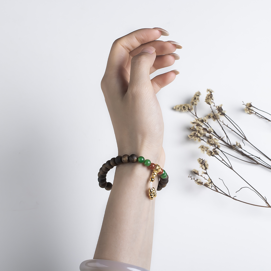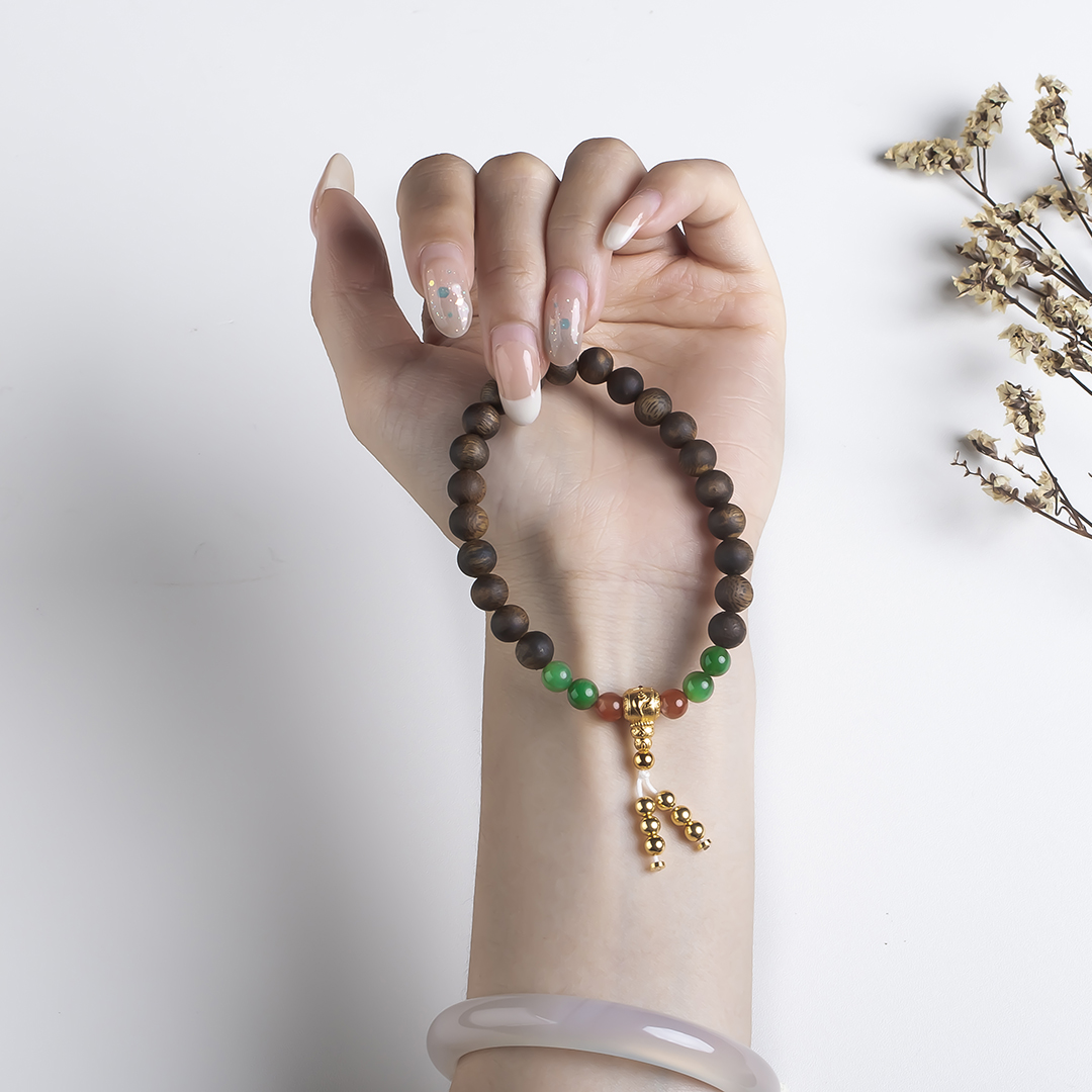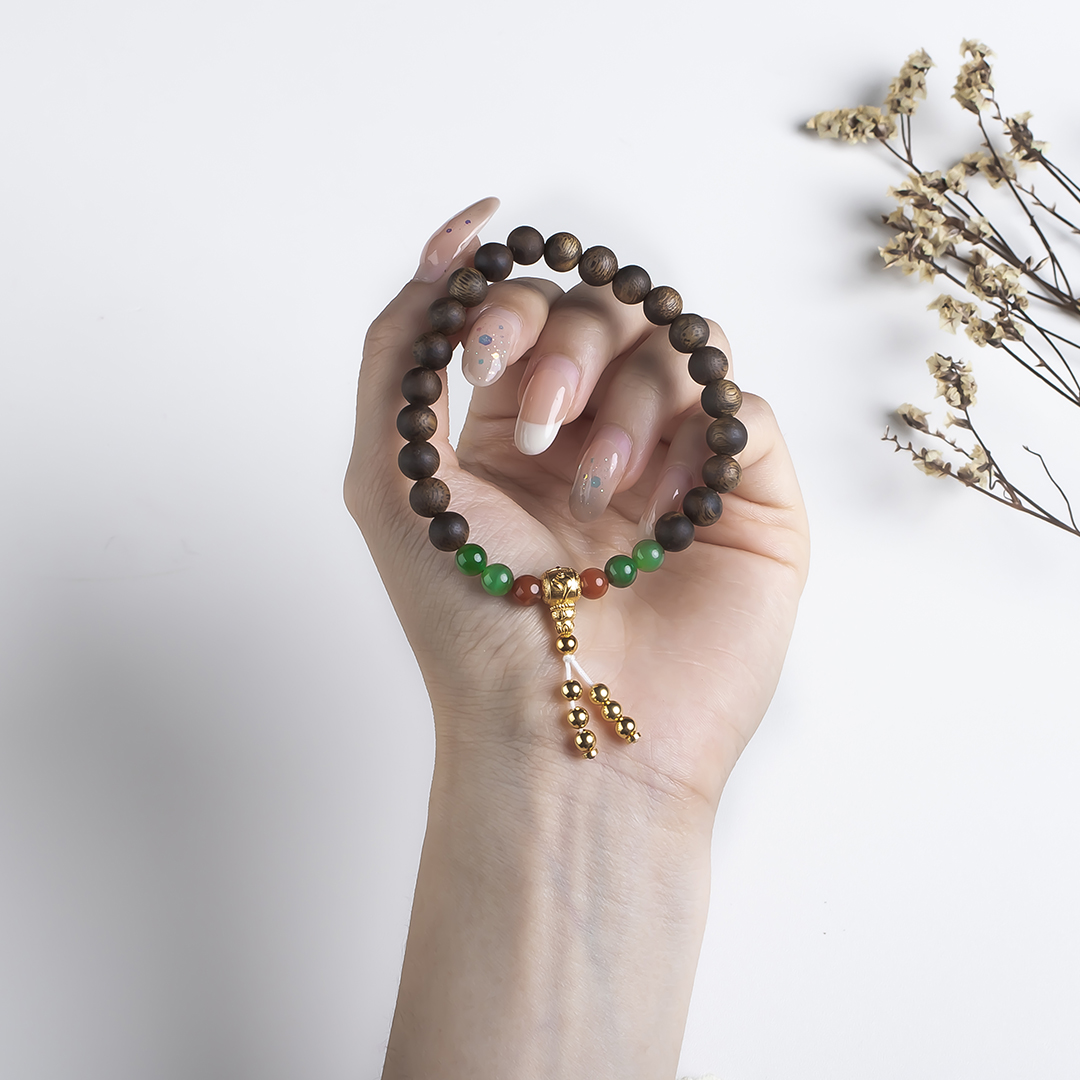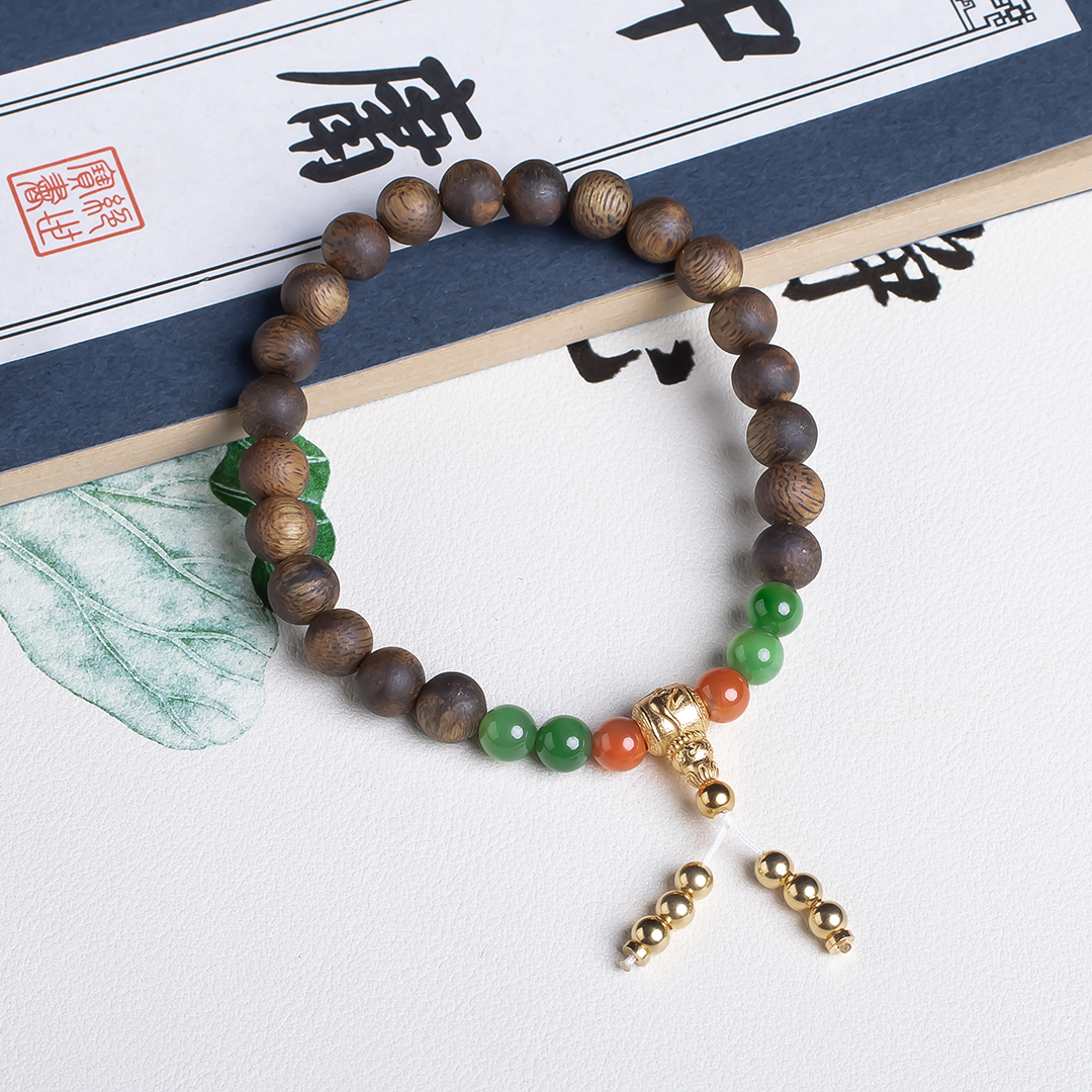 xy0562沉香+碧玉南红手串,天然沉香约7.3mm,原色原味,香味自然清甜,南红碧玉国风款式设计,经典时尚,上手大方有气质。