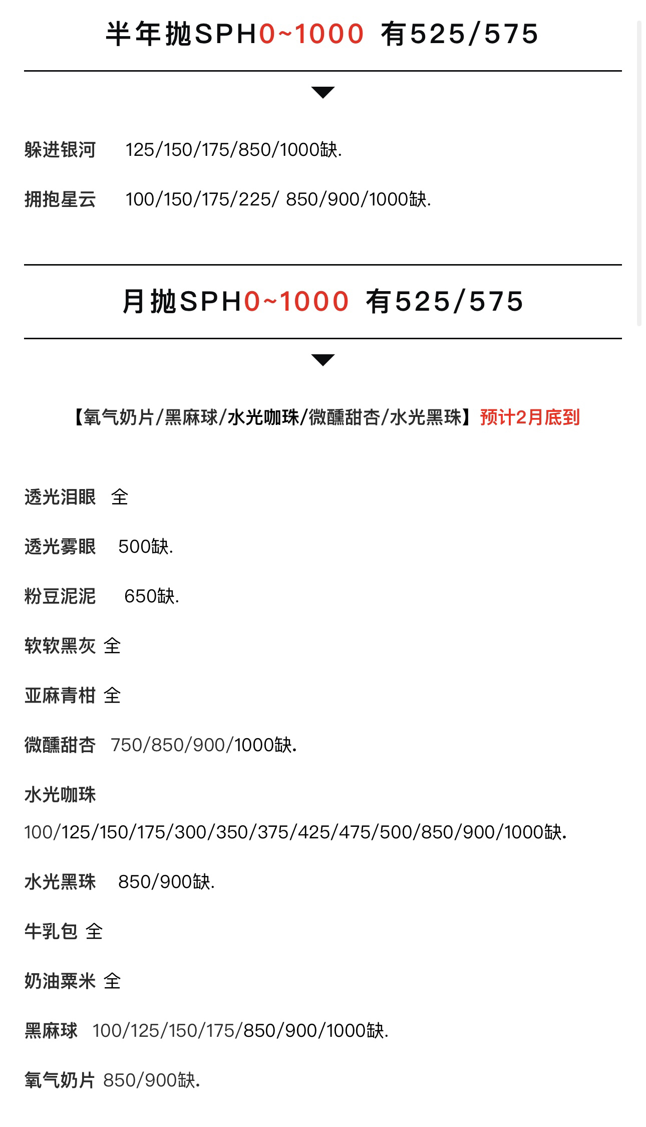 *月抛&半年抛SPH 0-1000(包含525/575)