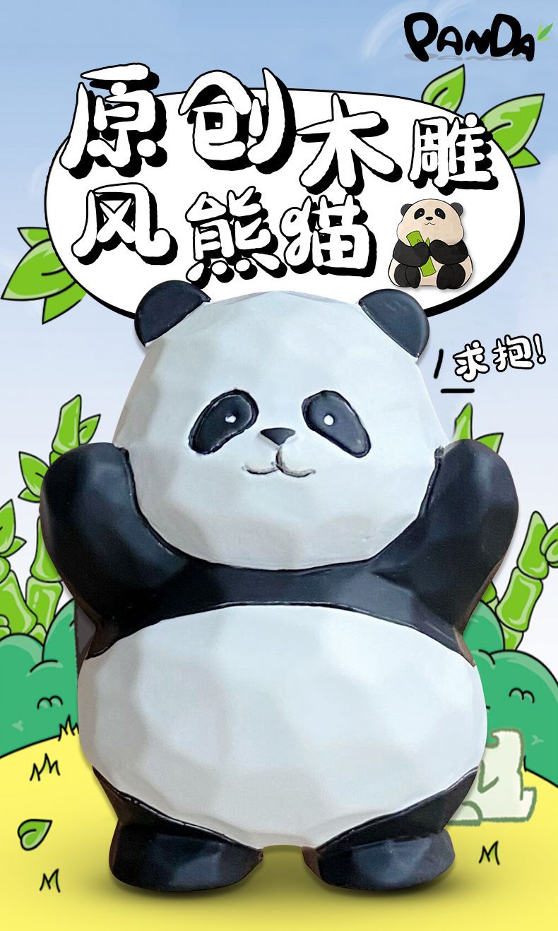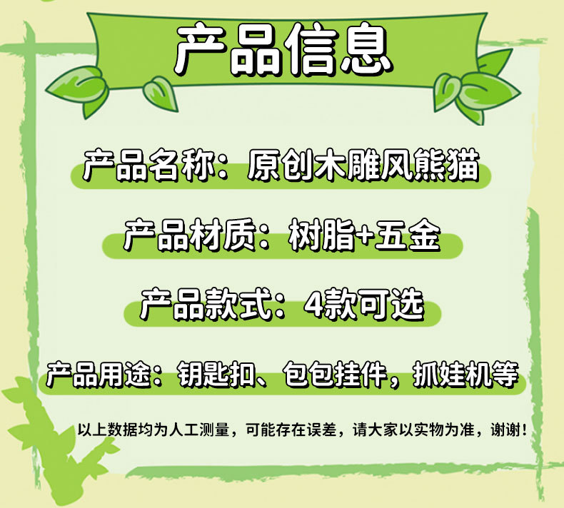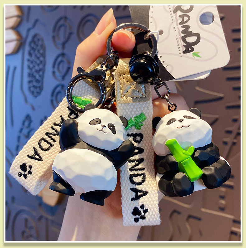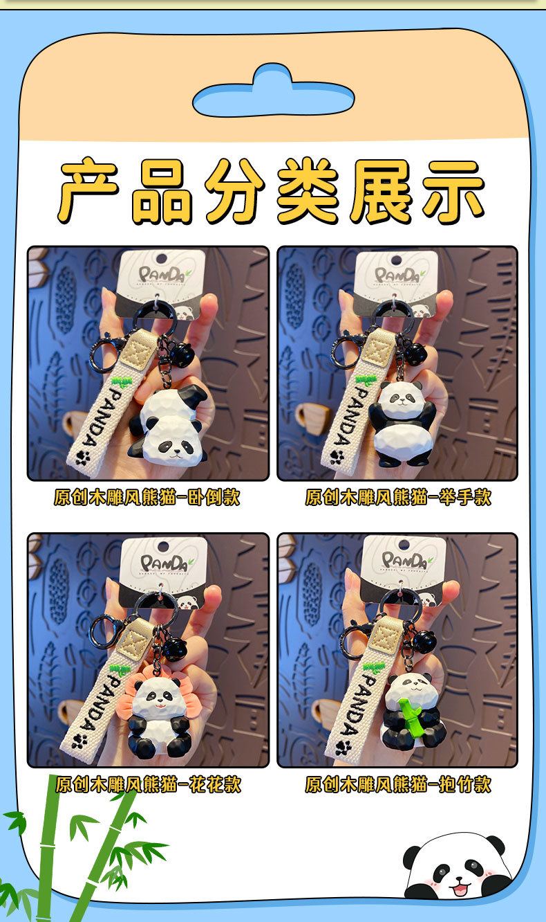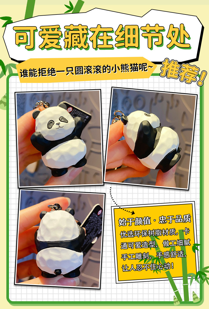 树脂木雕风熊猫钥匙扣
