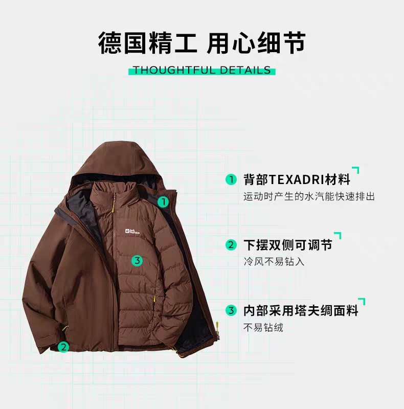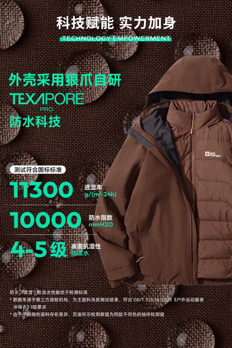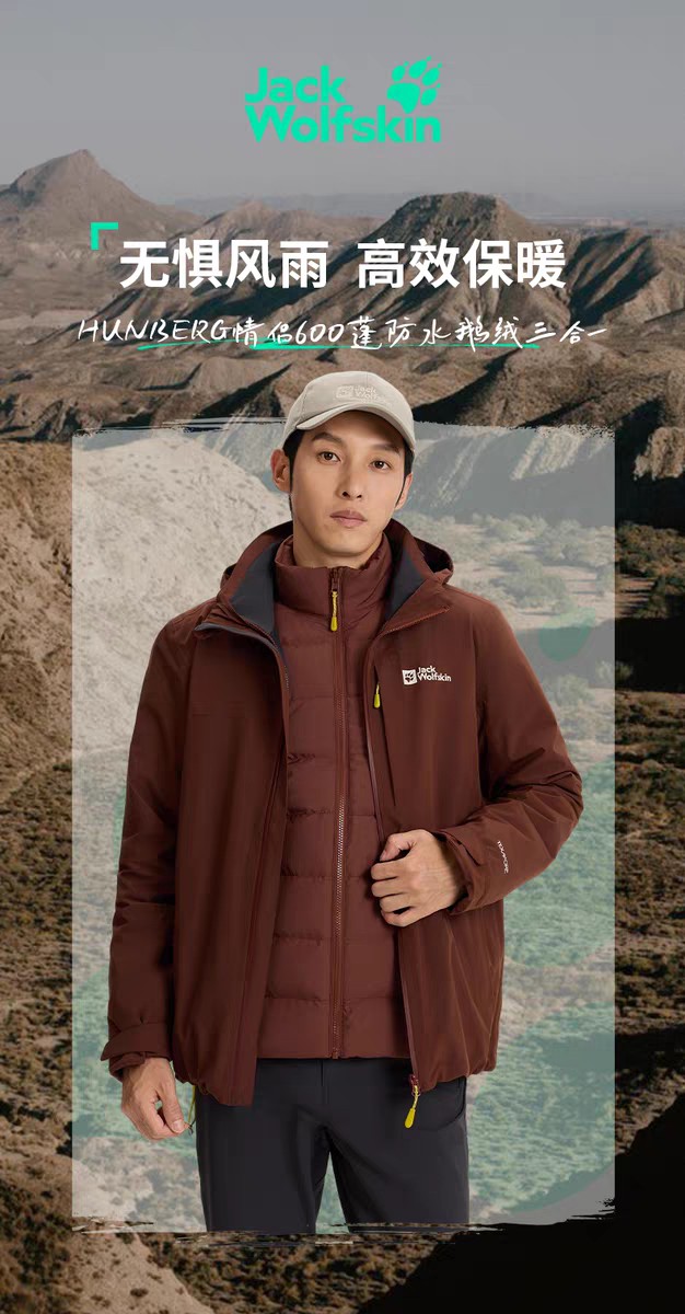 【春上新】【6折】6楼JACKWOLFSKIN狼爪HUNBERG男款防水鹅绒三合一冲锋衣A65360-6350吊牌价3399折后2039